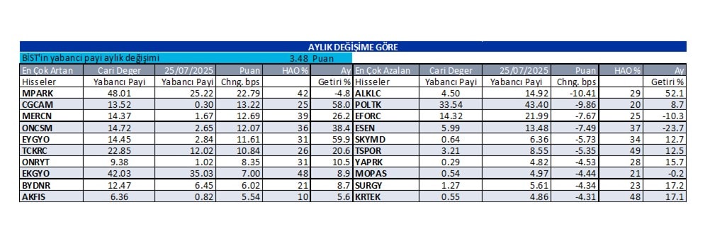 Hisselerin yabancı oranları ile ilgil daha detaylı bilgi almak için raporumuzu inceleyebilirsiniz.
