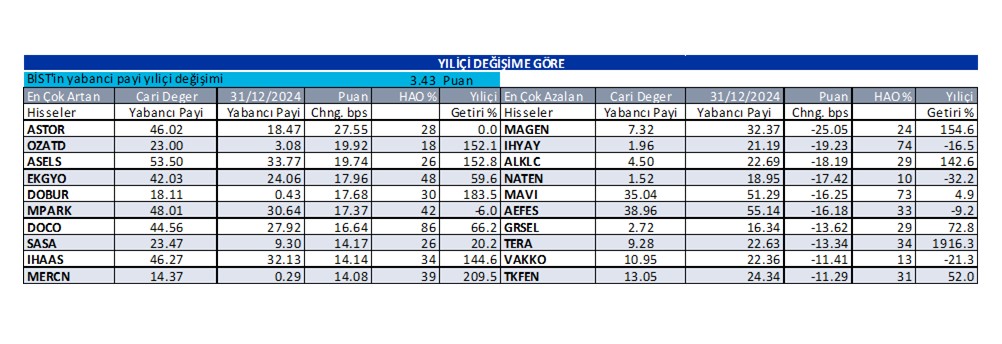 Yabancı oranları sürekli artan/azalan hisselerin detaylarını raporun 3. ve 4. sayfalarından takip edebilirsiniz.