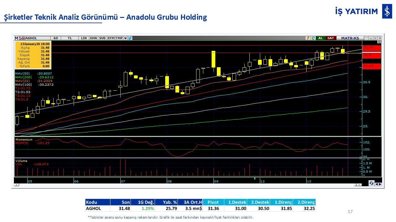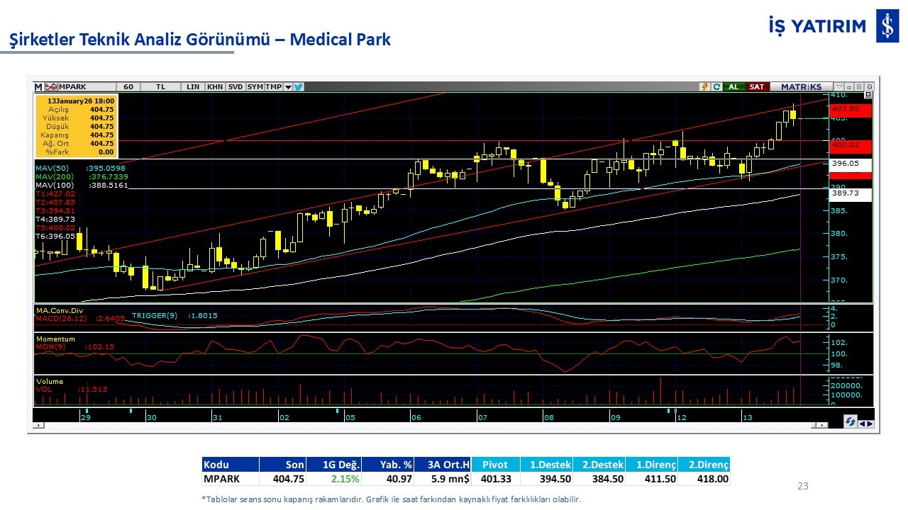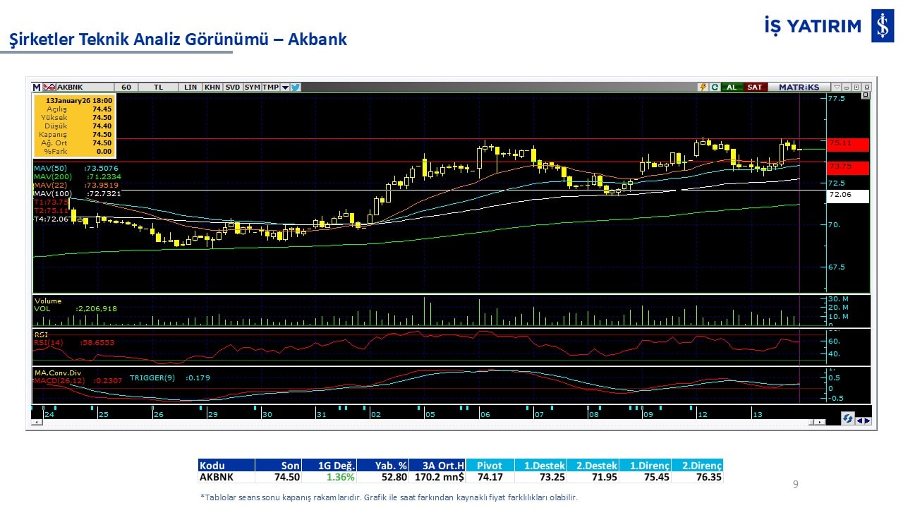 Teknik analiz görünümü olan şirketler: GARAN, THYAO, ISCTR, AKBNK, YKBNK, VAKBN, HALKB, EKGYO, TCELL, ENKAI, KCHOL, MAVI, ARCLK, ALARK, SAHOL, AGHOL, SOKM, MPARK.