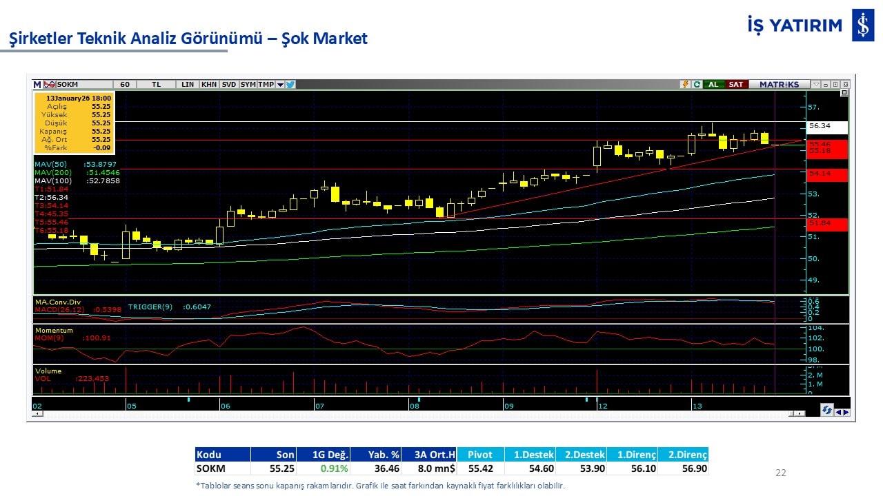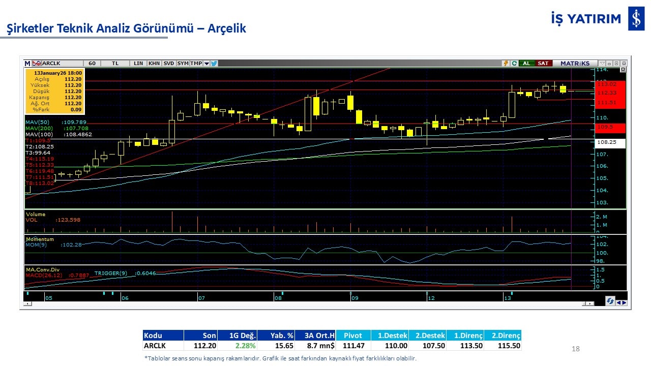 “Teknik Bülten” raporumuzun içeriğinde; Vadeli endeks, kur, BIST100 endeksi, temel analiz tarafında da öneri verdiğimiz 18 adet hissenin teknik destek/direnç seviyeleri ve buna baz teşkil eden teknik grafikleri, bugün piyasadan pozitif ayrışma ihtimali olan hisseler ve bunların teknik destek/direnç seviyeleri, piyasa rakamları, dün çok açığa satış yapılan hisse senetleri ve kısa vadeli işlem önerilerimizden son 10 tanesi yer almaktadır.