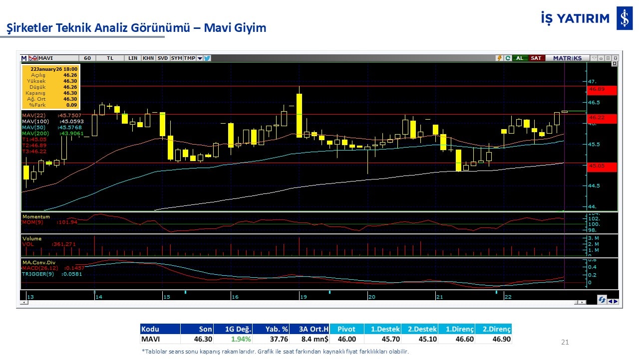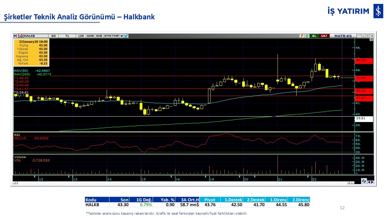 Teknik analiz görünümü olan şirketler: GARAN, THYAO, ISCTR, AKBNK, YKBNK, VAKBN, HALKB, EKGYO, TCELL, ENKAI, KCHOL, MAVI, ARCLK, ALARK, SAHOL, AGHOL, SOKM, MPARK.