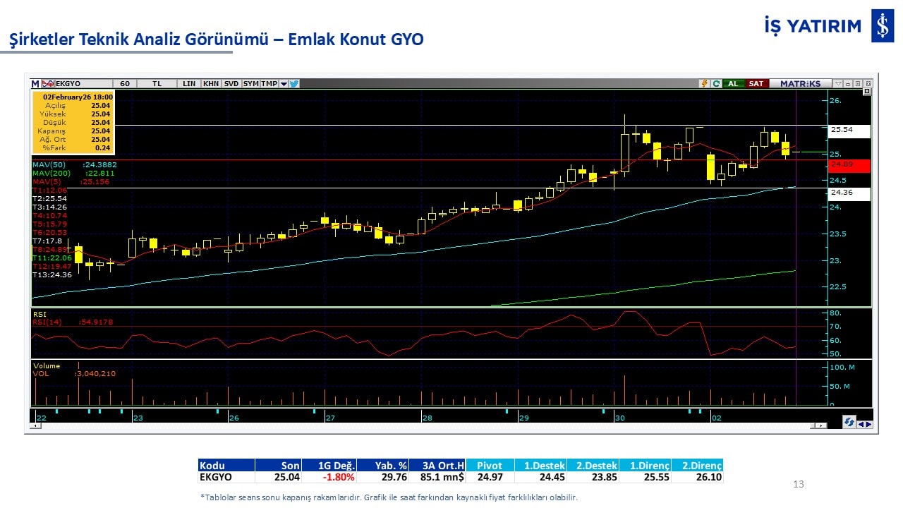 Teknik analiz görünümü olan şirketler: GARAN, THYAO, ISCTR, AKBNK, YKBNK, VAKBN, HALKB, EKGYO, TCELL, ENKAI, KCHOL, MAVI, ARCLK, ALARK, SAHOL, AGHOL, SOKM, MPARK.