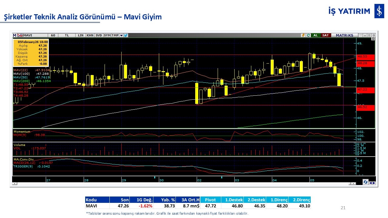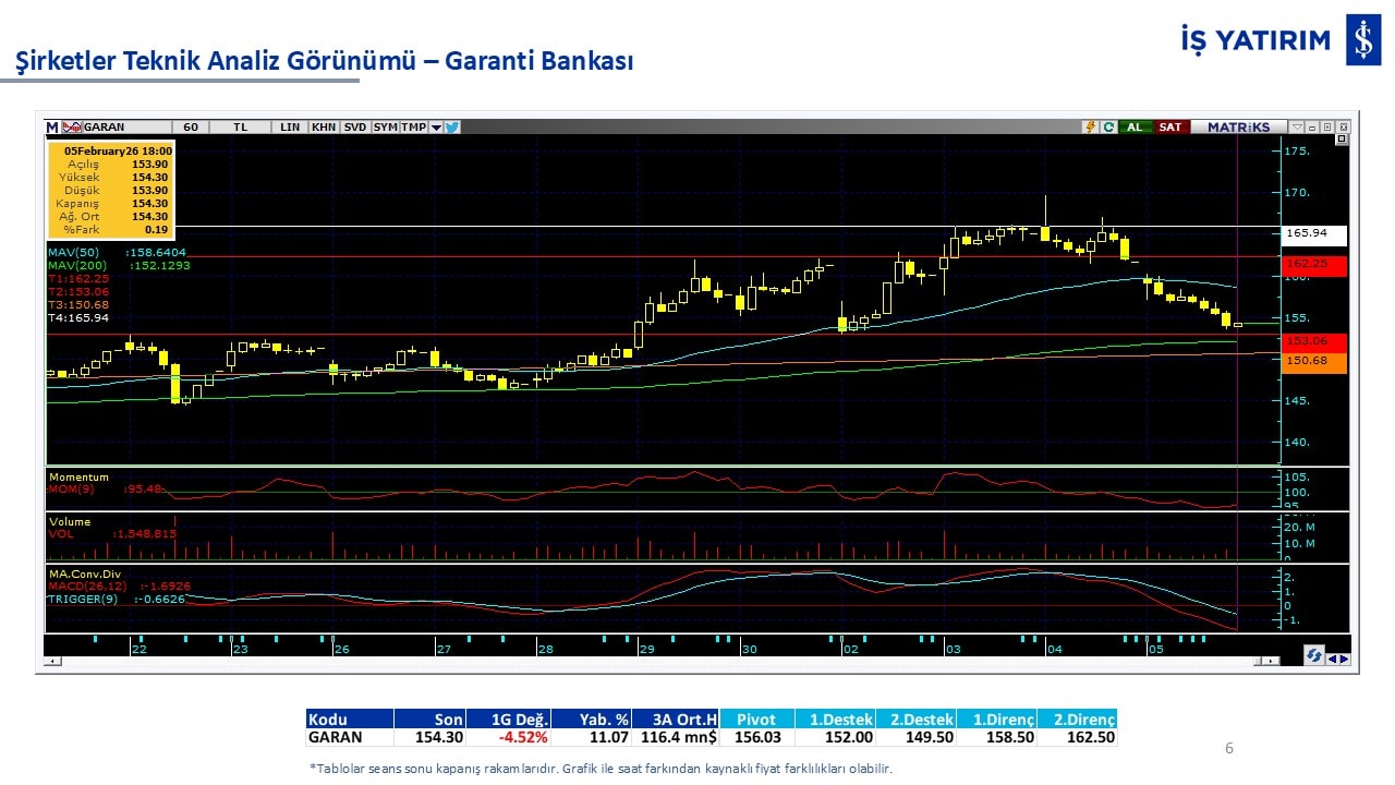 Teknik analiz görünümü olan şirketler: GARAN, THYAO, ISCTR, AKBNK, YKBNK, VAKBN, HALKB, EKGYO, TCELL, ENKAI, KCHOL, MAVI, ARCLK, ALARK, SAHOL, AGHOL, SOKM, MPARK.