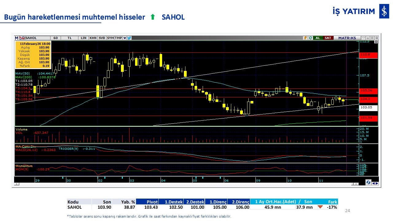 “Teknik Bülten” raporumuzun içeriğinde; Vadeli endeks, kur, BIST100 endeksi, temel analiz tarafında da öneri verdiğimiz 18 adet hissenin teknik destek/direnç seviyeleri ve buna baz teşkil eden teknik grafikleri, bugün piyasadan pozitif ayrışma ihtimali olan hisseler ve bunların teknik destek/direnç seviyeleri, piyasa rakamları, dün çok açığa satış yapılan hisse senetleri ve kısa vadeli işlem önerilerimizden son 10 tanesi yer almaktadır.