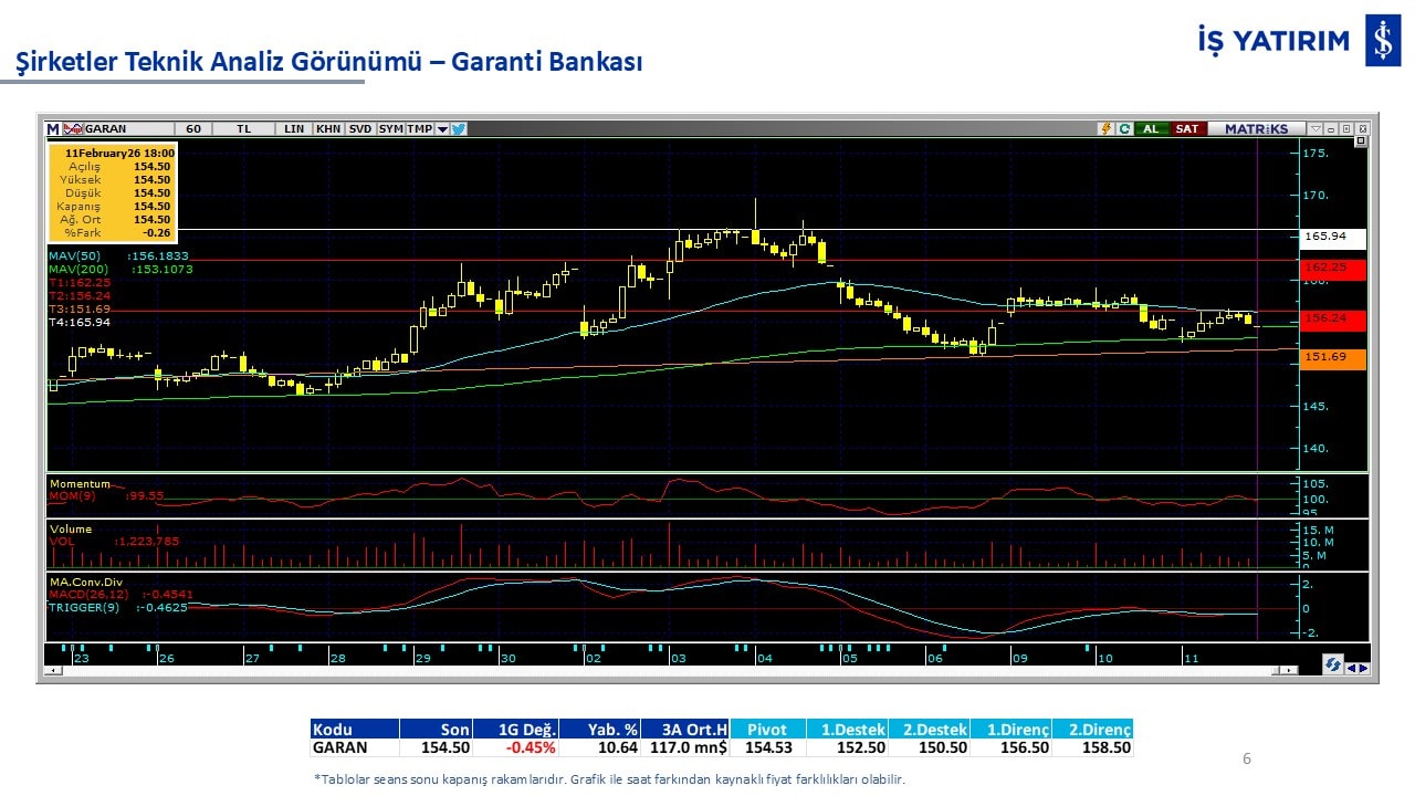 Teknik analiz görünümü olan şirketler: GARAN, THYAO, ISCTR, AKBNK, YKBNK, VAKBN, HALKB, EKGYO, TCELL, ENKAI, KCHOL, MAVI, ARCLK, ALARK, SAHOL, AGHOL, SOKM, MPARK.