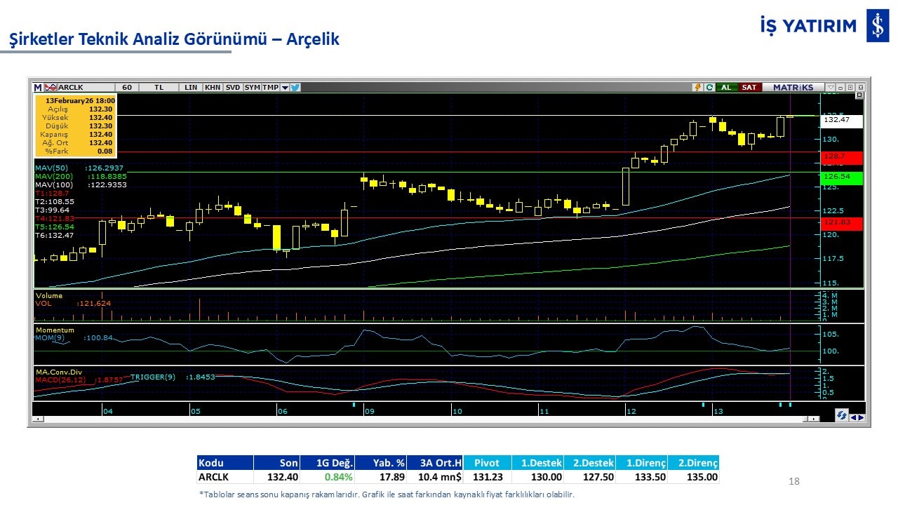Teknik analiz görünümü olan şirketler: GARAN, THYAO, ISCTR, AKBNK, YKBNK, VAKBN, HALKB, EKGYO, TCELL, ENKAI, KCHOL, MAVI, ARCLK, ALARK, SAHOL, AGHOL, SOKM, MPARK.