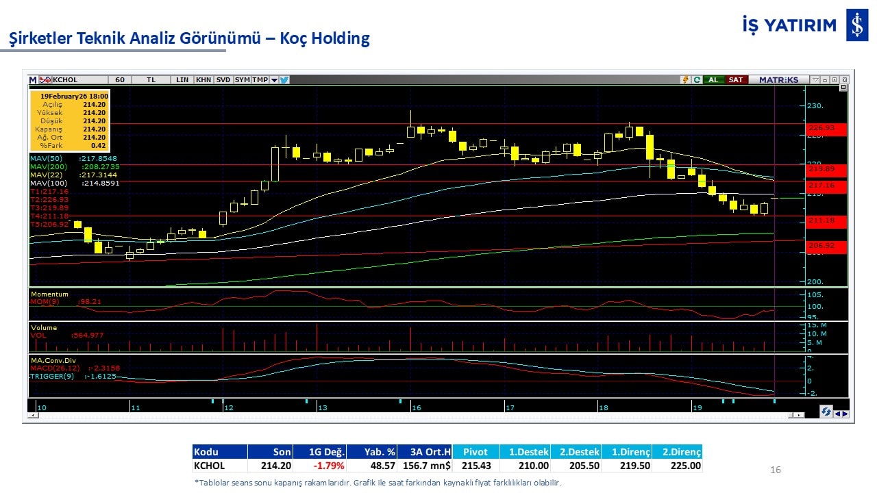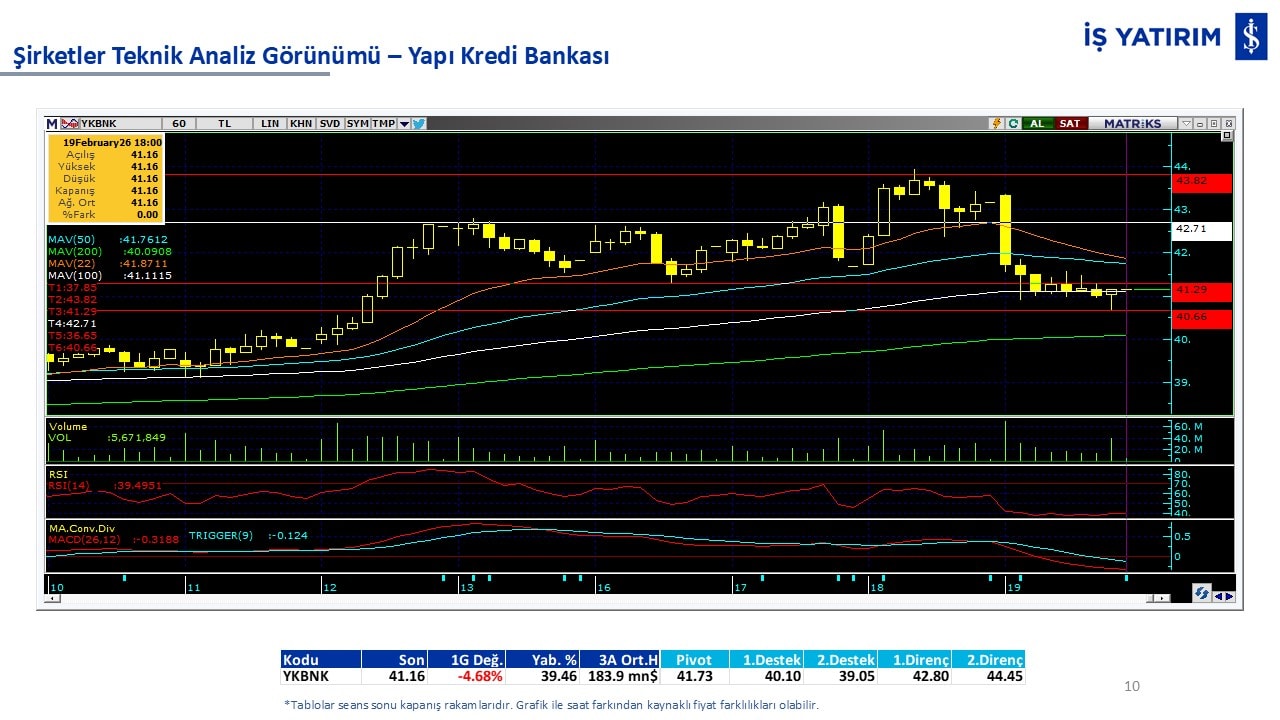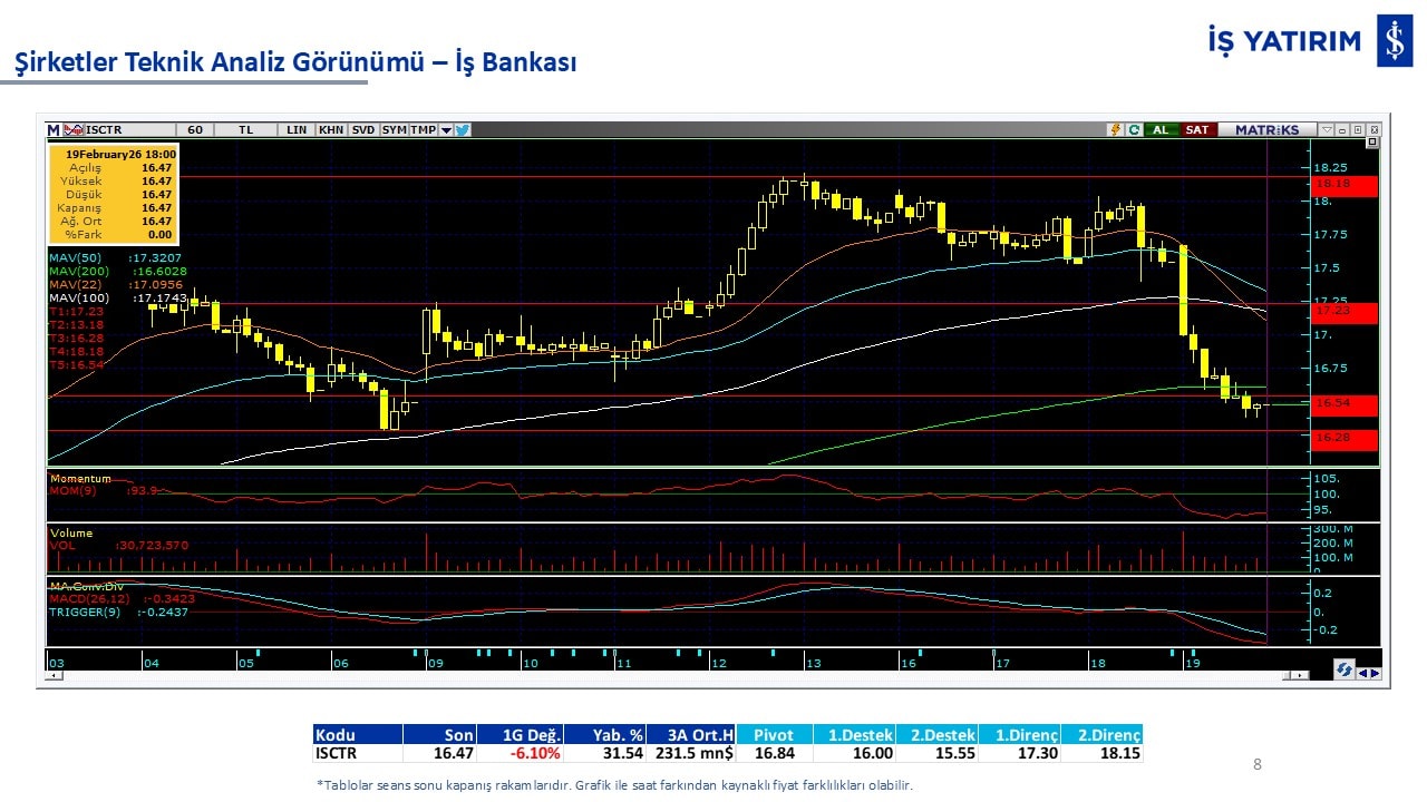Teknik analiz görünümü olan şirketler: GARAN, THYAO, ISCTR, AKBNK, YKBNK, VAKBN, HALKB, EKGYO, TCELL, ENKAI, KCHOL, MAVI, ARCLK, ALARK, SAHOL, AGHOL, SOKM, MPARK.