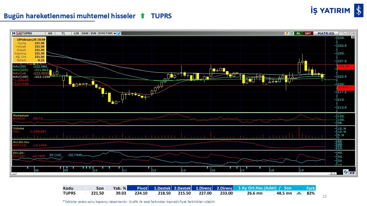 Bugün hareketlenmesi muhtemel hisseler: KCHOL-TUPRS