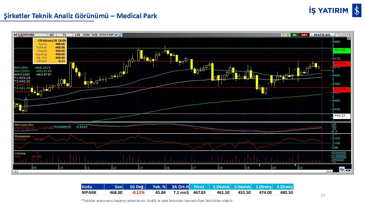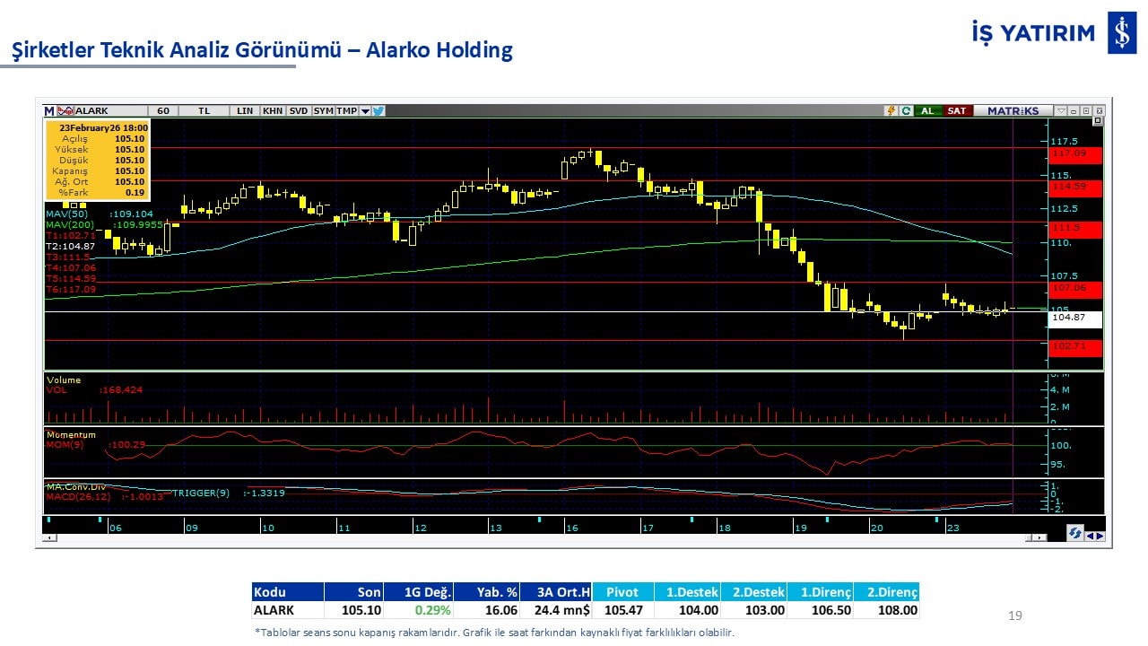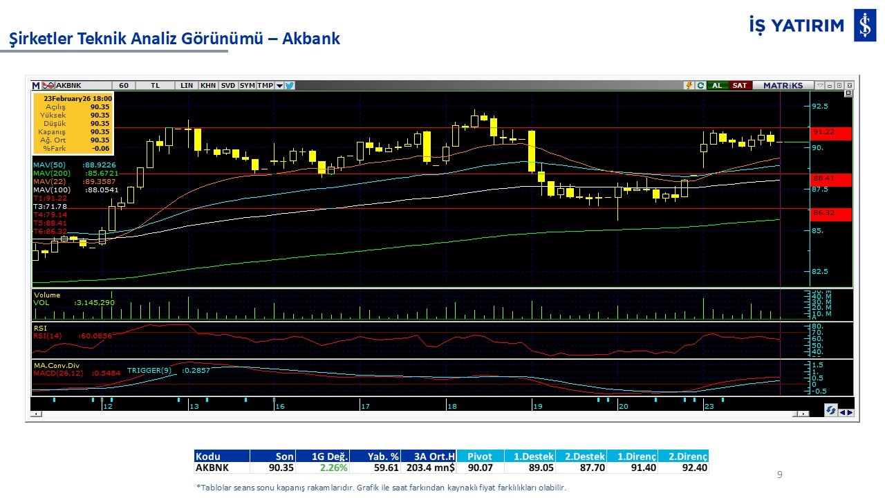 Teknik analiz görünümü olan şirketler: GARAN, THYAO, ISCTR, AKBNK, YKBNK, VAKBN, HALKB, EKGYO, TCELL, ENKAI, KCHOL, MAVI, ARCLK, ALARK, SAHOL, AGHOL, SOKM, MPARK.