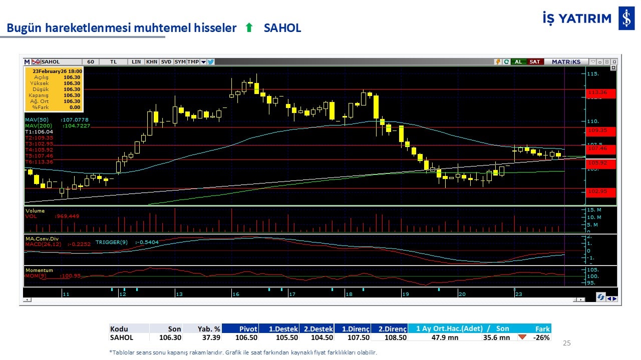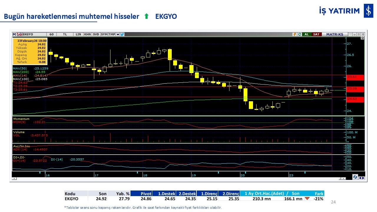 Bugün hareketlenmesi muhtemel hisseler: SAHOL-EKGYO-TCELL