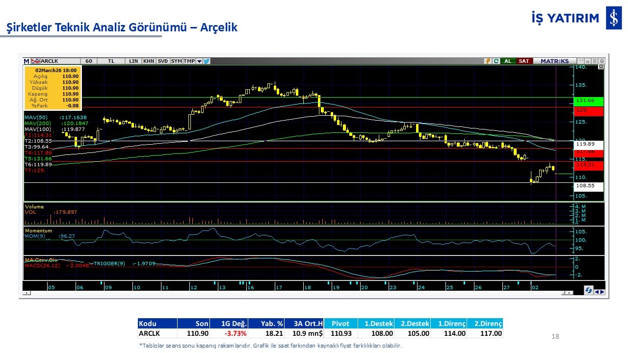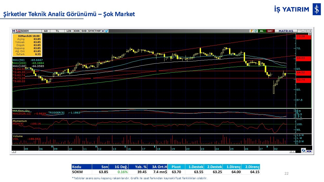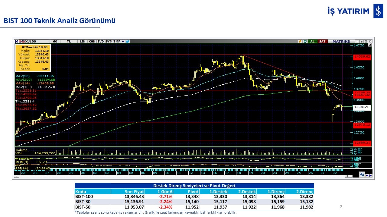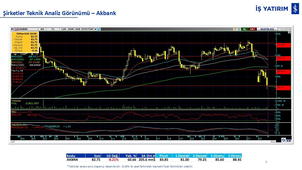 “Teknik Bülten” raporumuzun içeriğinde; Vadeli endeks, kur, BIST100 endeksi, temel analiz tarafında da öneri verdiğimiz 18 adet hissenin teknik destek/direnç seviyeleri ve buna baz teşkil eden teknik grafikleri, bugün piyasadan pozitif ayrışma ihtimali olan hisseler ve bunların teknik destek/direnç seviyeleri, piyasa rakamları, dün çok açığa satış yapılan hisse senetleri ve kısa vadeli işlem önerilerimizden son 10 tanesi yer almaktadır.