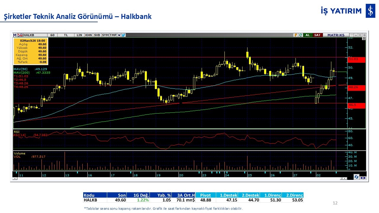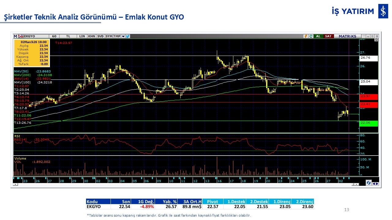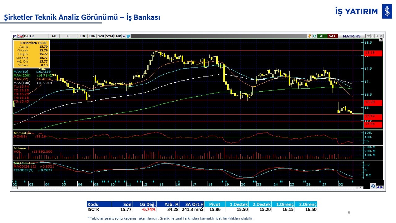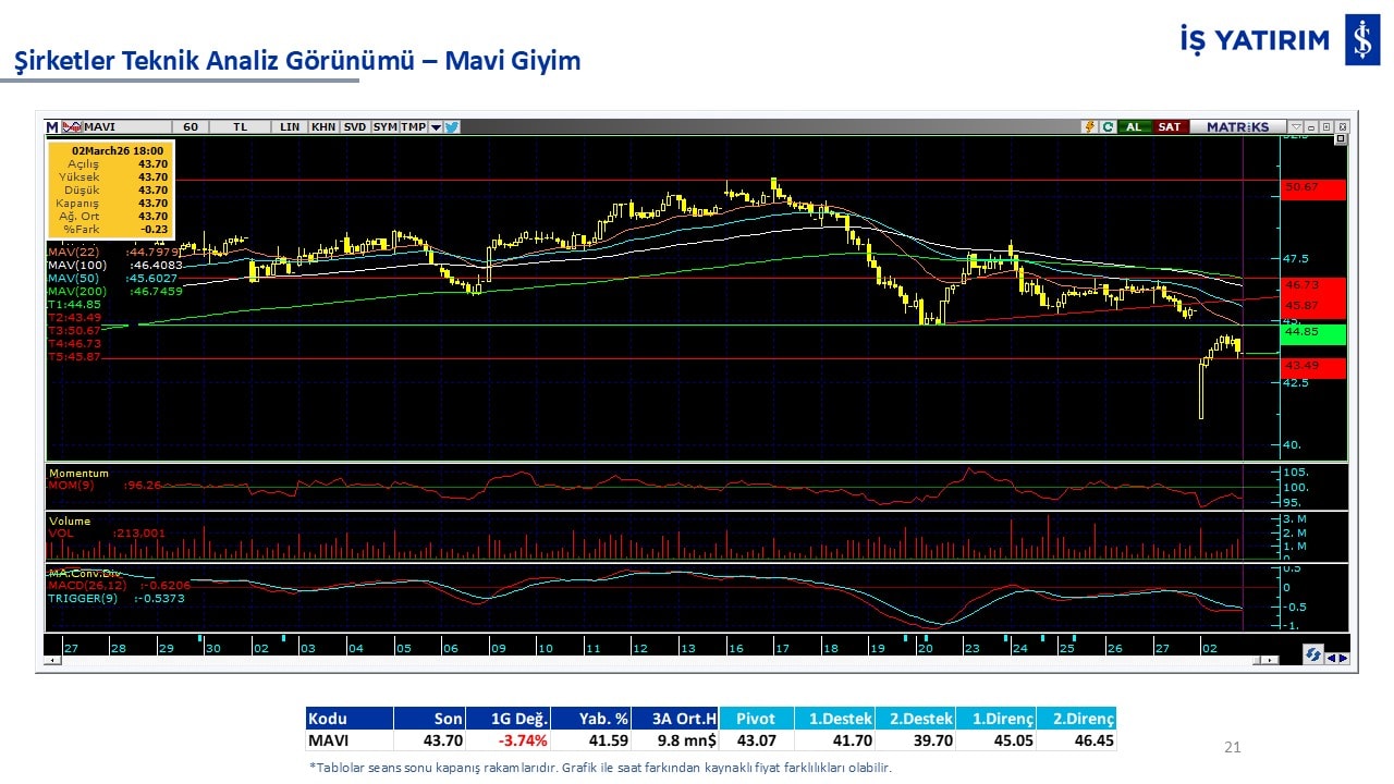 Teknik analiz görünümü olan şirketler: GARAN, THYAO, ISCTR, AKBNK, YKBNK, VAKBN, HALKB, EKGYO, TCELL, ENKAI, KCHOL, MAVI, ARCLK, ALARK, SAHOL, AGHOL, SOKM, MPARK.