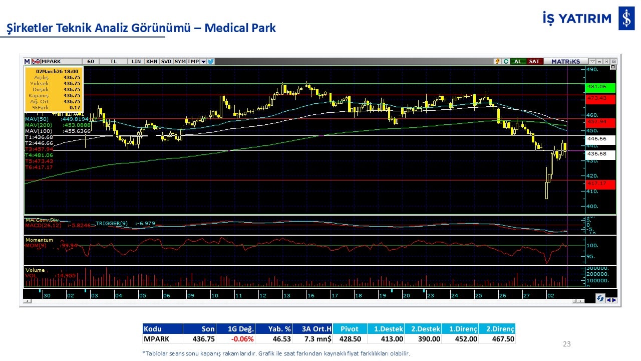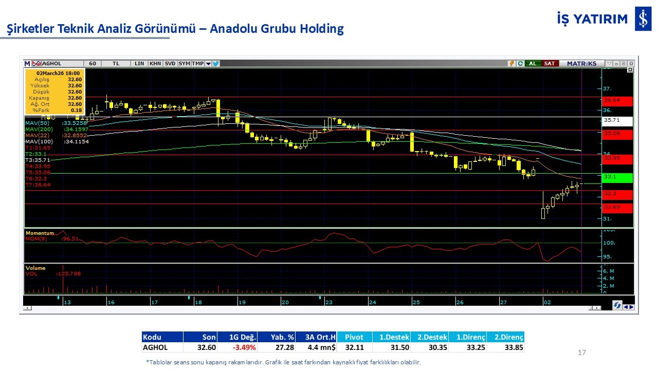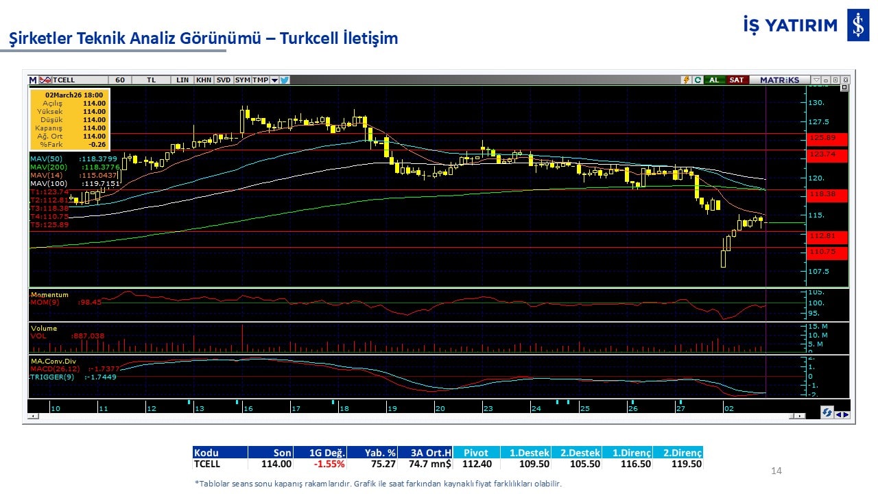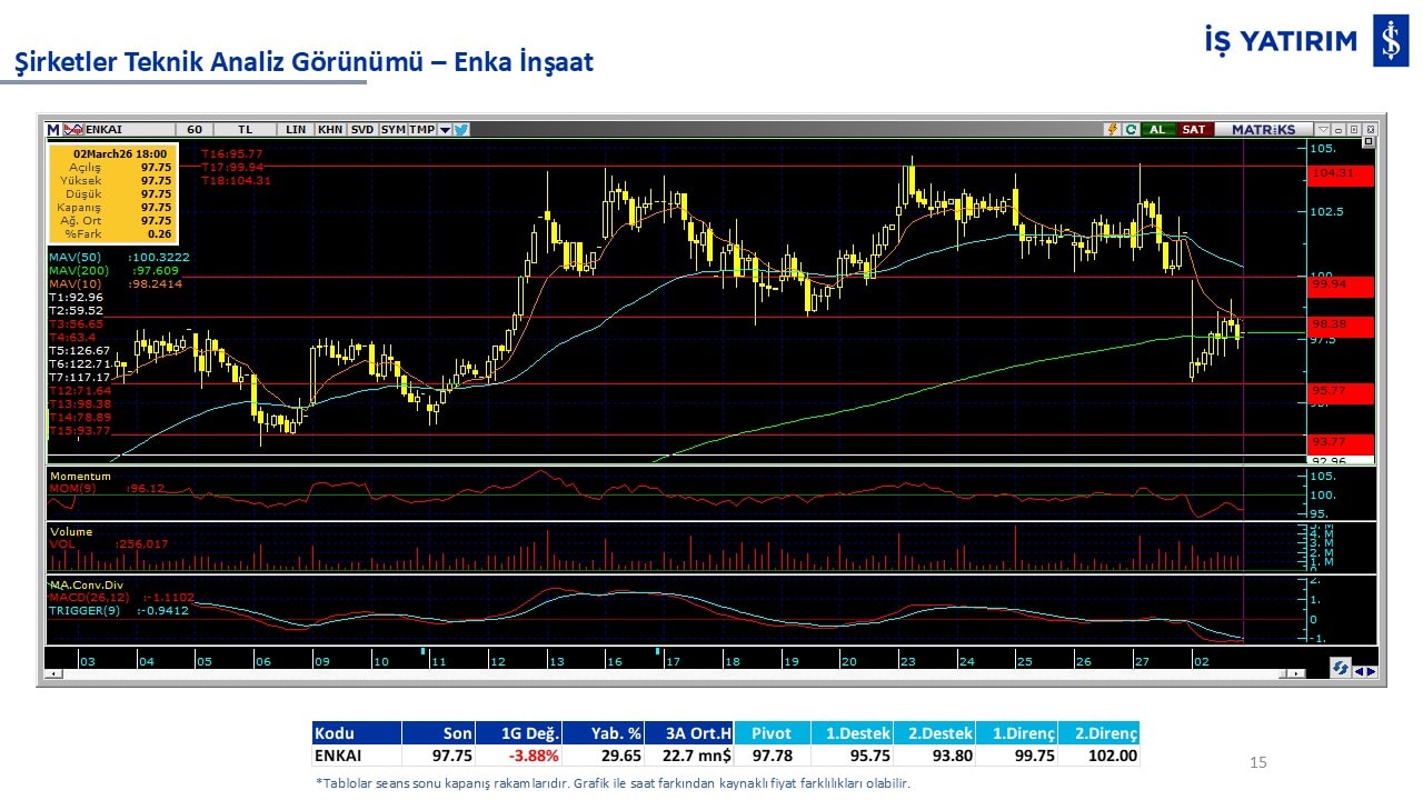 Teknik analiz görünümü olan şirketler: GARAN, THYAO, ISCTR, AKBNK, YKBNK, VAKBN, HALKB, EKGYO, TCELL, ENKAI, KCHOL, MAVI, ARCLK, ALARK, SAHOL, AGHOL, SOKM, MPARK.