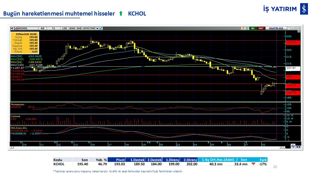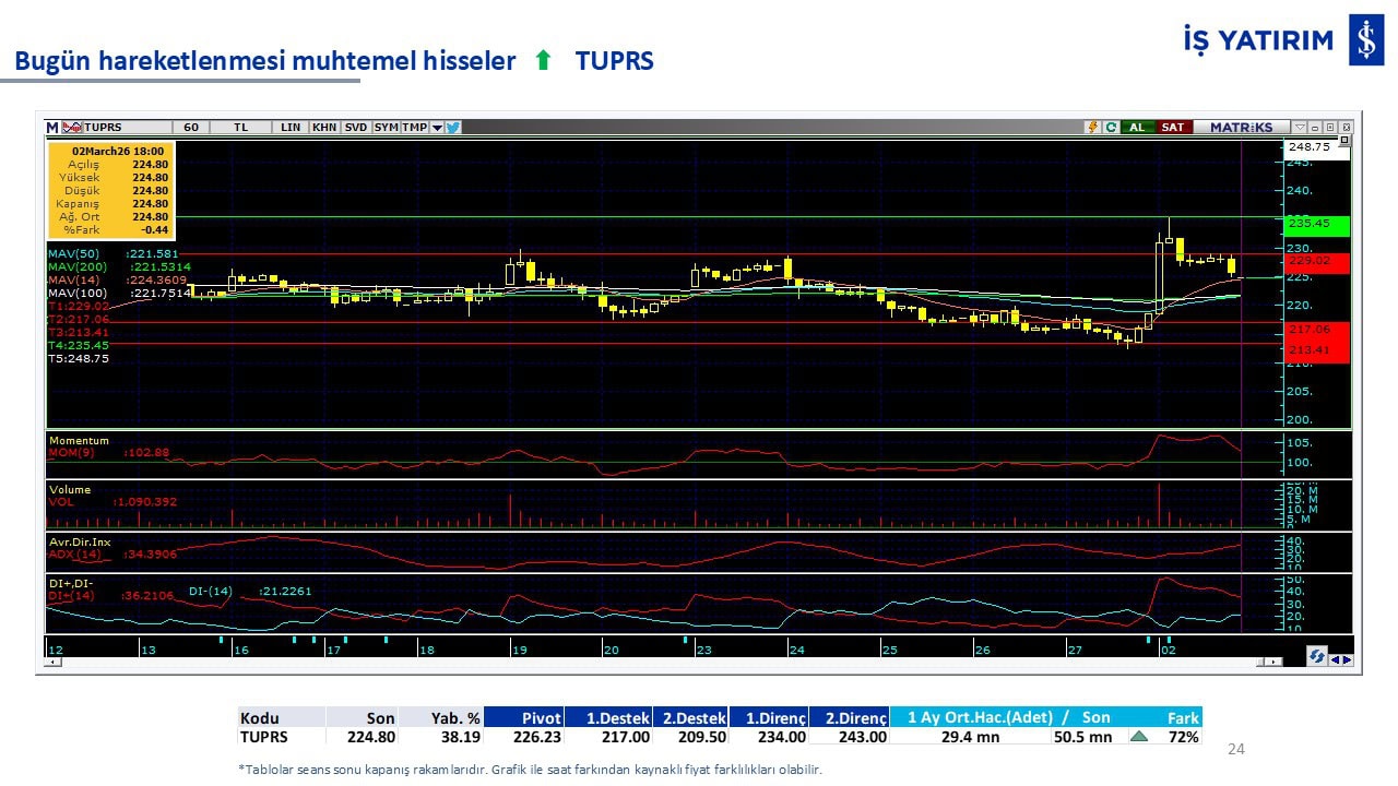 Bugün hareketlenmesi muhtemel hisseler: TUPRS-KCHOL