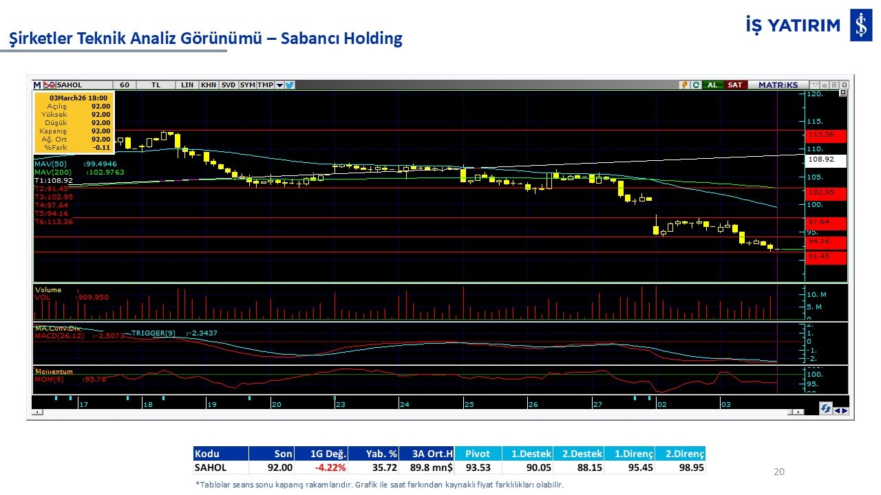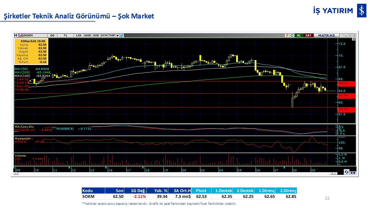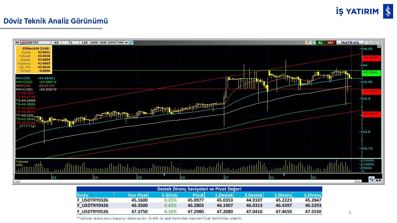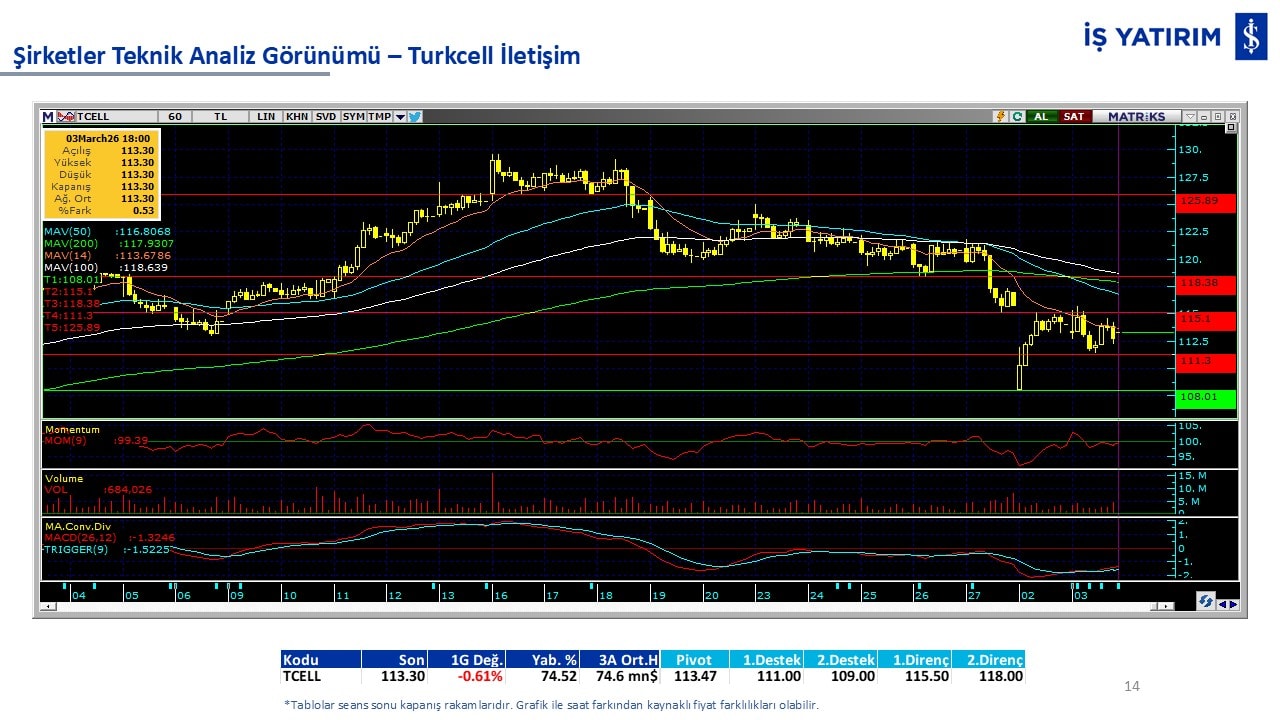“Teknik Bülten” raporumuzun içeriğinde; Vadeli endeks, kur, BIST100 endeksi, temel analiz tarafında da öneri verdiğimiz 18 adet hissenin teknik destek/direnç seviyeleri ve buna baz teşkil eden teknik grafikleri, bugün piyasadan pozitif ayrışma ihtimali olan hisseler ve bunların teknik destek/direnç seviyeleri, piyasa rakamları, dün çok açığa satış yapılan hisse senetleri ve kısa vadeli işlem önerilerimizden son 10 tanesi yer almaktadır.