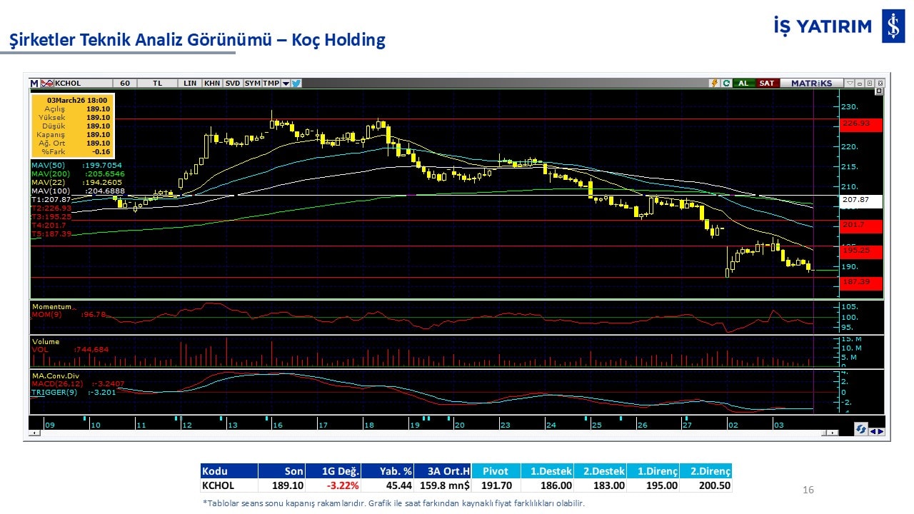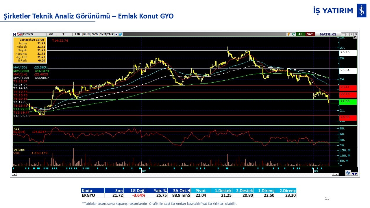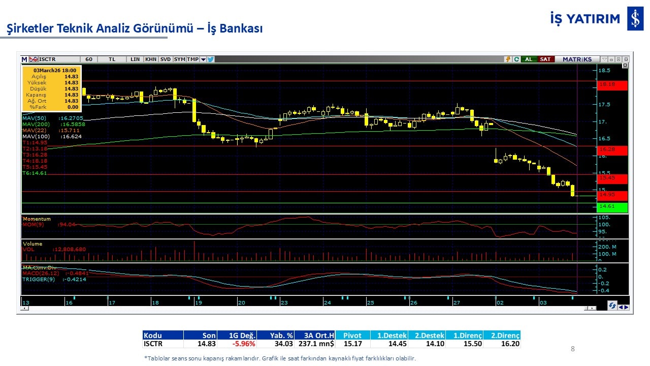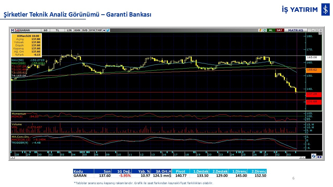 Teknik analiz görünümü olan şirketler: GARAN, THYAO, ISCTR, AKBNK, YKBNK, VAKBN, HALKB, EKGYO, TCELL, ENKAI, KCHOL, MAVI, ARCLK, ALARK, SAHOL, AGHOL, SOKM, MPARK.