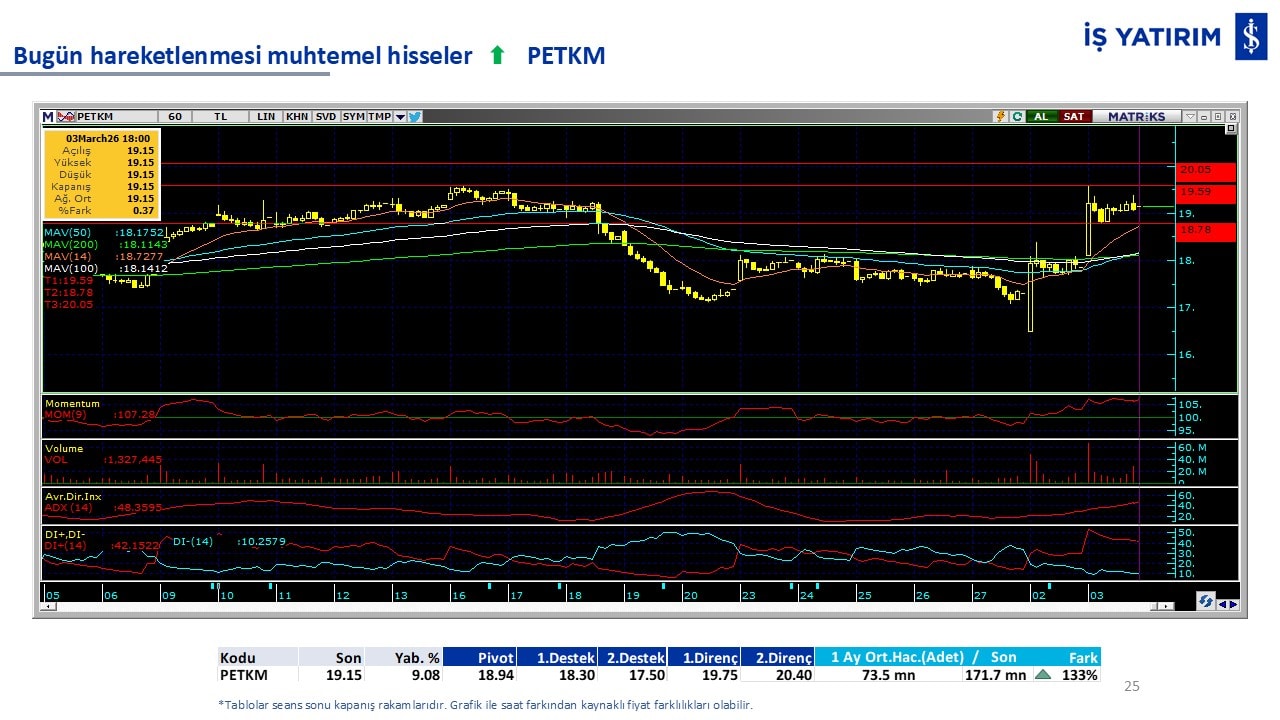 Bugün hareketlenmesi muhtemel hisseler: TUPRS-PETKM