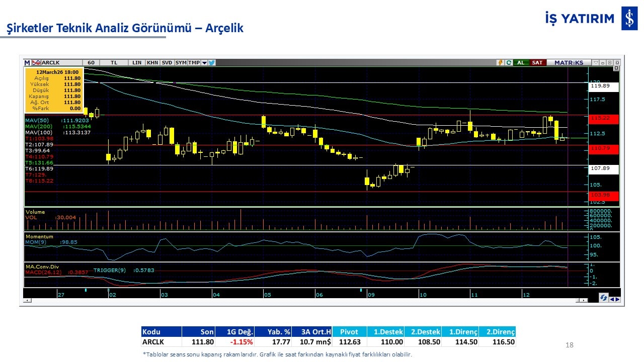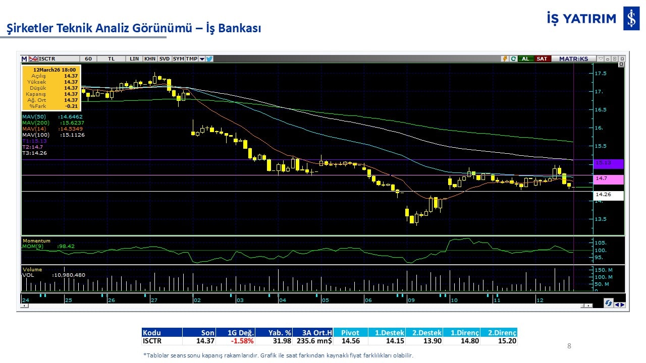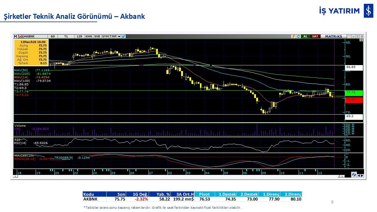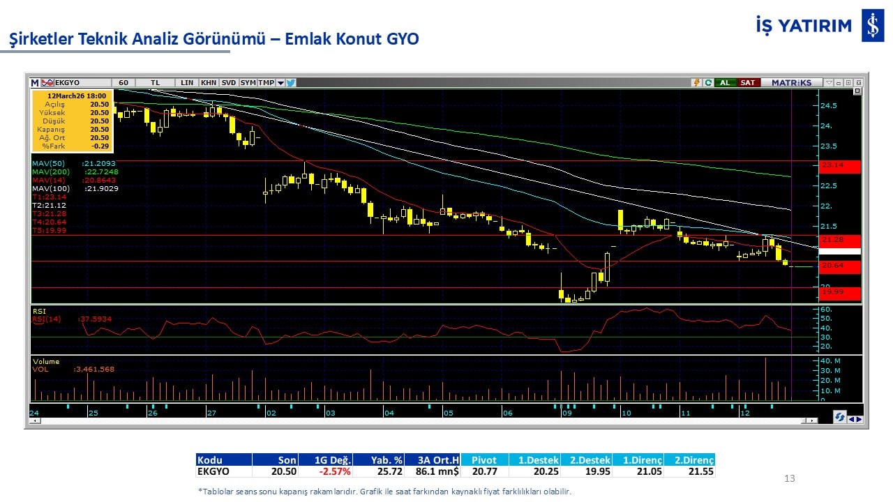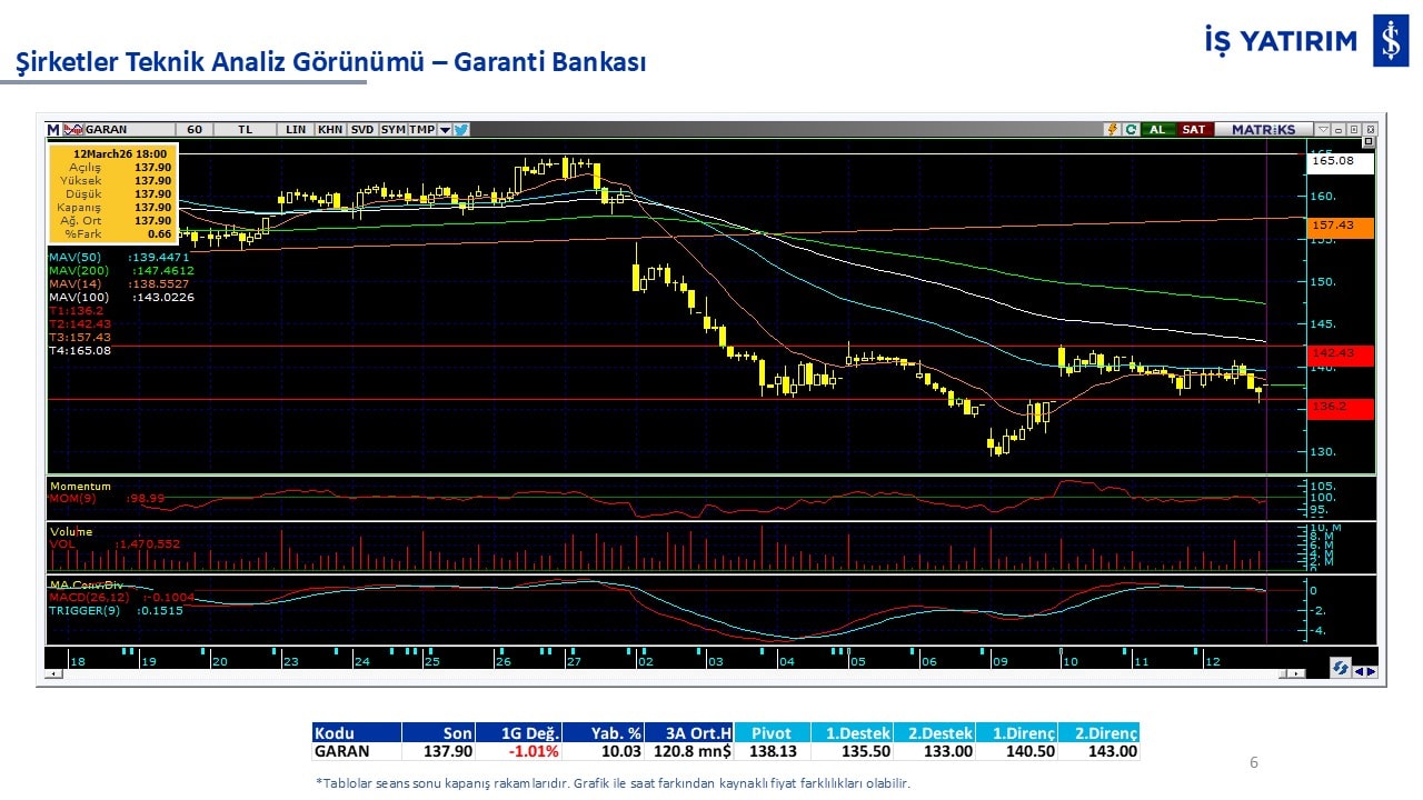 Teknik analiz görünümü olan şirketler: GARAN, THYAO, ISCTR, AKBNK, YKBNK, VAKBN, HALKB, EKGYO, TCELL, ENKAI, KCHOL, MAVI, ARCLK, ALARK, SAHOL, AGHOL, SOKM, MPARK.