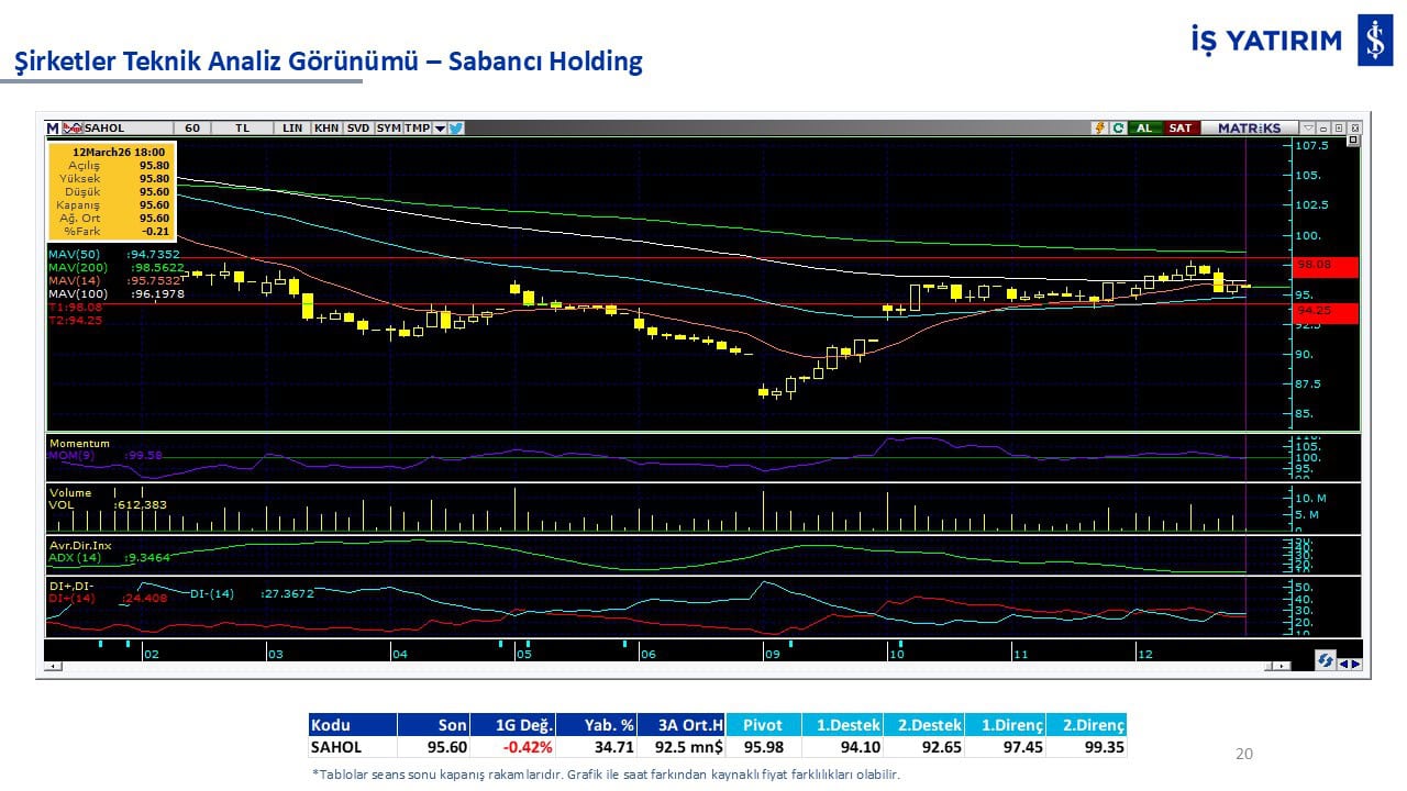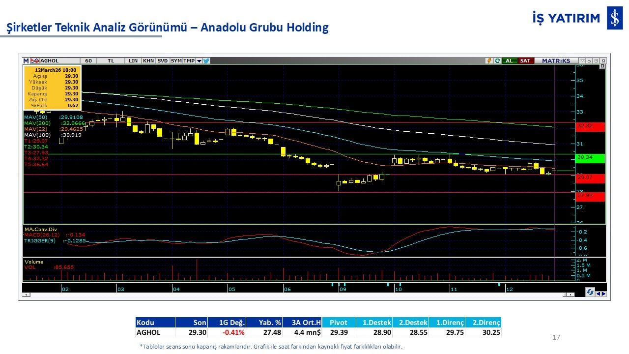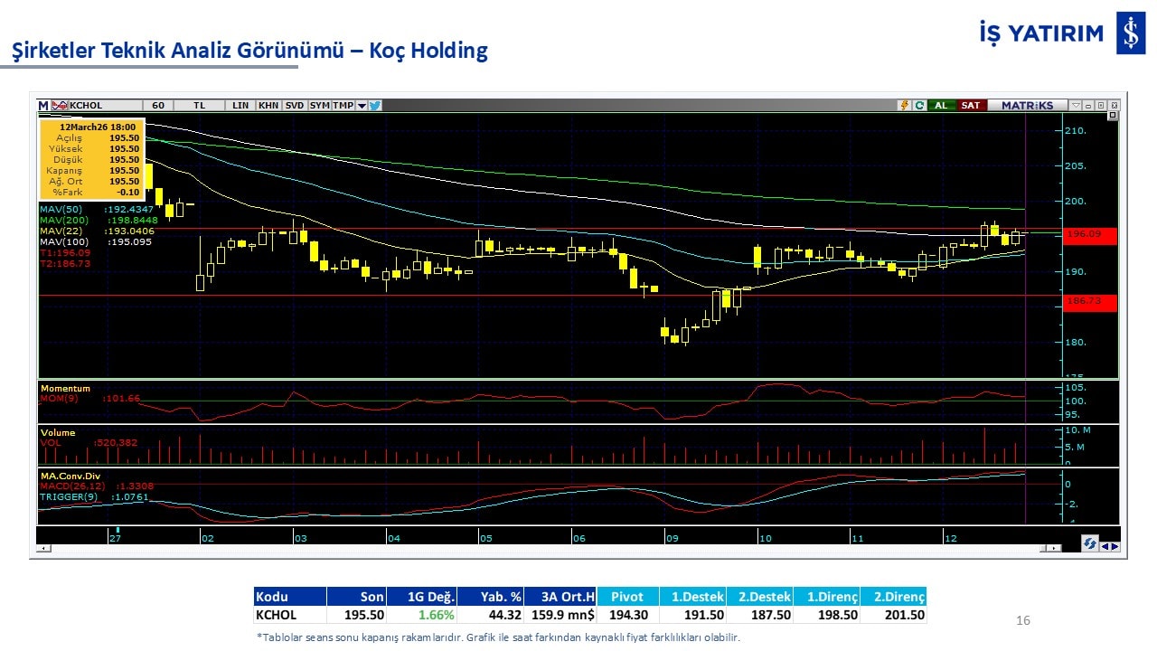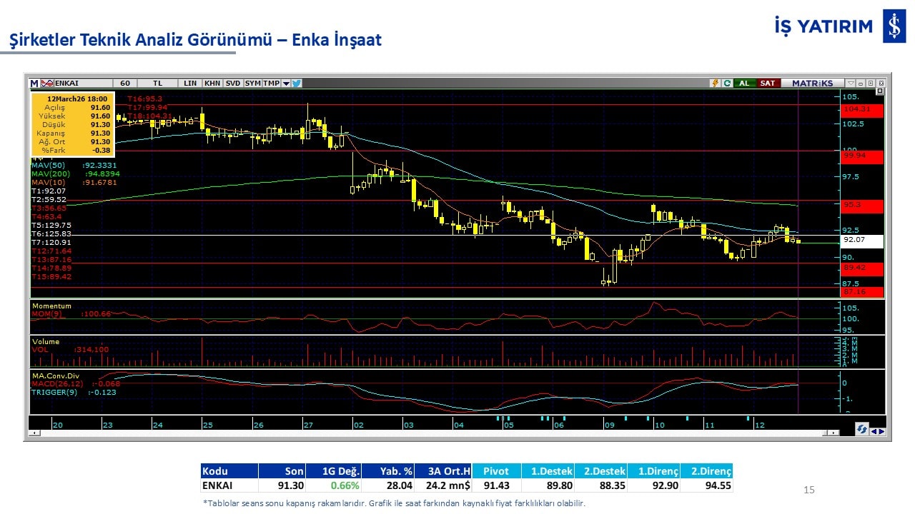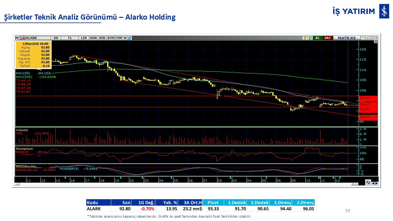 Teknik analiz görünümü olan şirketler: GARAN, THYAO, ISCTR, AKBNK, YKBNK, VAKBN, HALKB, EKGYO, TCELL, ENKAI, KCHOL, MAVI, ARCLK, ALARK, SAHOL, AGHOL, SOKM, MPARK.