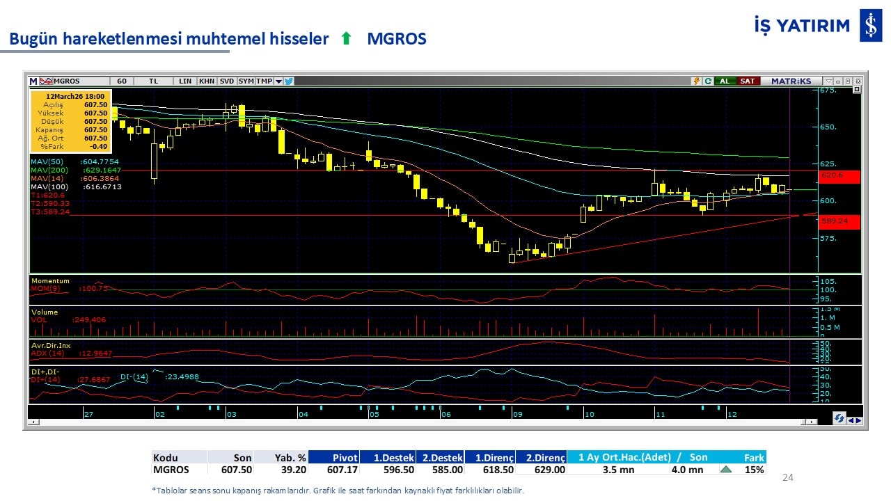Bugün hareketlenmesi muhtemel hisseler: MGROS-KCHOL-AKSEN