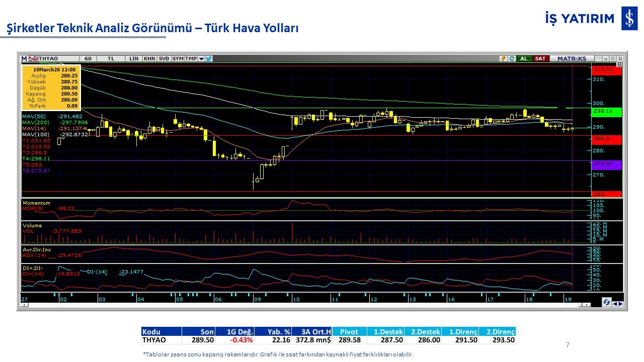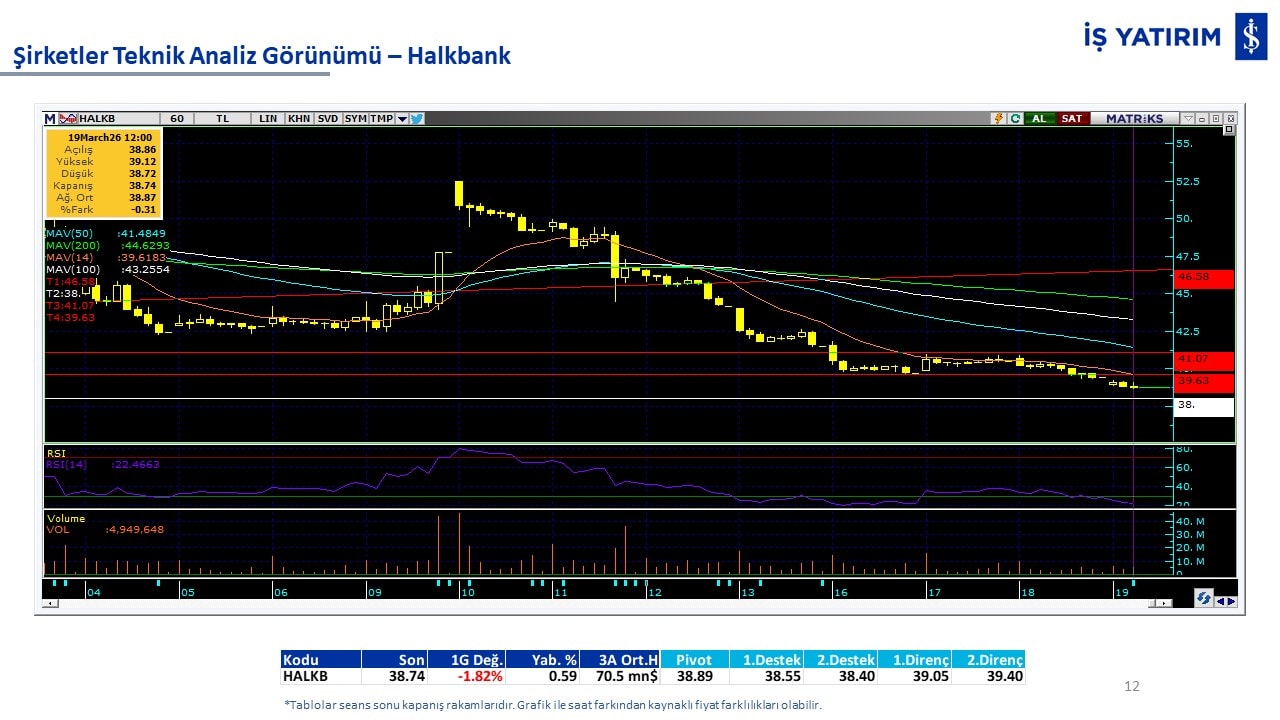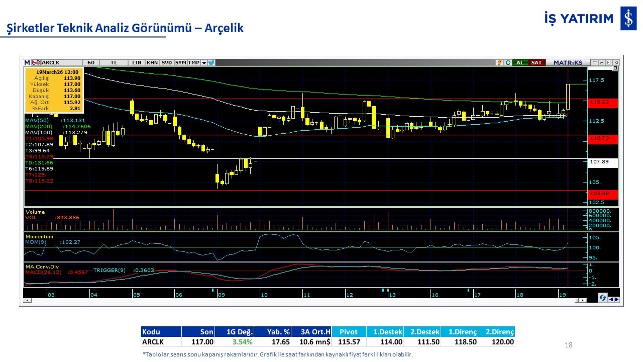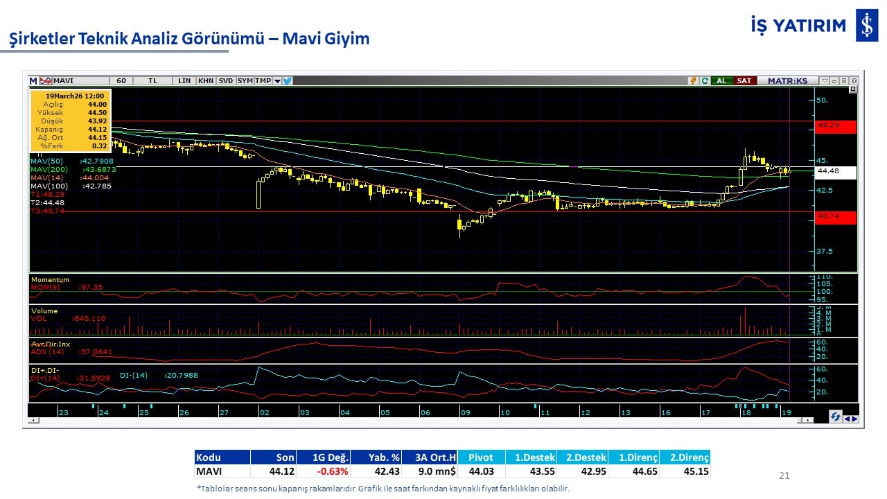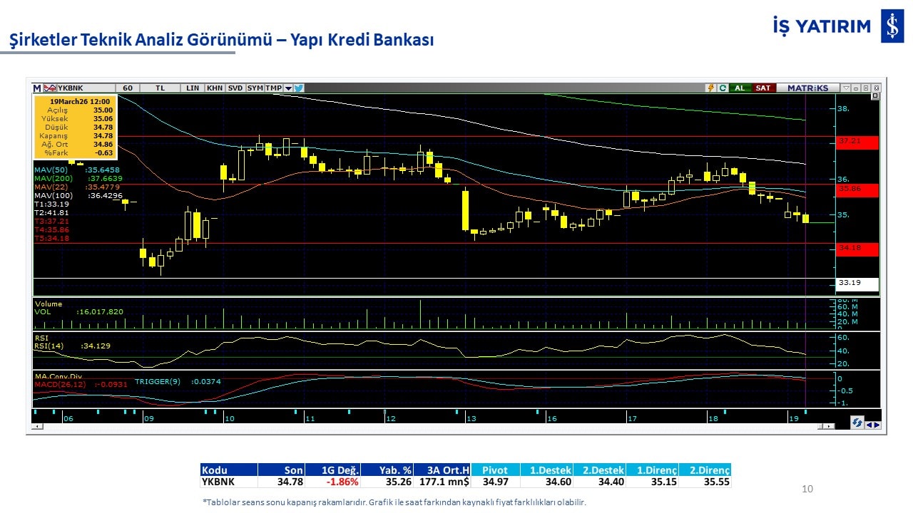 Teknik analiz görünümü olan şirketler: GARAN, THYAO, ISCTR, AKBNK, YKBNK, VAKBN, HALKB, EKGYO, TCELL, ENKAI, KCHOL, MAVI, ARCLK, ALARK, SAHOL, AGHOL, SOKM, MPARK.