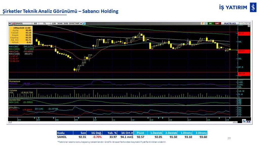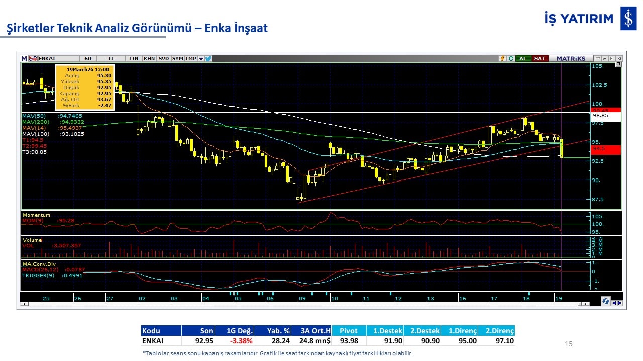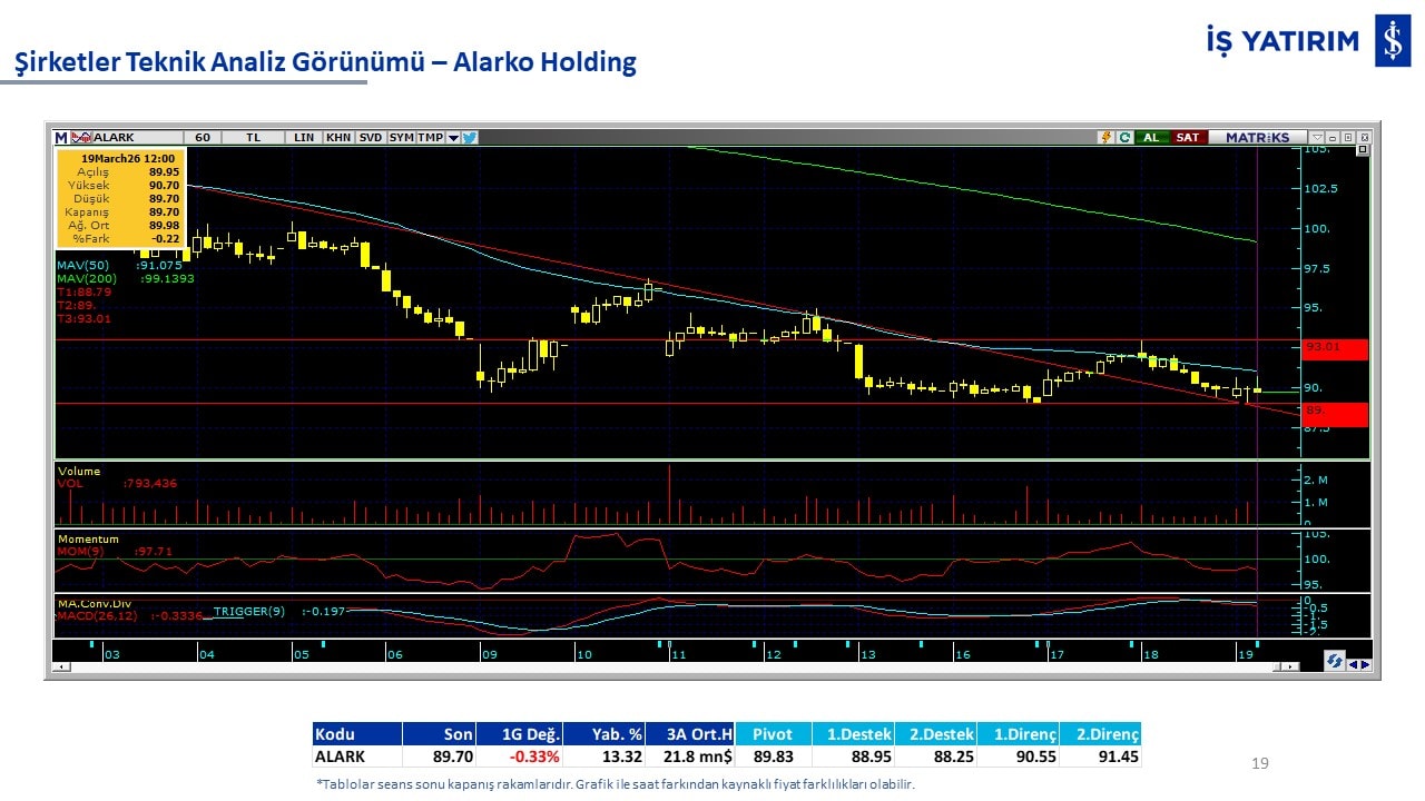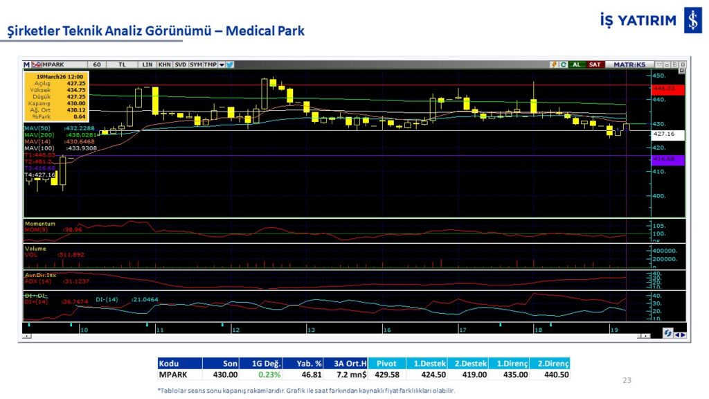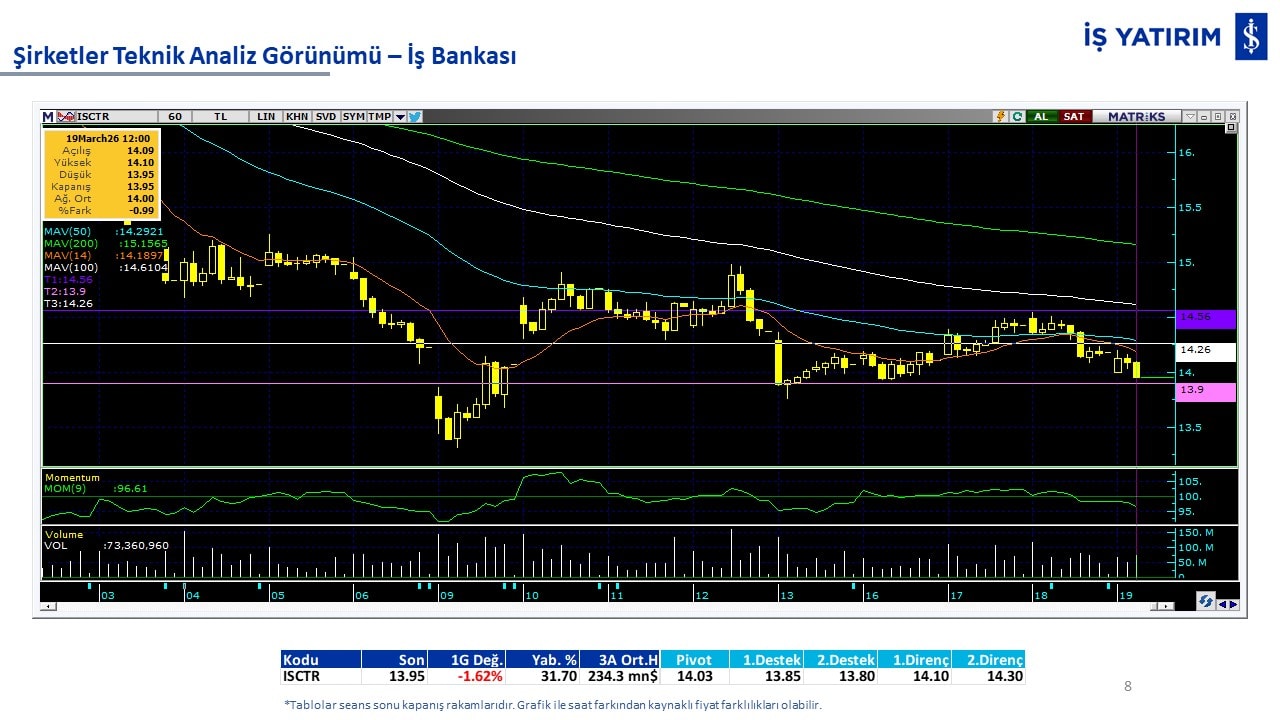 Teknik analiz görünümü olan şirketler: GARAN, THYAO, ISCTR, AKBNK, YKBNK, VAKBN, HALKB, EKGYO, TCELL, ENKAI, KCHOL, MAVI, ARCLK, ALARK, SAHOL, AGHOL, SOKM, MPARK.