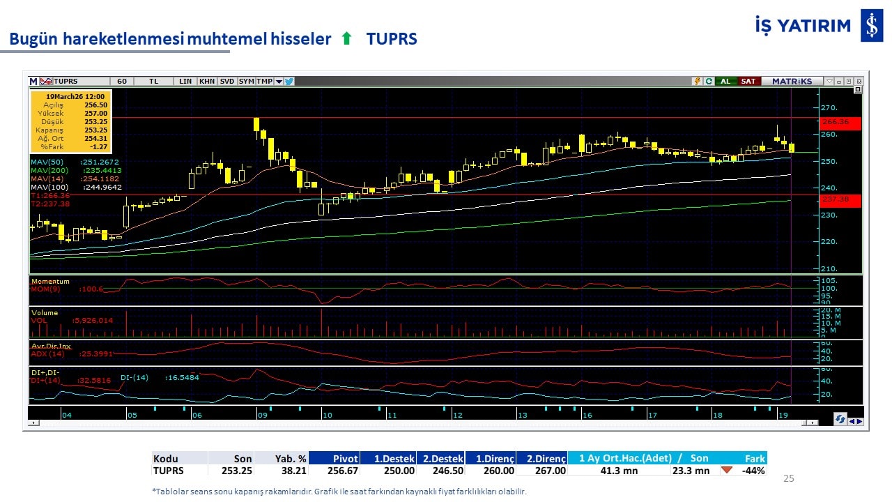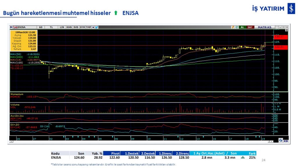 Bugün hareketlenmesi muhtemel hisseler: ENJSA, TUPRS.