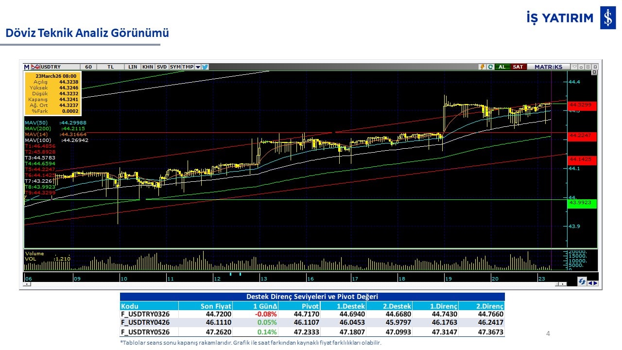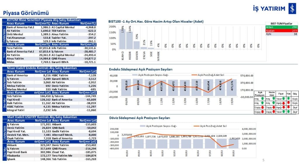 “Teknik Bülten” raporumuzun içeriğinde; Vadeli endeks, kur, BIST100 endeksi, temel analiz tarafında da öneri verdiğimiz 18 adet hissenin teknik destek/direnç seviyeleri ve buna baz teşkil eden teknik grafikleri, bugün piyasadan pozitif ayrışma ihtimali olan hisseler ve bunların teknik destek/direnç seviyeleri, piyasa rakamları, dün çok açığa satış yapılan hisse senetleri ve kısa vadeli işlem önerilerimizden son 10 tanesi yer almaktadır.