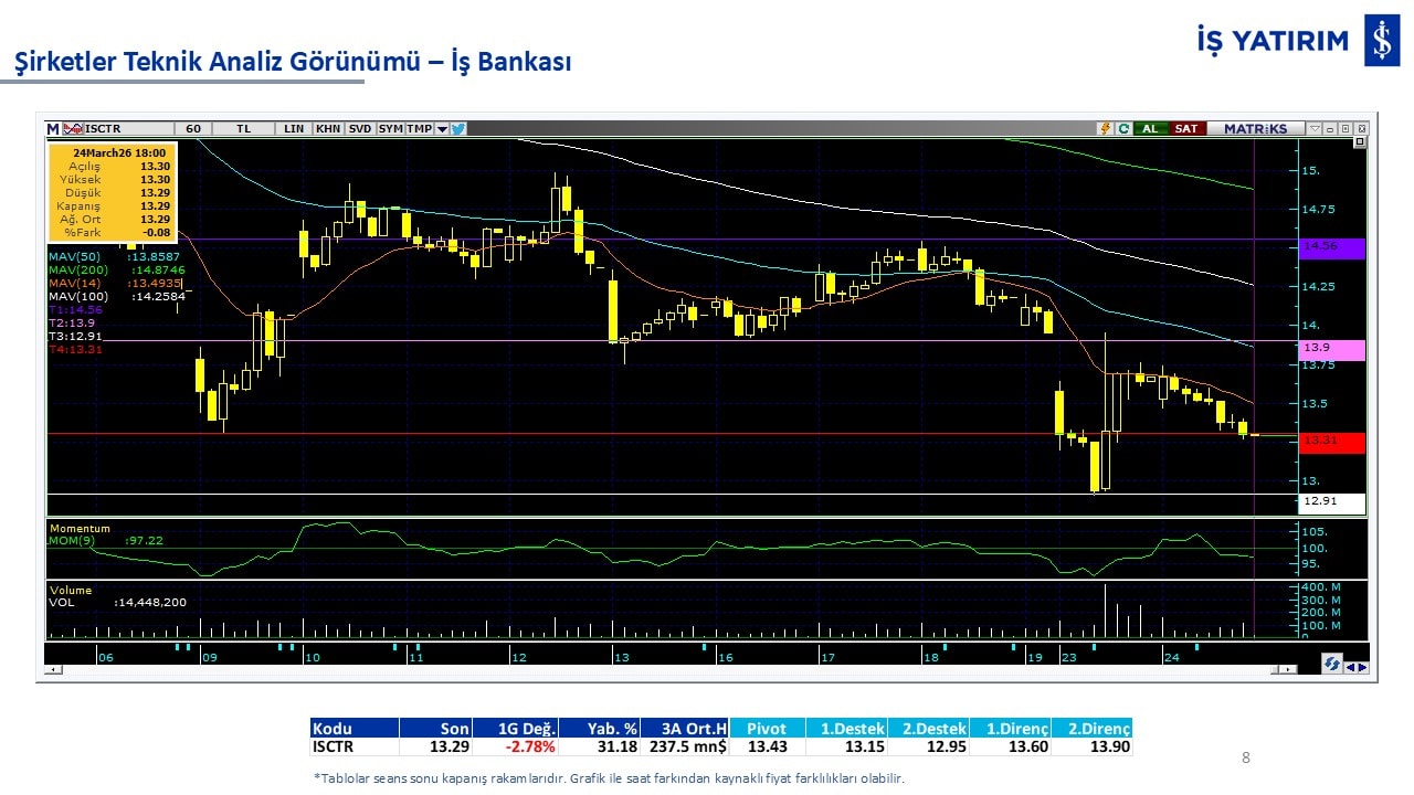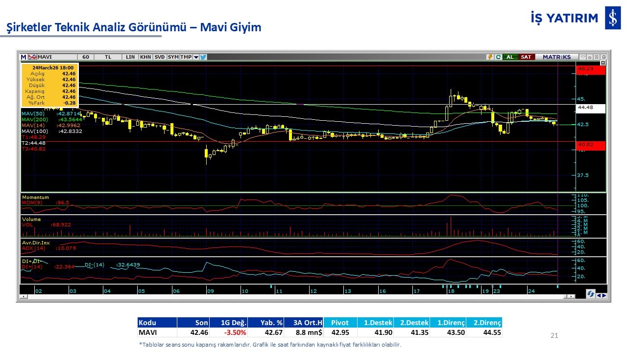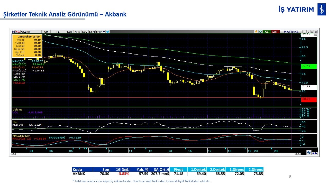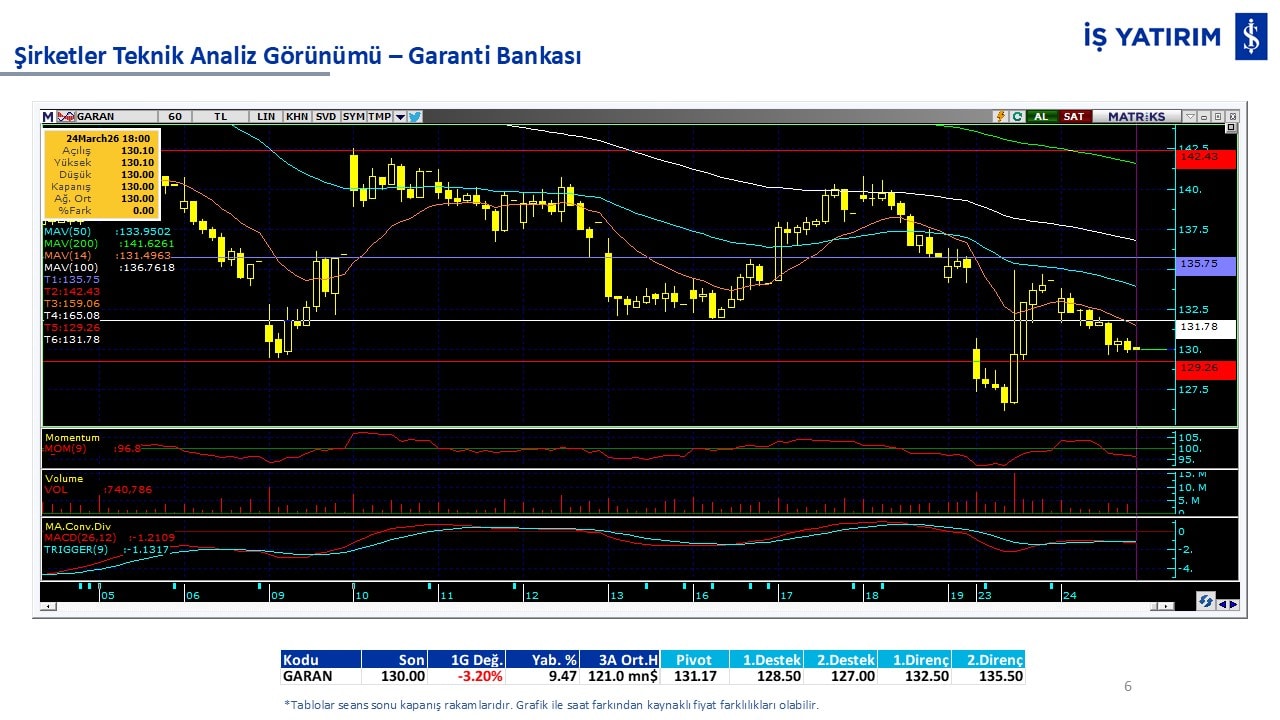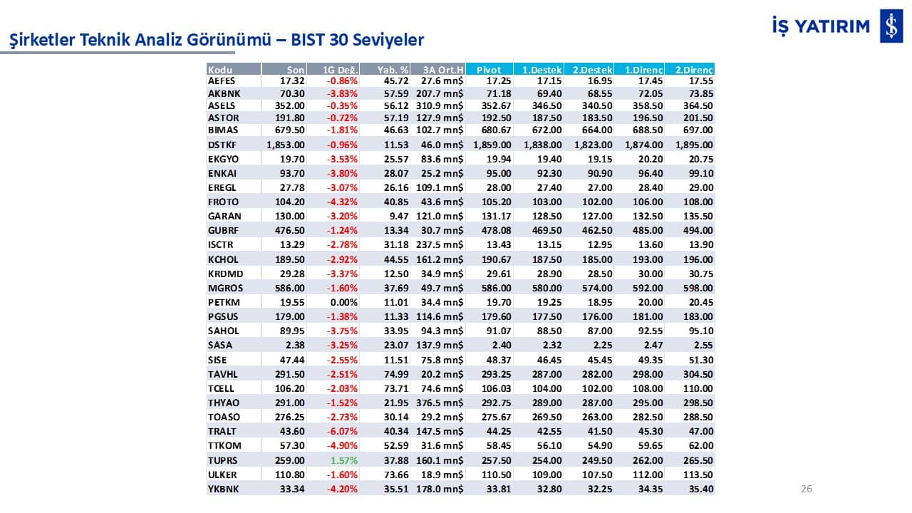 Teknik analiz görünümü olan şirketler: GARAN, THYAO, ISCTR, AKBNK, YKBNK, VAKBN, HALKB, EKGYO, TCELL, ENKAI, KCHOL, MAVI, ARCLK, ALARK, SAHOL, AGHOL, SOKM, MPARK.