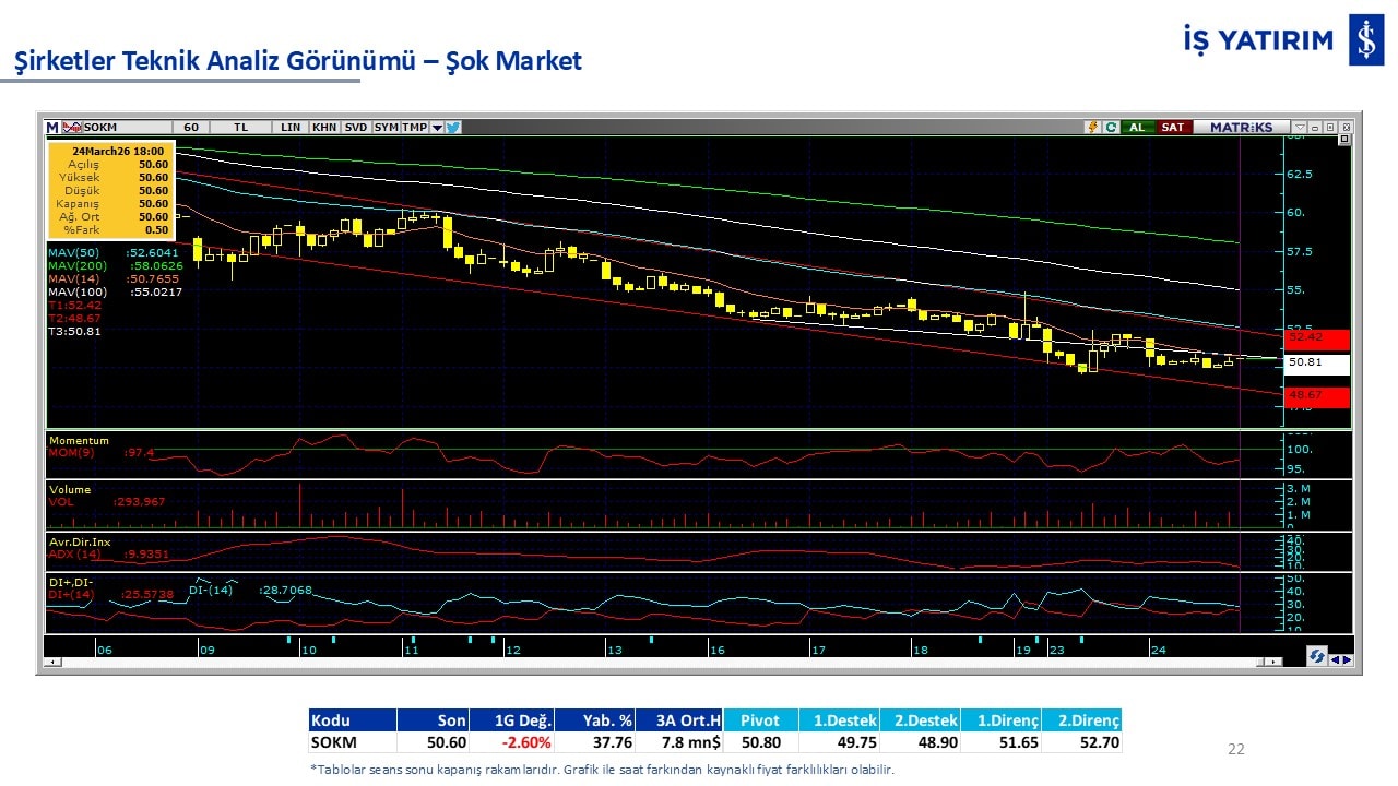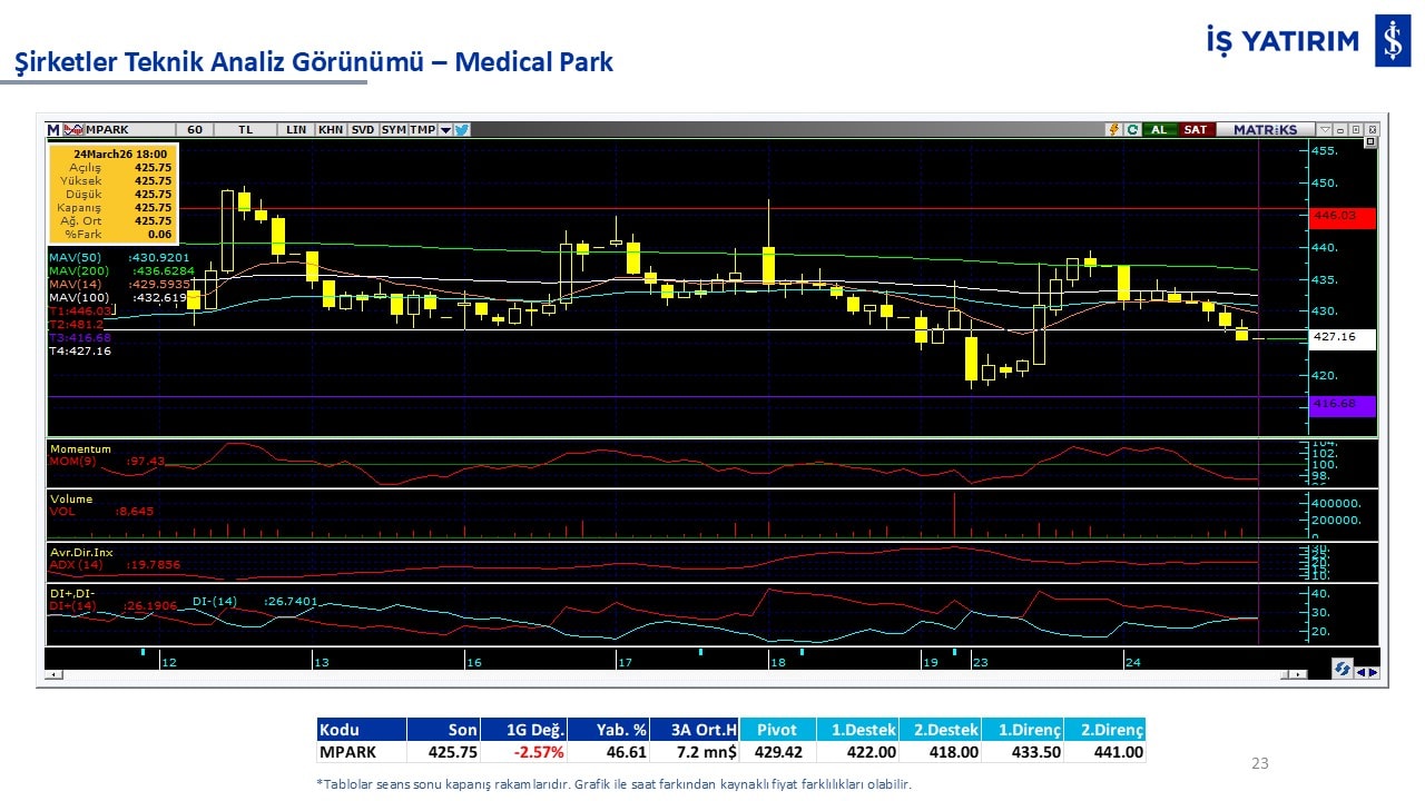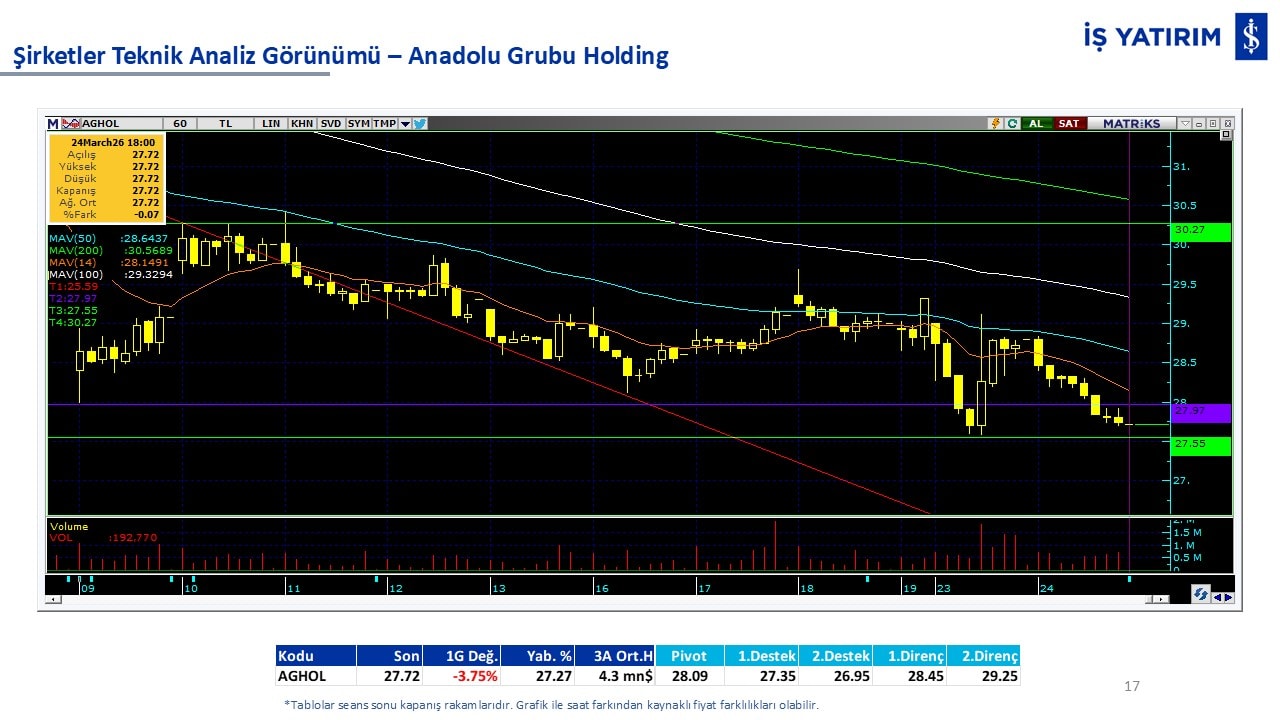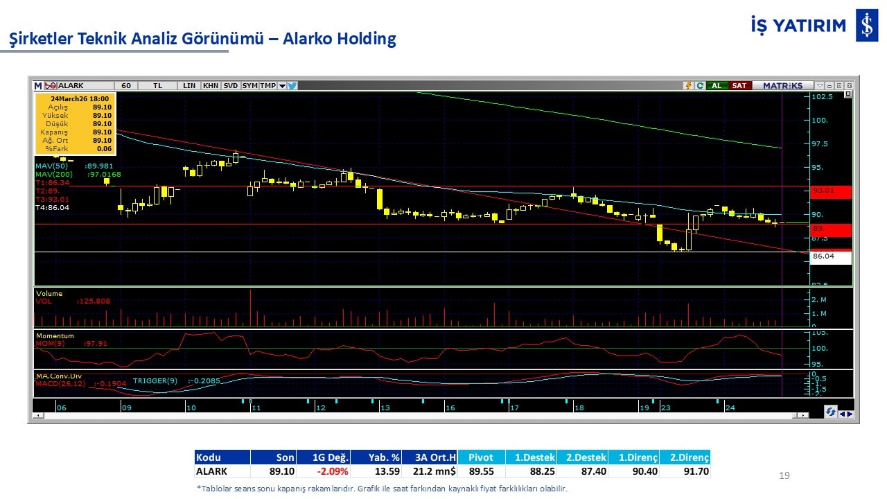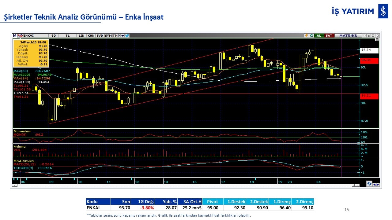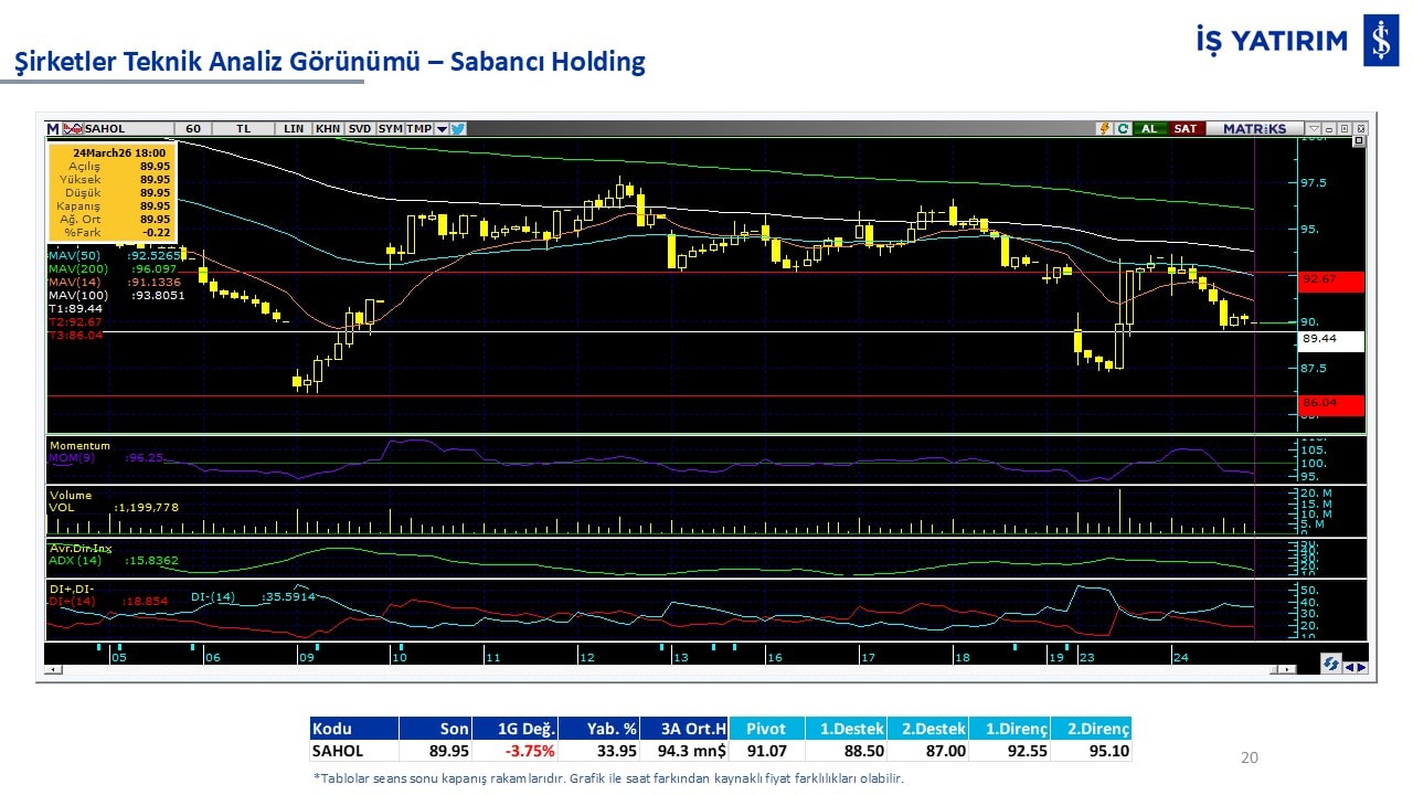 Teknik analiz görünümü olan şirketler: GARAN, THYAO, ISCTR, AKBNK, YKBNK, VAKBN, HALKB, EKGYO, TCELL, ENKAI, KCHOL, MAVI, ARCLK, ALARK, SAHOL, AGHOL, SOKM, MPARK.