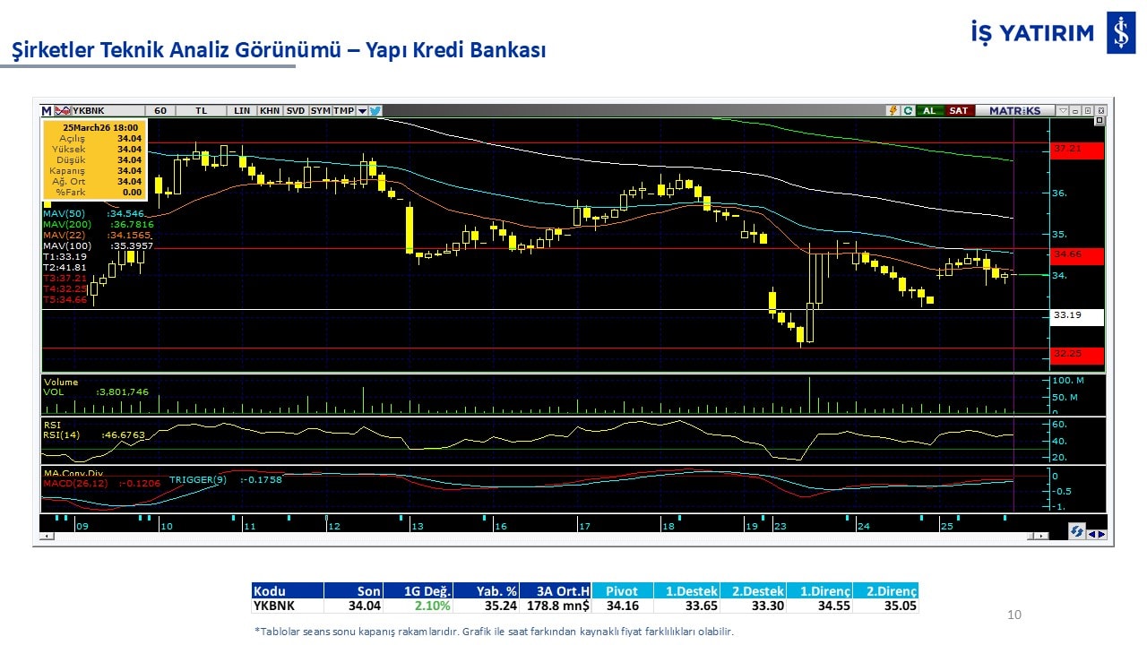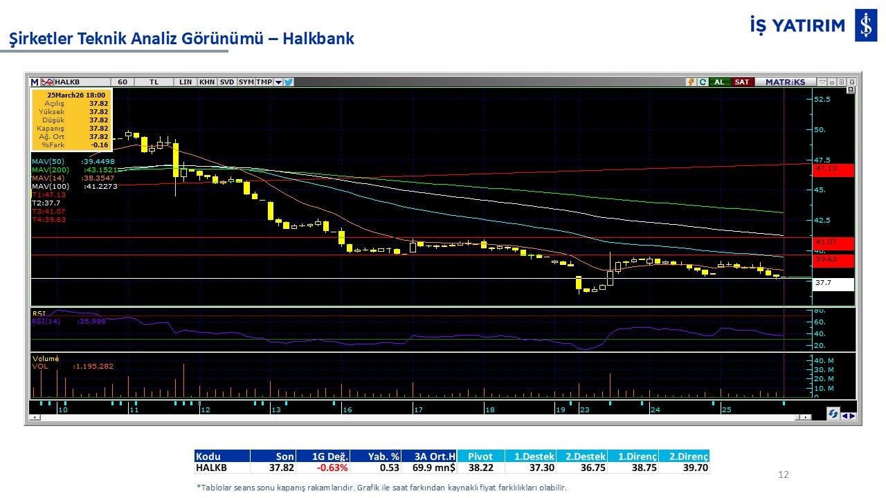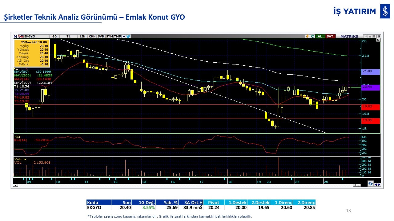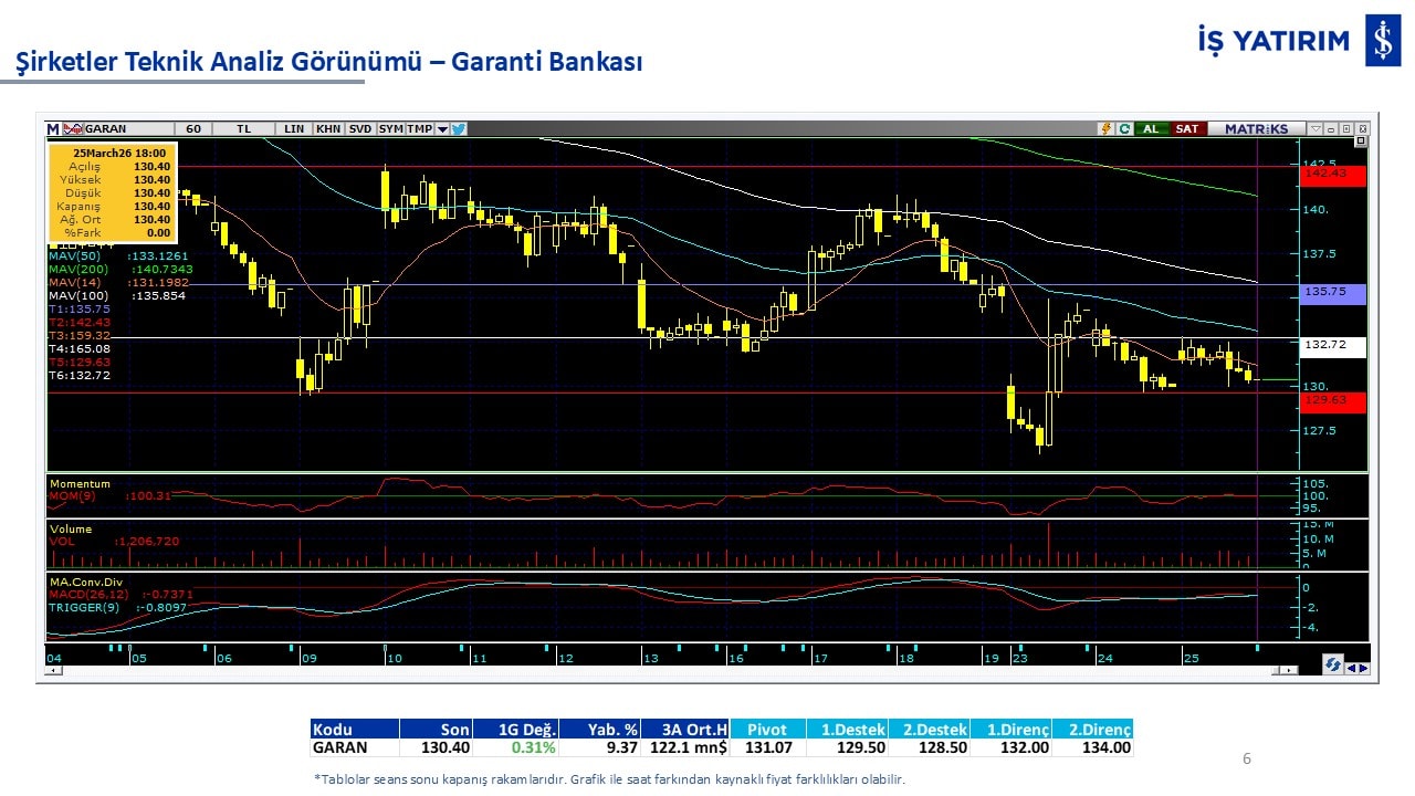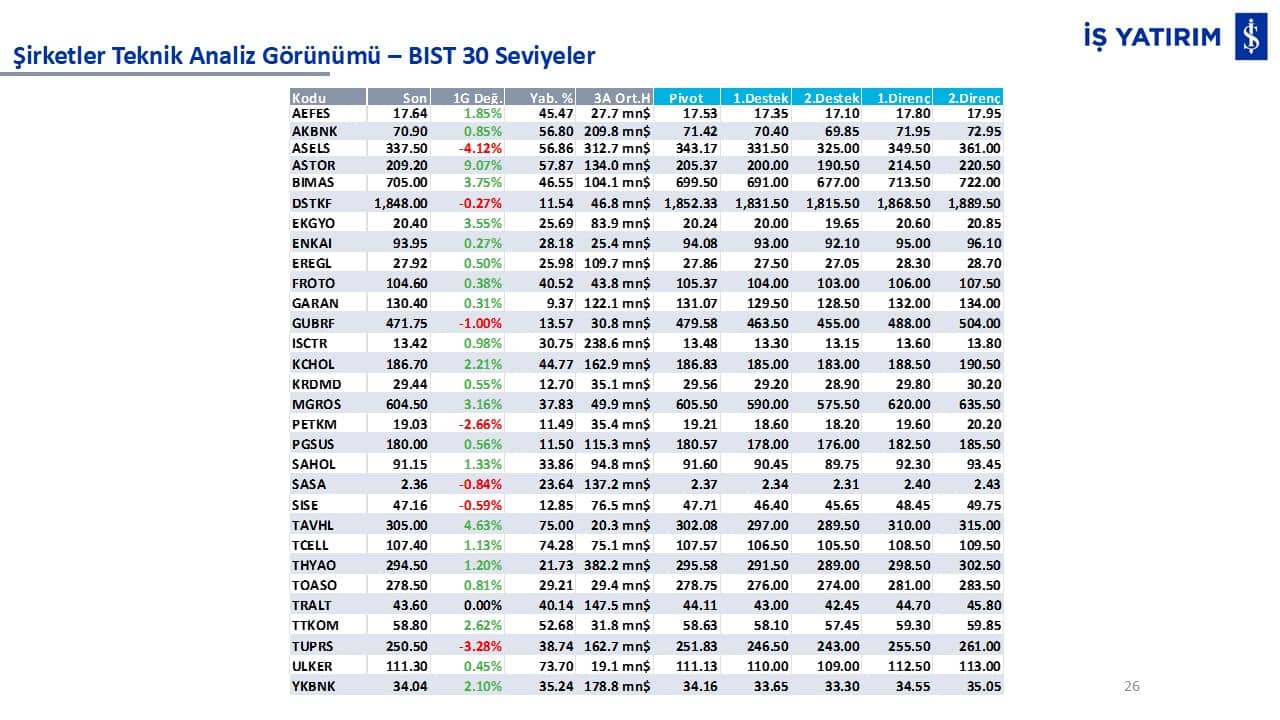 Teknik analiz görünümü olan şirketler: GARAN, THYAO, ISCTR, AKBNK, YKBNK, VAKBN, HALKB, EKGYO, TCELL, ENKAI, KCHOL, MAVI, ARCLK, ALARK, SAHOL, AGHOL, SOKM, MPARK.