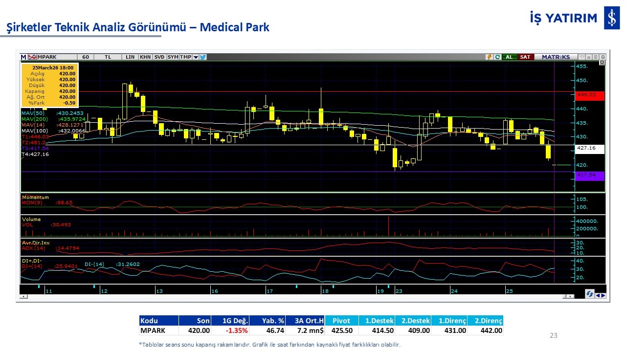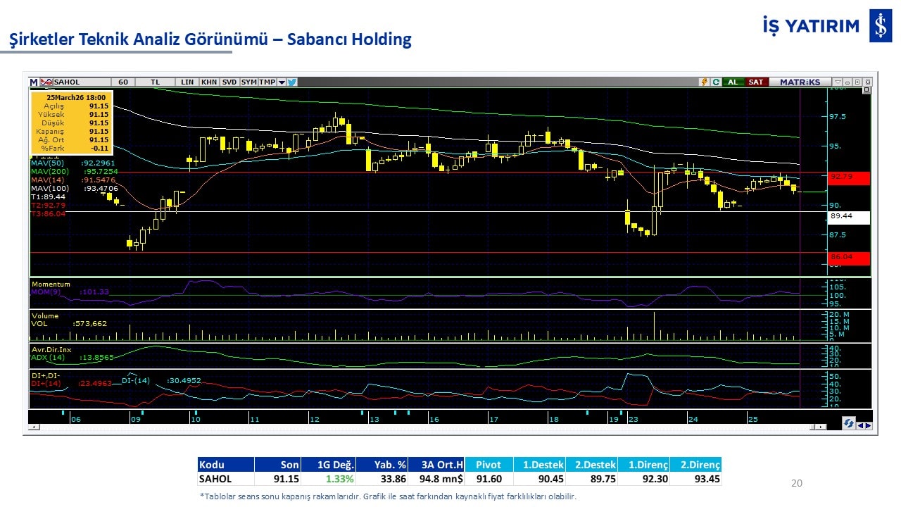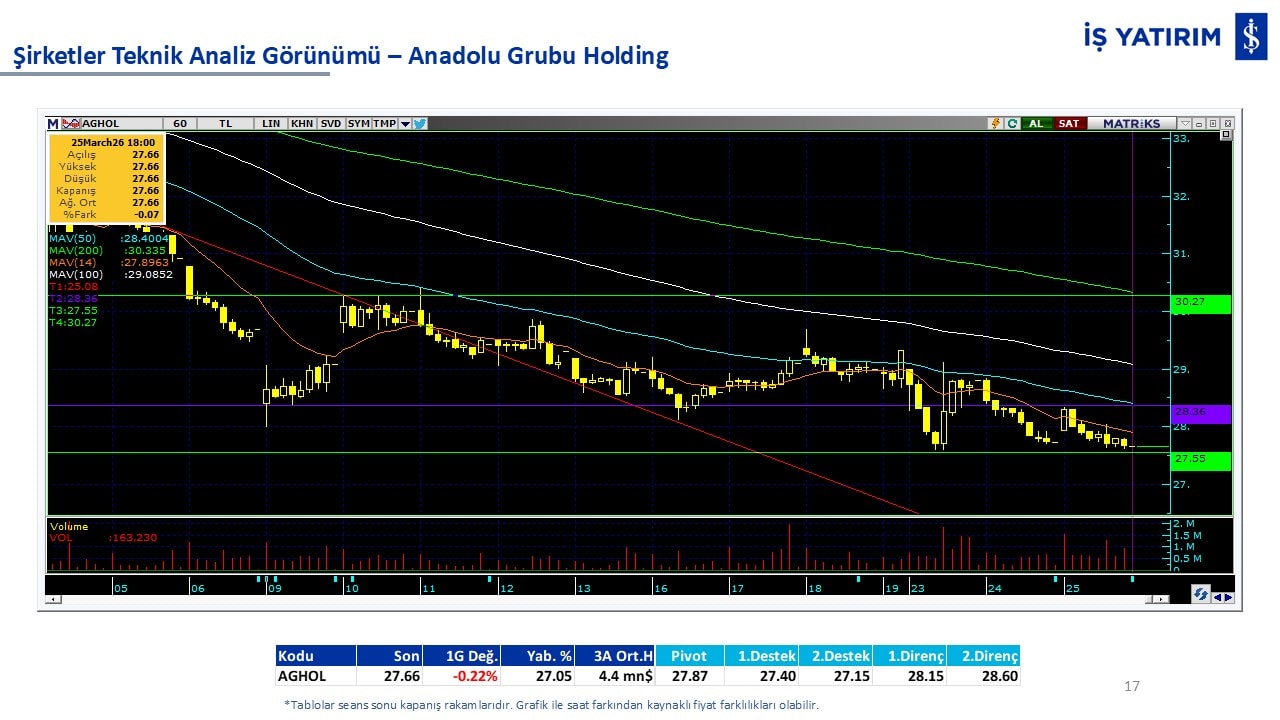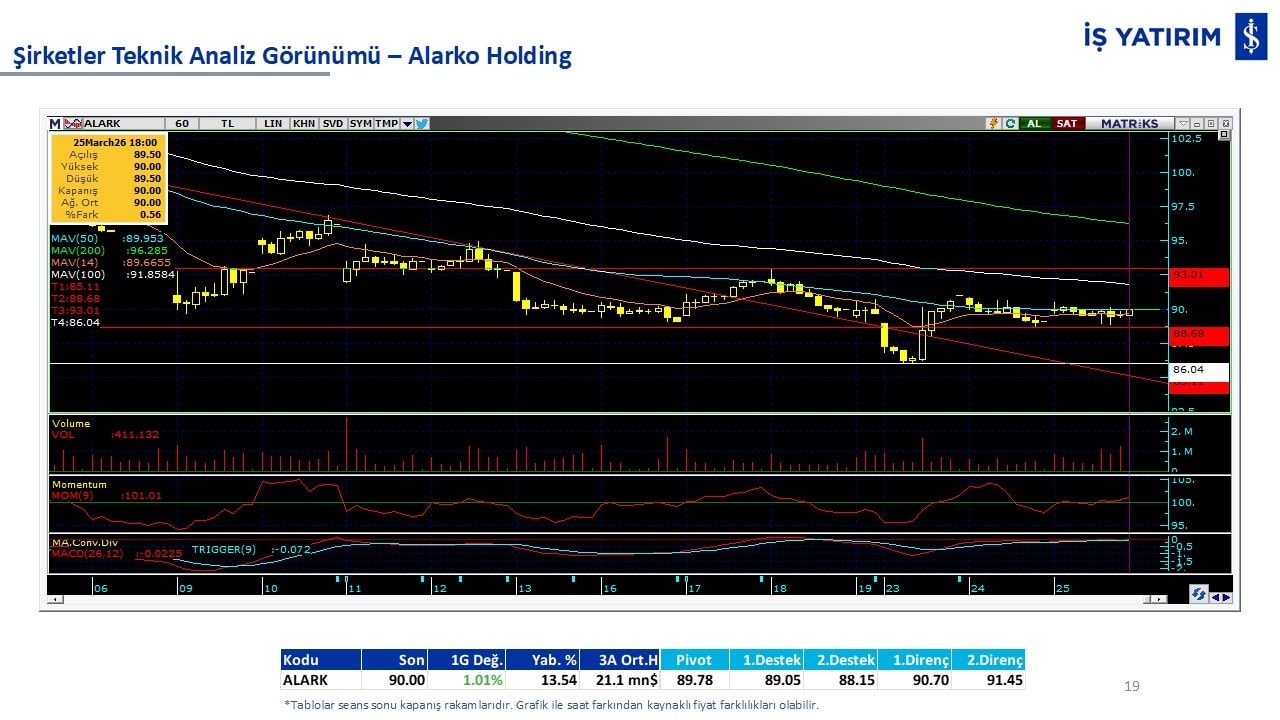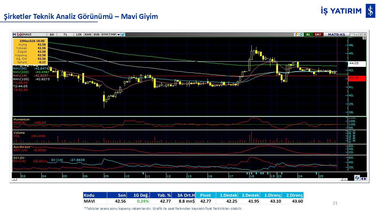 Teknik analiz görünümü olan şirketler: GARAN, THYAO, ISCTR, AKBNK, YKBNK, VAKBN, HALKB, EKGYO, TCELL, ENKAI, KCHOL, MAVI, ARCLK, ALARK, SAHOL, AGHOL, SOKM, MPARK.