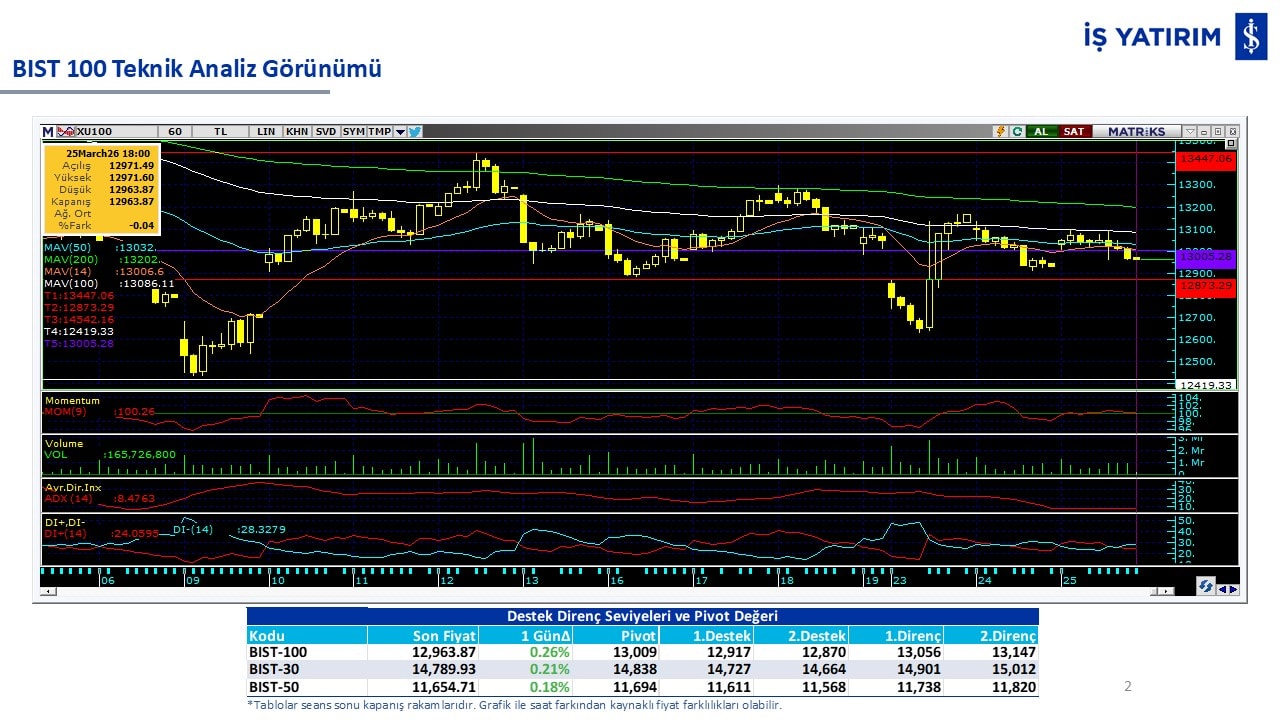 “Teknik Bülten” raporumuzun içeriğinde; Vadeli endeks, kur, BIST100 endeksi, temel analiz tarafında da öneri verdiğimiz 18 adet hissenin teknik destek/direnç seviyeleri ve buna baz teşkil eden teknik grafikleri, bugün piyasadan pozitif ayrışma ihtimali olan hisseler ve bunların teknik destek/direnç seviyeleri, piyasa rakamları, dün çok açığa satış yapılan hisse senetleri ve kısa vadeli işlem önerilerimizden son 10 tanesi yer almaktadır.