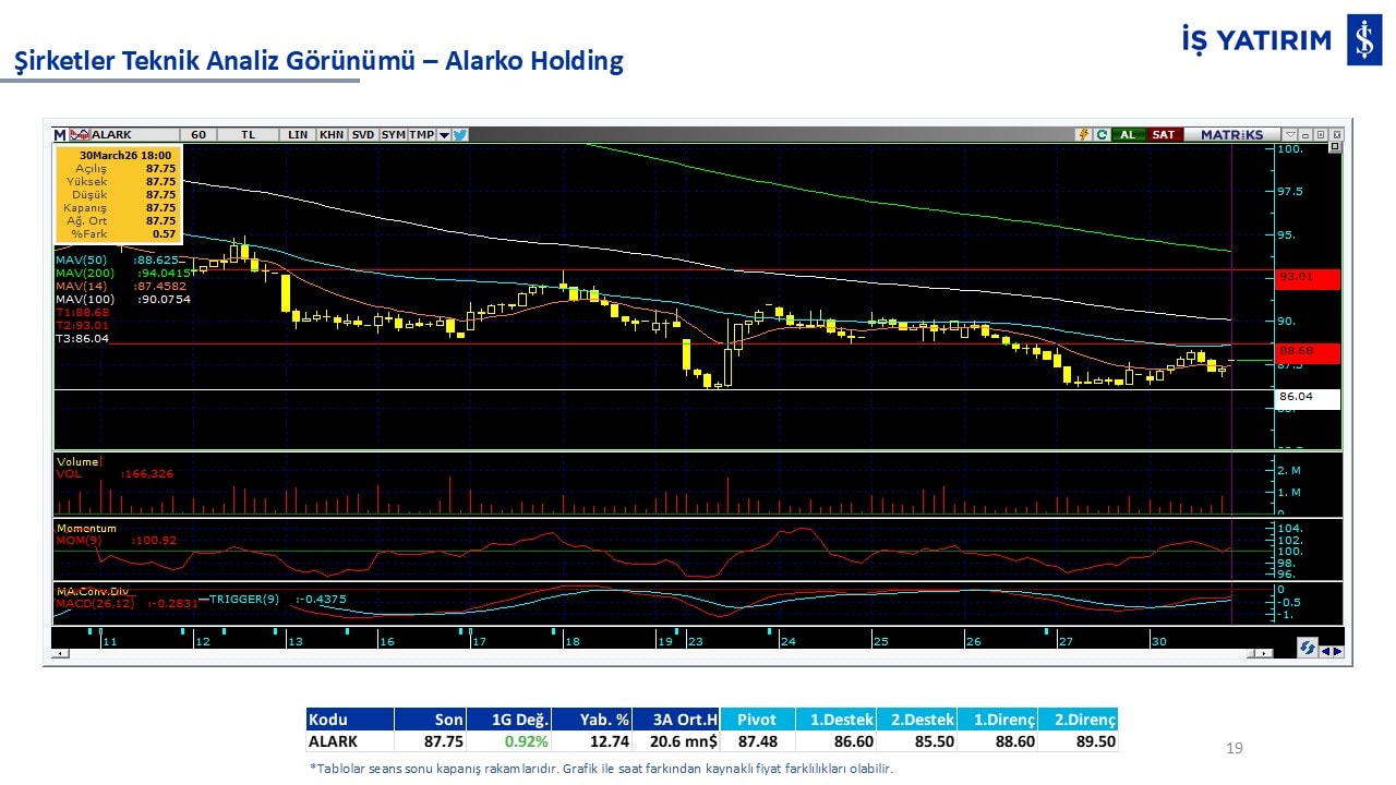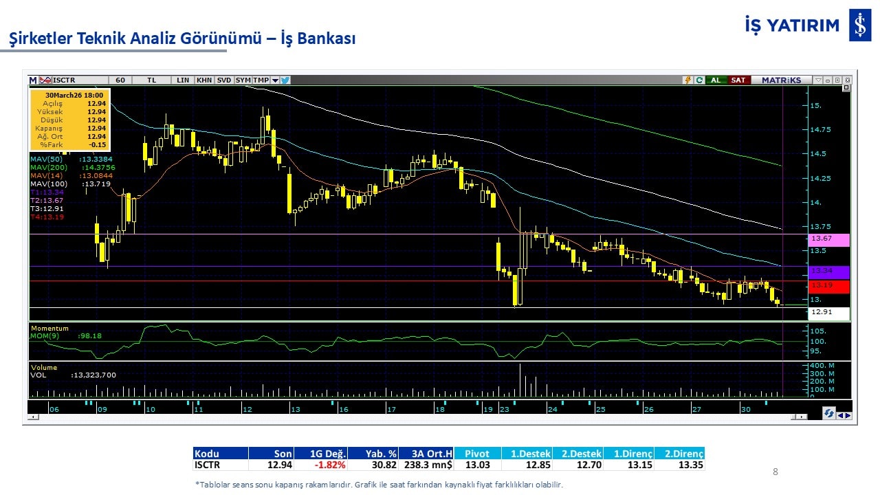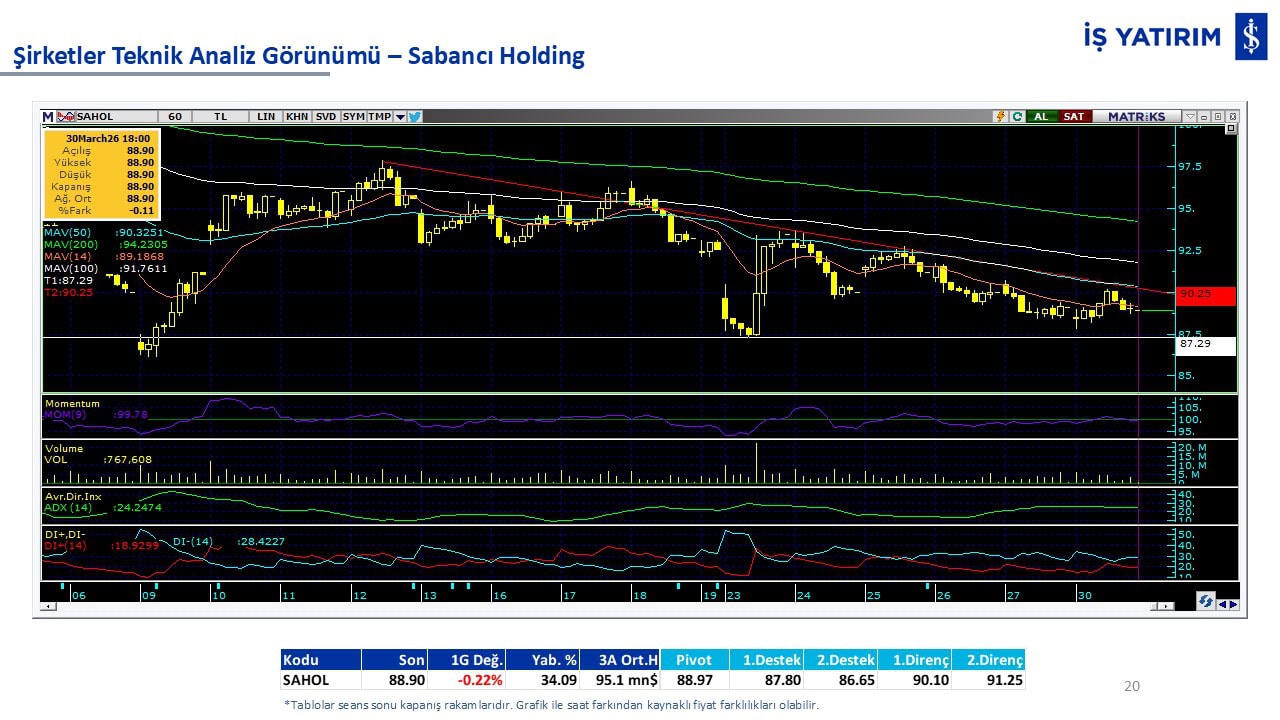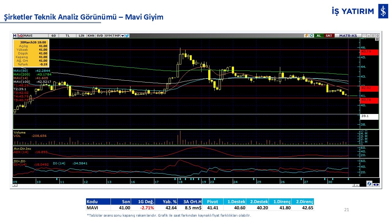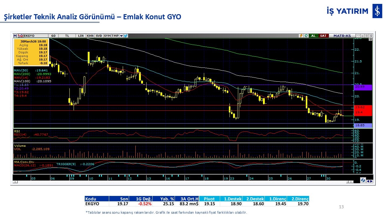 Teknik analiz görünümü olan şirketler: GARAN, THYAO, ISCTR, AKBNK, YKBNK, VAKBN, HALKB, EKGYO, TCELL, ENKAI, KCHOL, MAVI, ARCLK, ALARK, SAHOL, AGHOL, SOKM, MPARK.