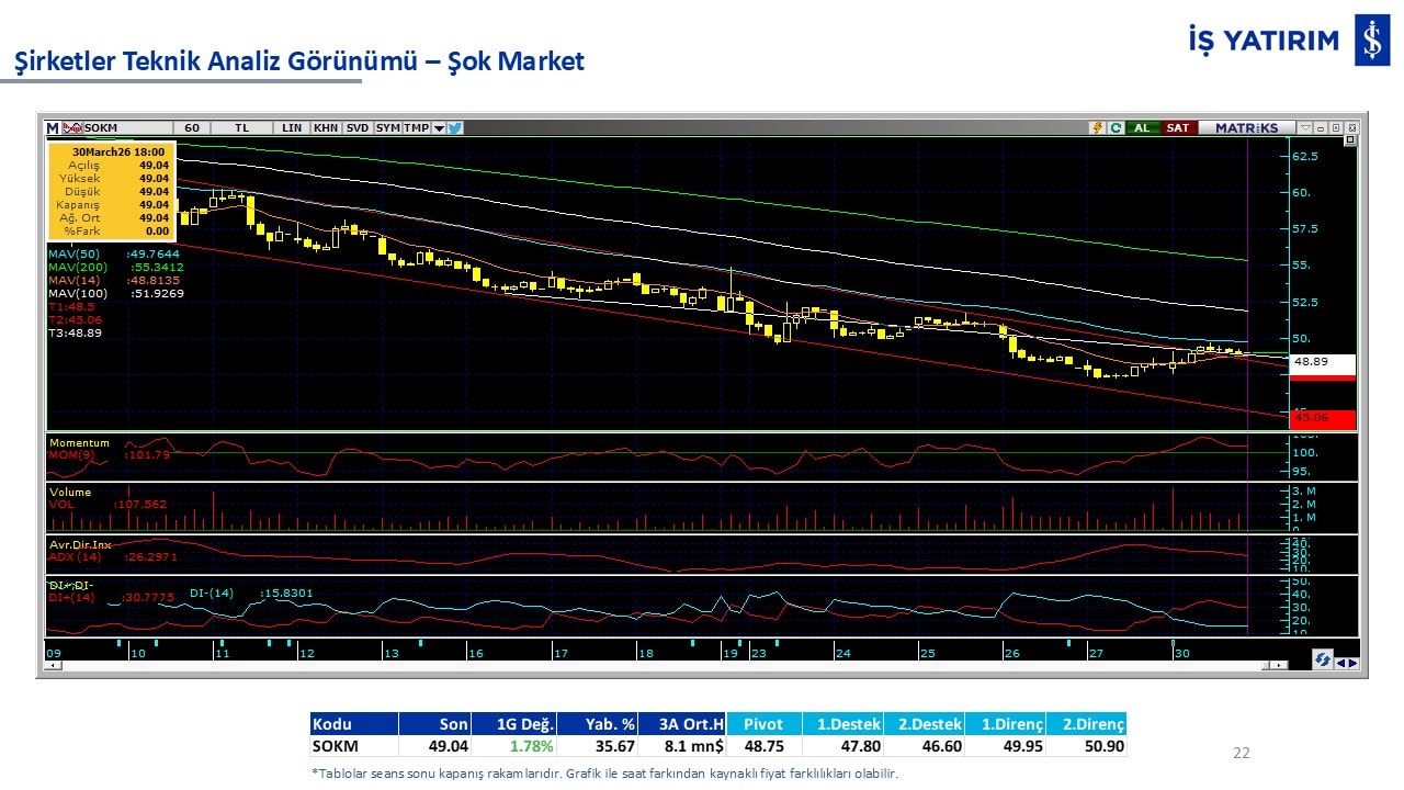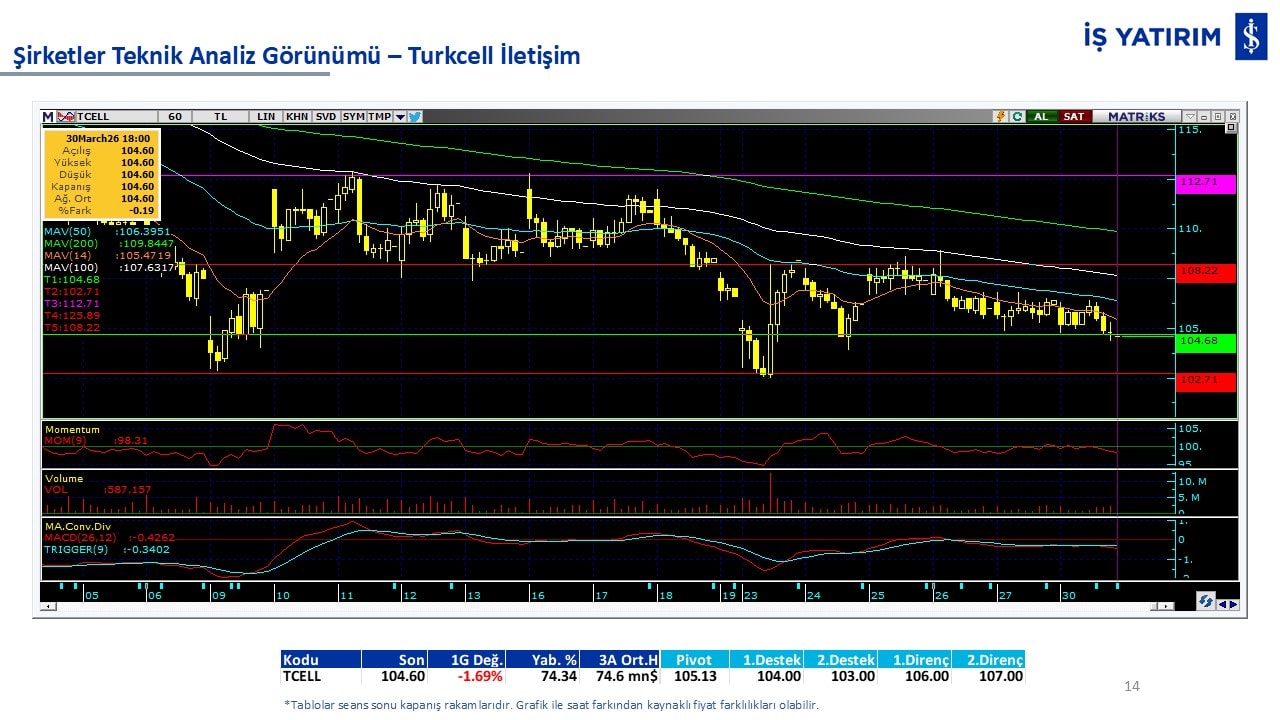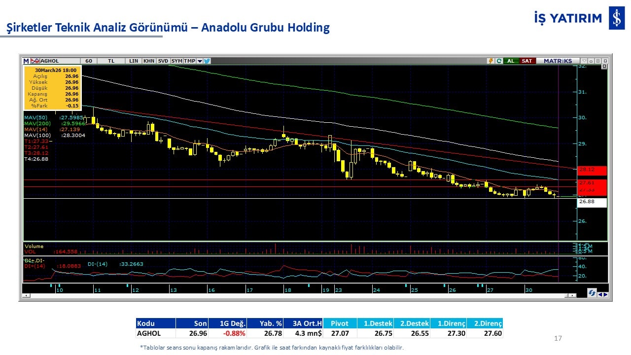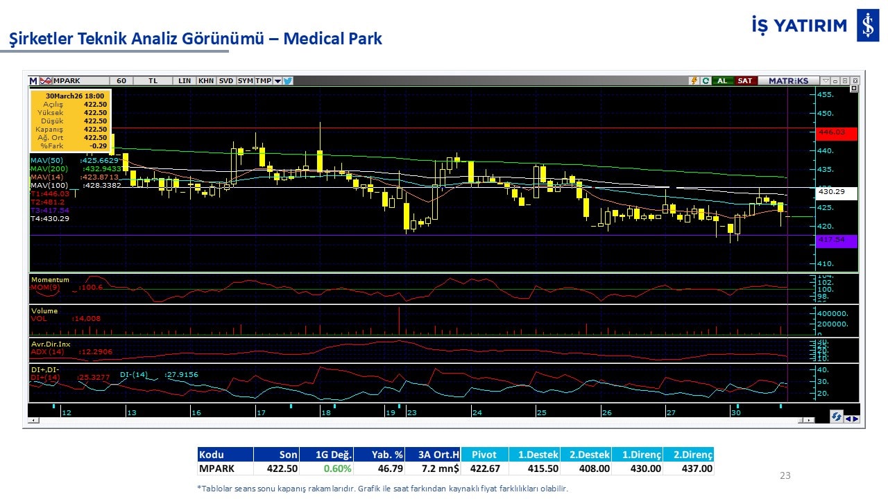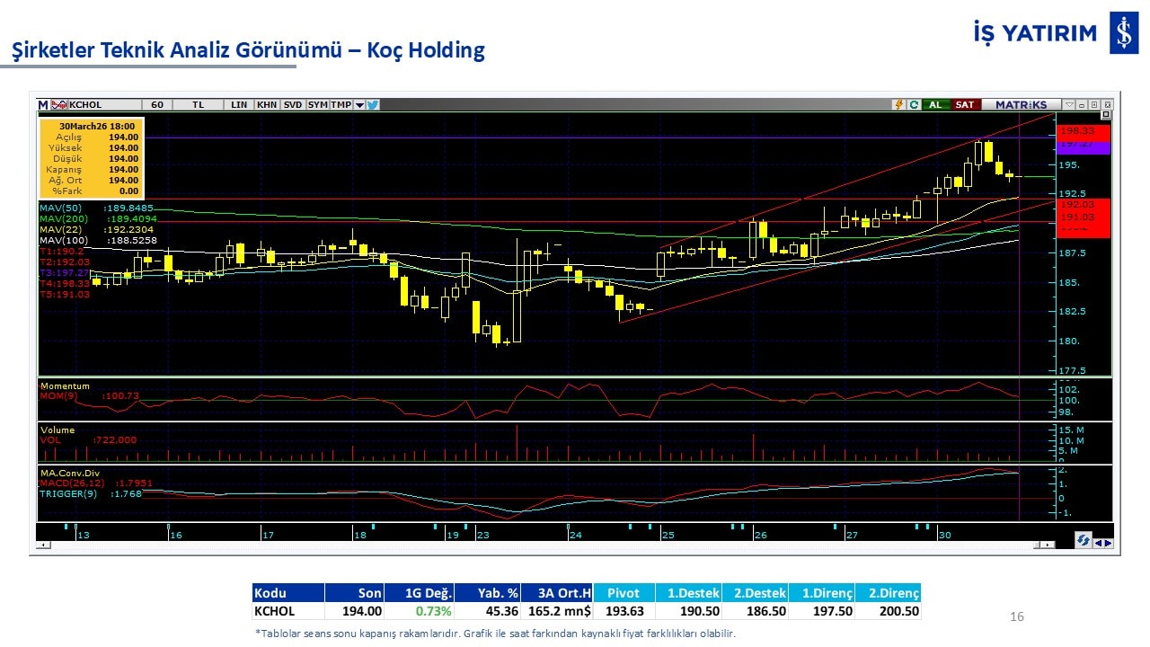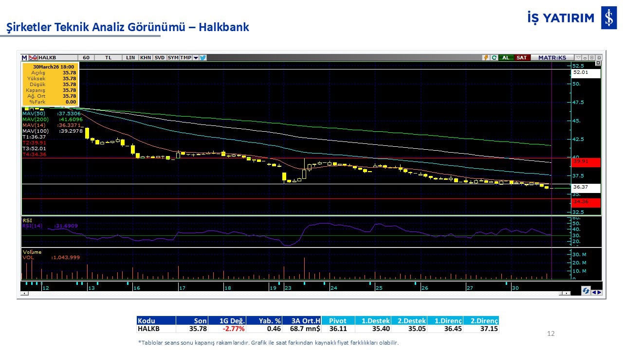 Teknik analiz görünümü olan şirketler: GARAN, THYAO, ISCTR, AKBNK, YKBNK, VAKBN, HALKB, EKGYO, TCELL, ENKAI, KCHOL, MAVI, ARCLK, ALARK, SAHOL, AGHOL, SOKM, MPARK.