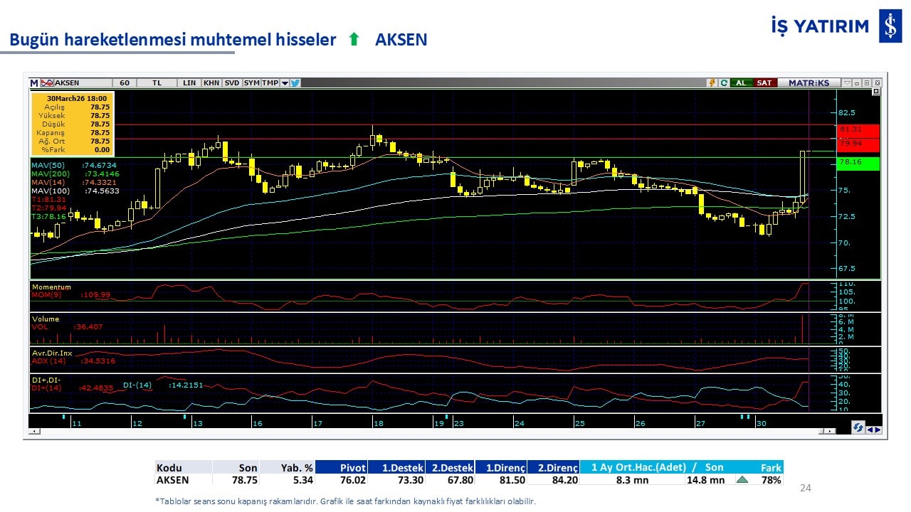 Bugün hareketlenmesi muhtemel hisseler: AKSEN-MOGAN