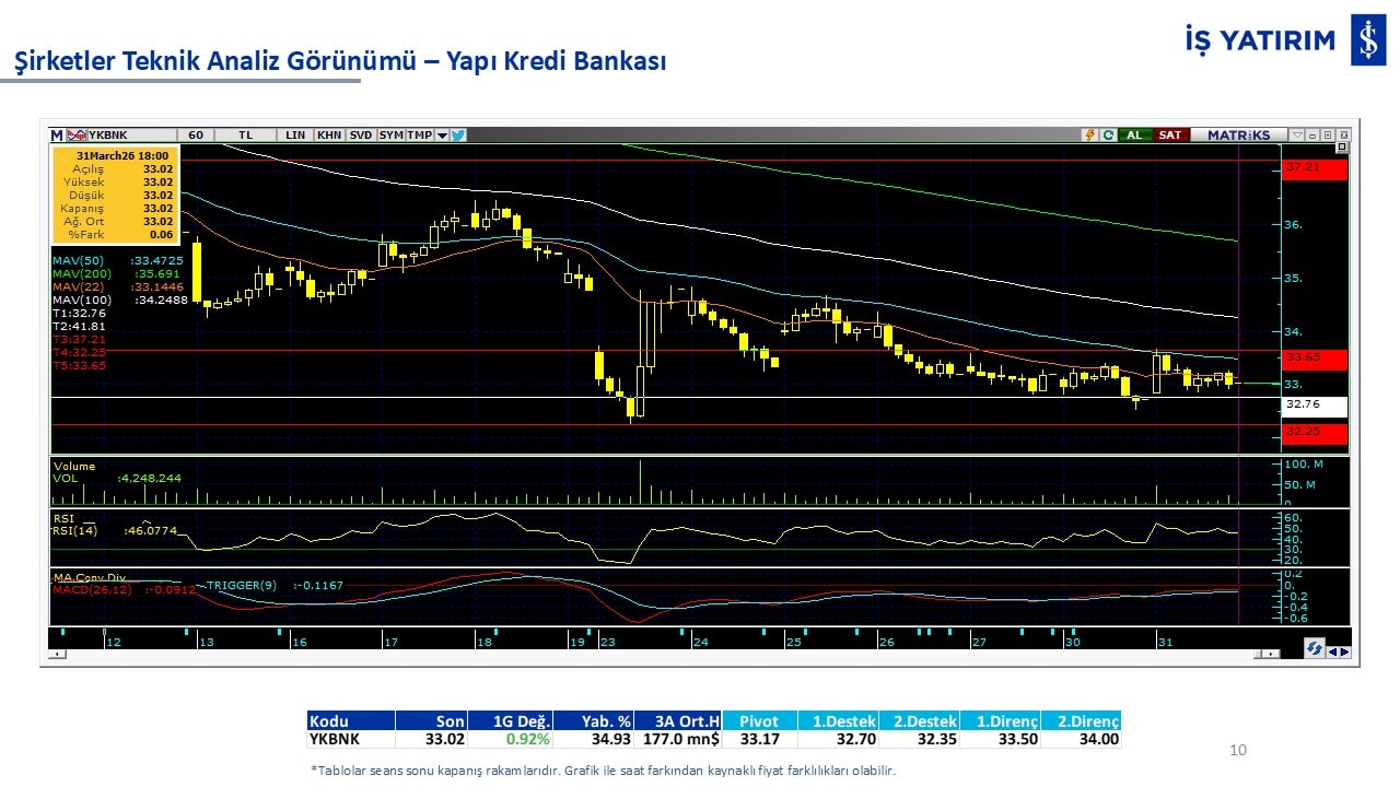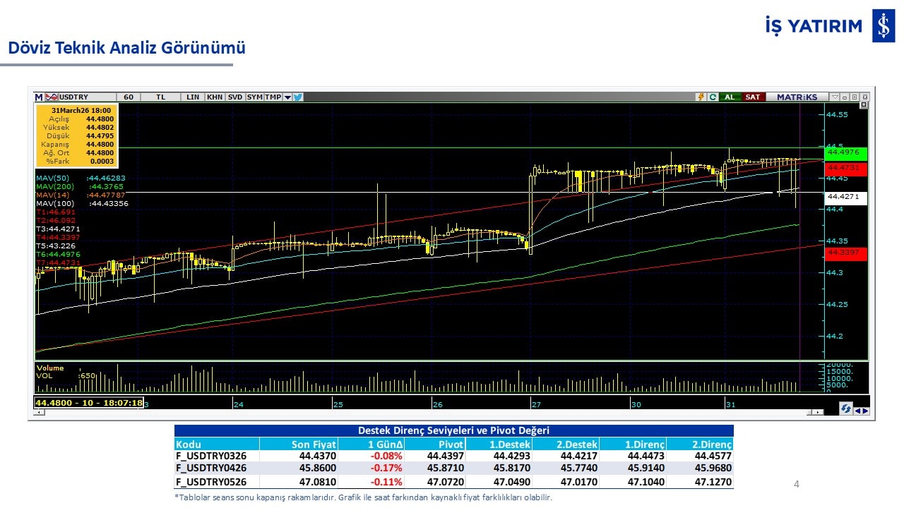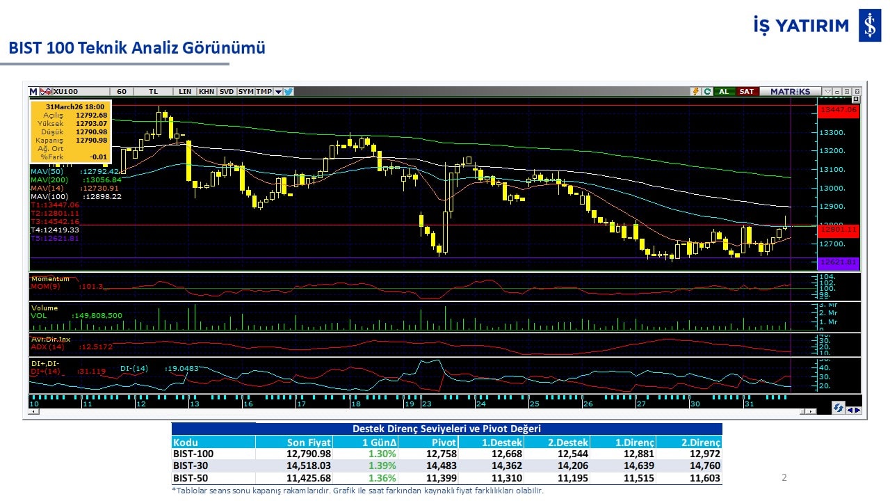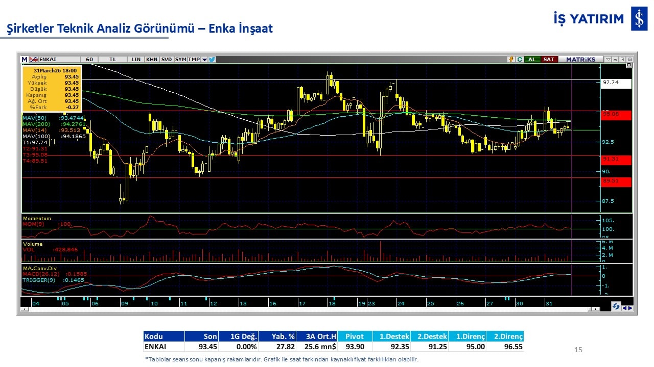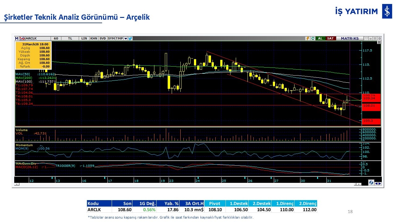 “Teknik Bülten” raporumuzun içeriğinde; Vadeli endeks, kur, BIST100 endeksi, temel analiz tarafında da öneri verdiğimiz 18 adet hissenin teknik destek/direnç seviyeleri ve buna baz teşkil eden teknik grafikleri, bugün piyasadan pozitif ayrışma ihtimali olan hisseler ve bunların teknik destek/direnç seviyeleri, piyasa rakamları, dün çok açığa satış yapılan hisse senetleri ve kısa vadeli işlem önerilerimizden son 10 tanesi yer almaktadır.