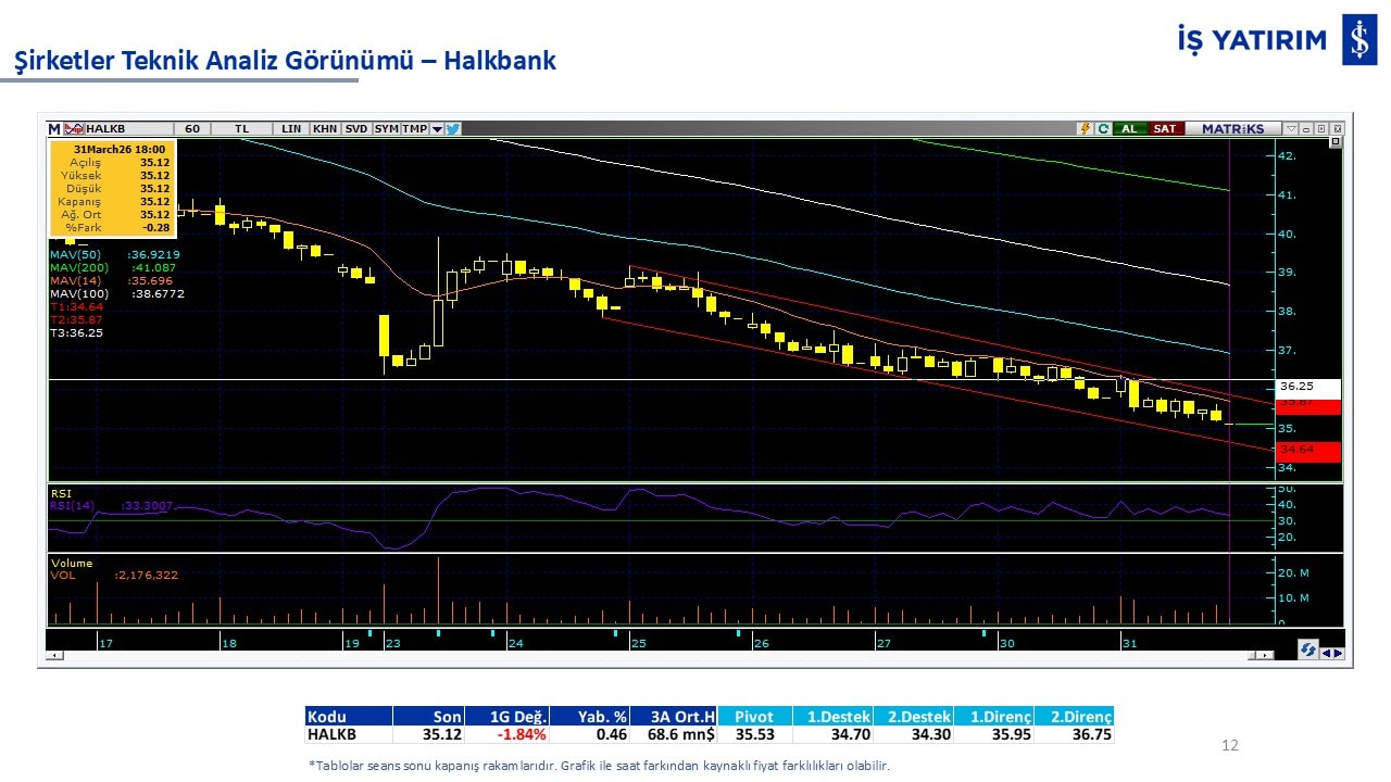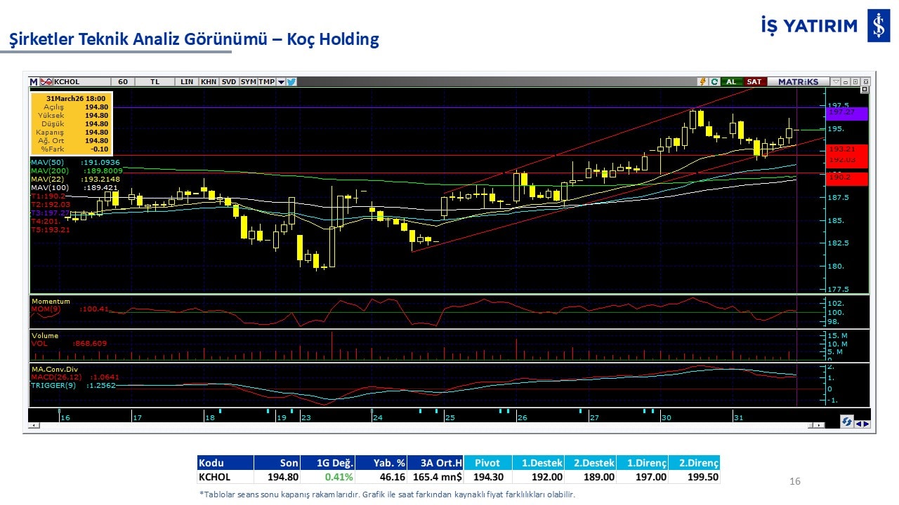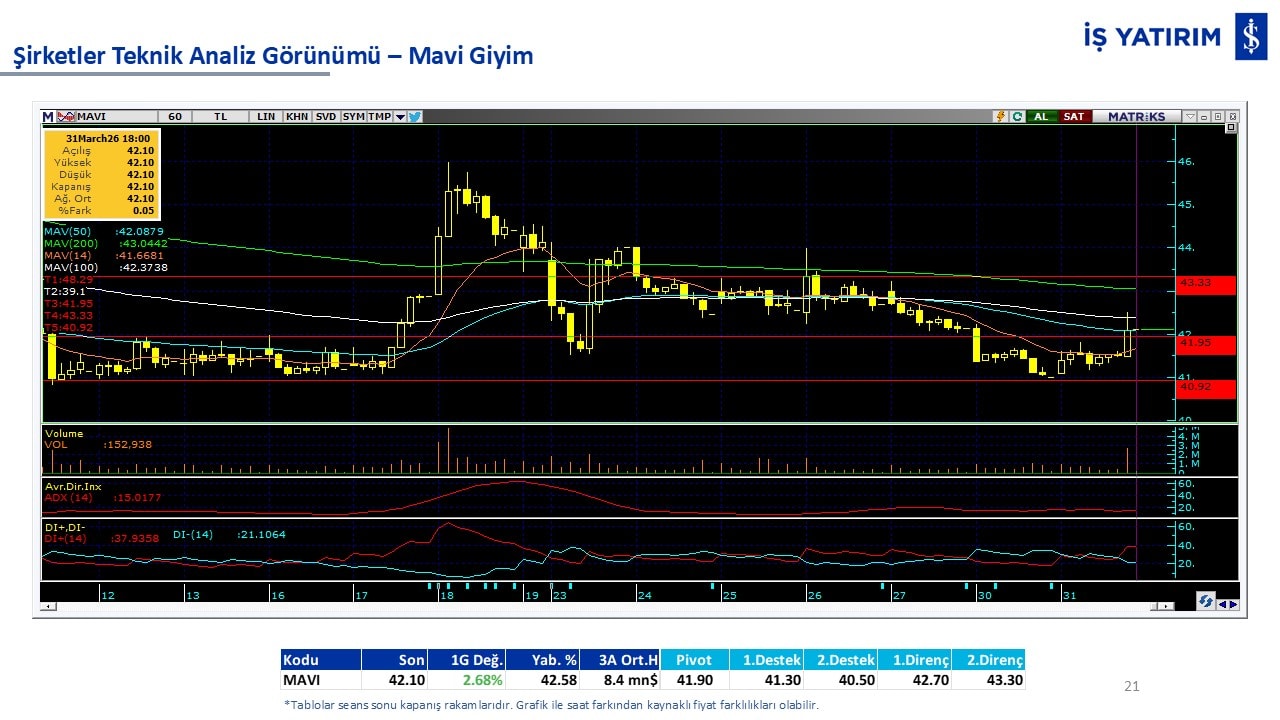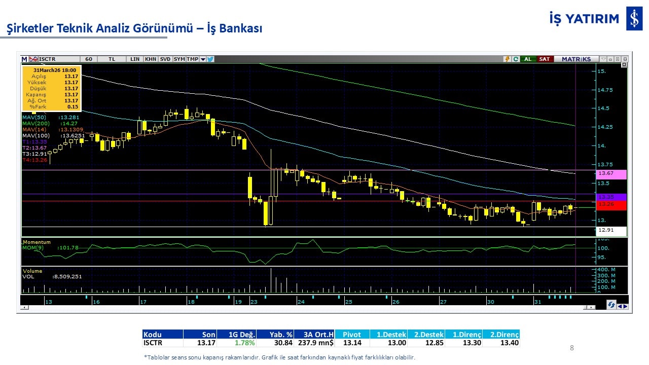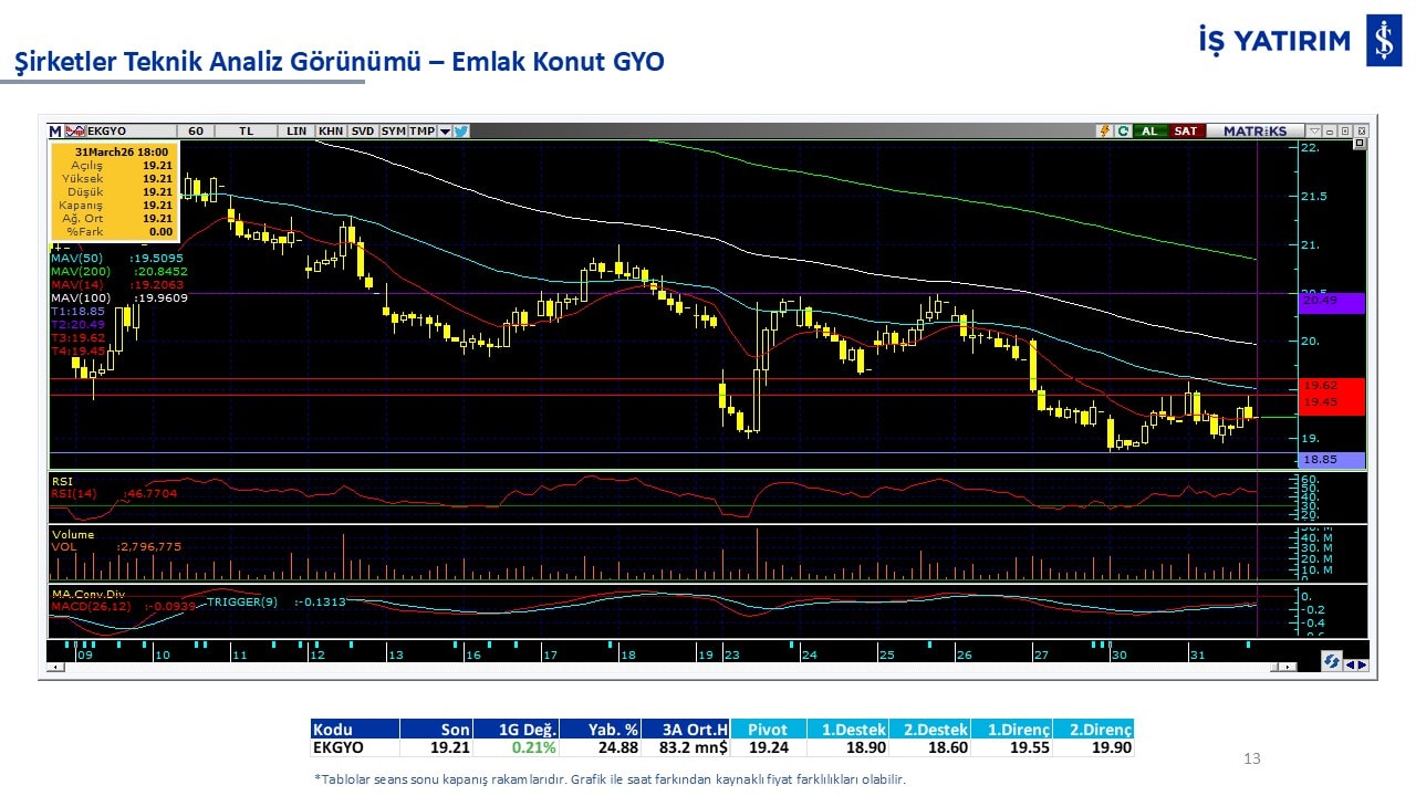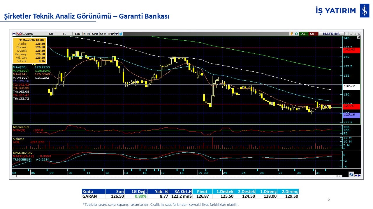 Teknik analiz görünümü olan şirketler: GARAN, THYAO, ISCTR, AKBNK, YKBNK, VAKBN, HALKB, EKGYO, TCELL, ENKAI, KCHOL, MAVI, ARCLK, ALARK, SAHOL, AGHOL, SOKM, MPARK.