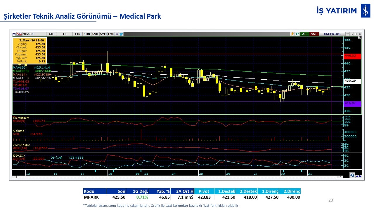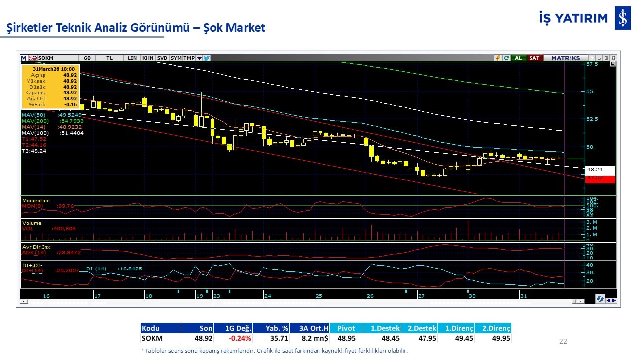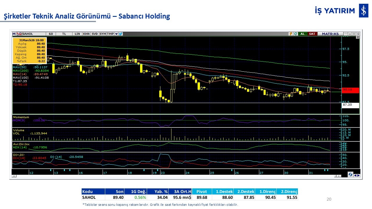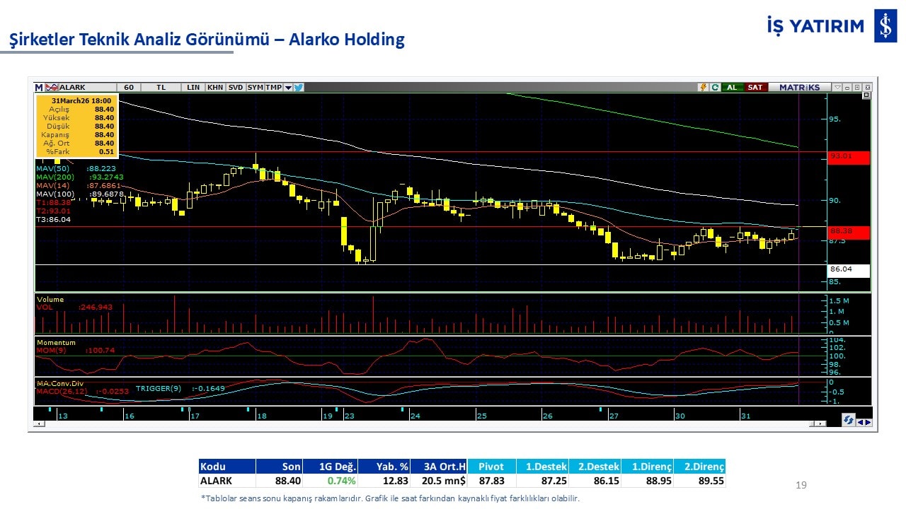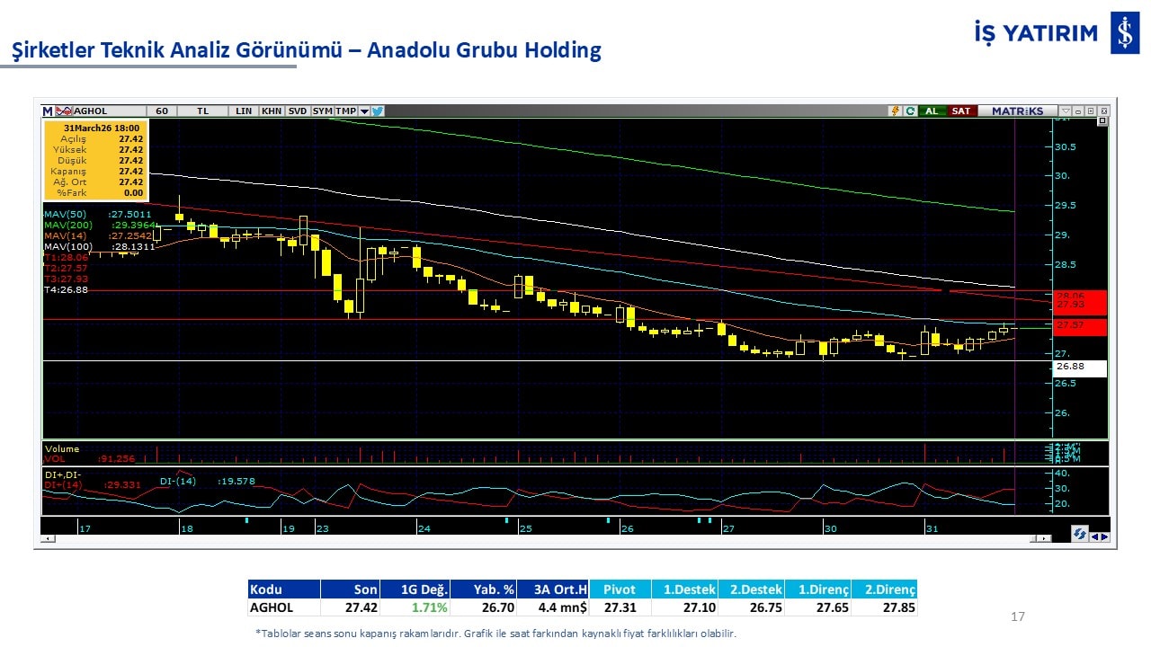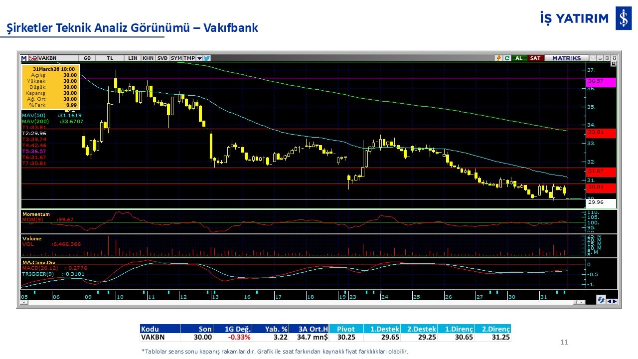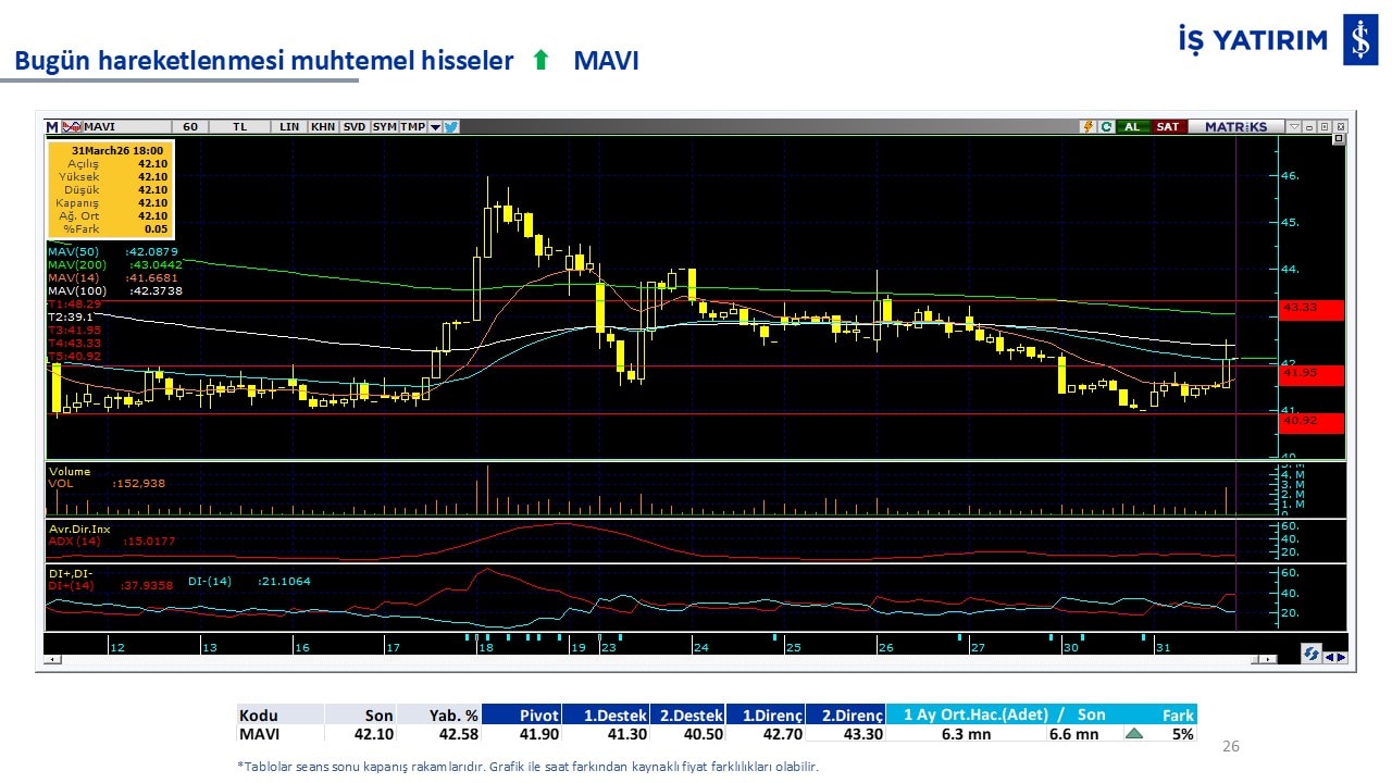 Teknik analiz görünümü olan şirketler: GARAN, THYAO, ISCTR, AKBNK, YKBNK, VAKBN, HALKB, EKGYO, TCELL, ENKAI, KCHOL, MAVI, ARCLK, ALARK, SAHOL, AGHOL, SOKM, MPARK.