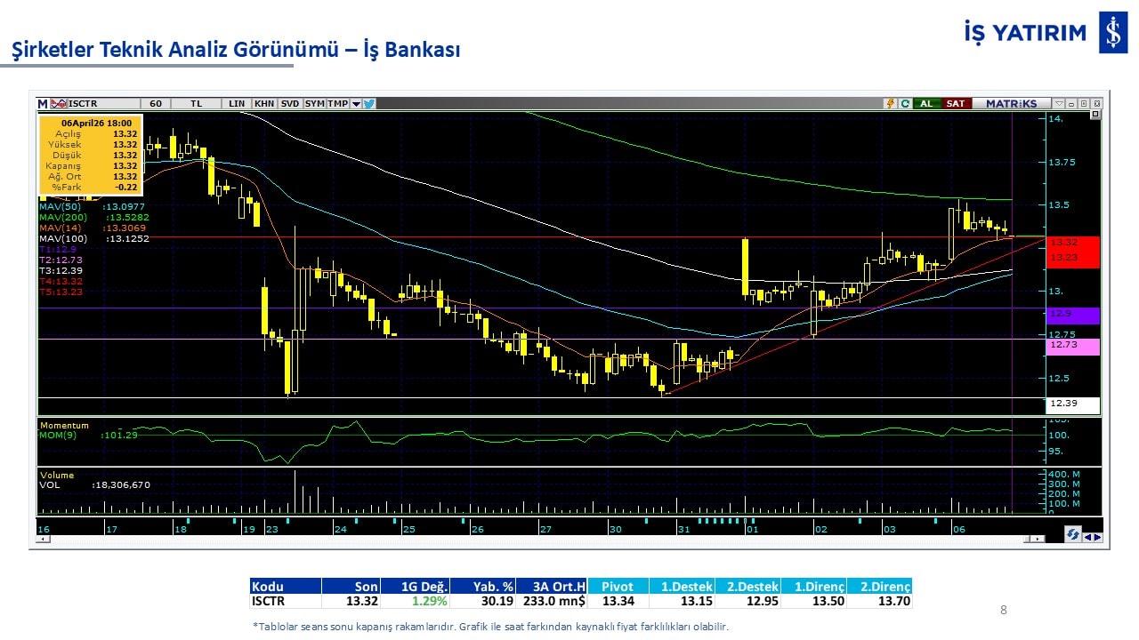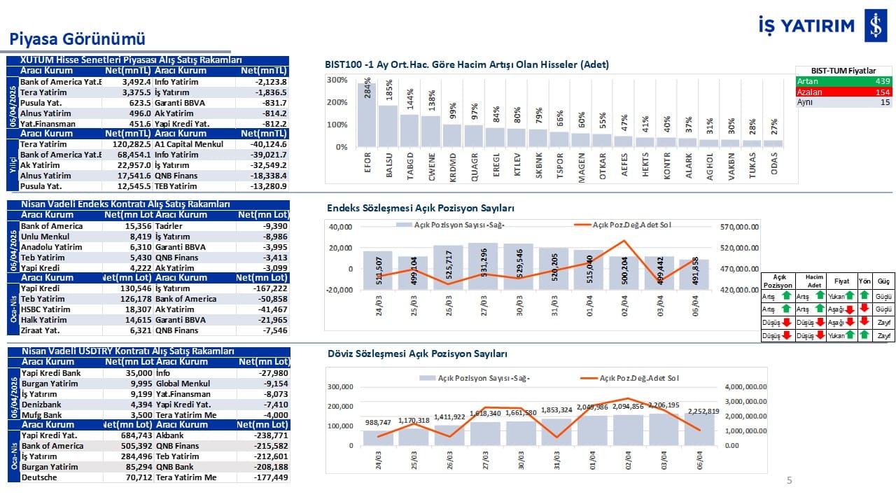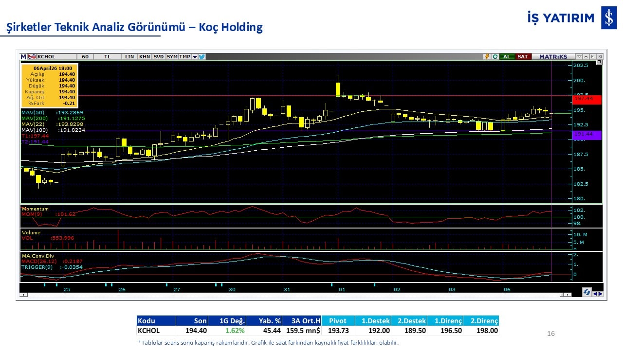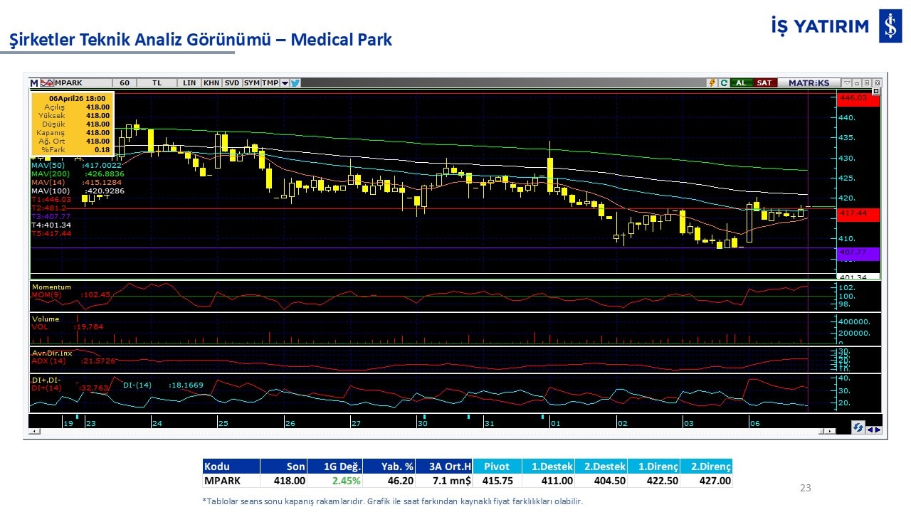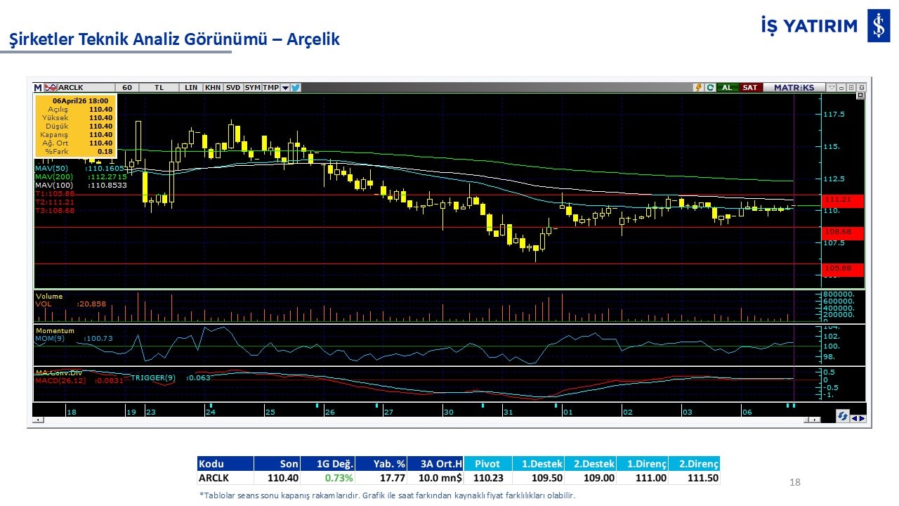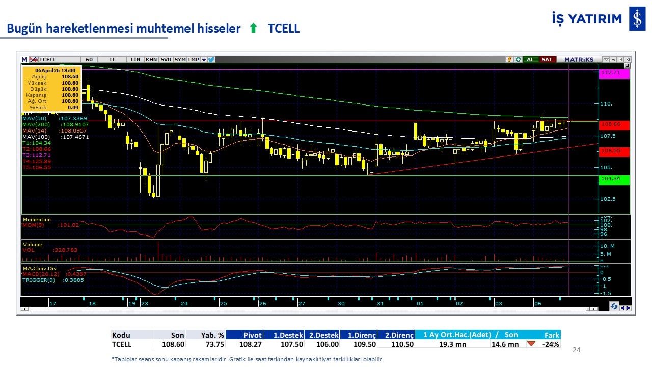 “Teknik Bülten” raporumuzun içeriğinde; Vadeli endeks, kur, BIST100 endeksi, temel analiz tarafında da öneri verdiğimiz 18 adet hissenin teknik destek/direnç seviyeleri ve buna baz teşkil eden teknik grafikleri, bugün piyasadan pozitif ayrışma ihtimali olan hisseler ve bunların teknik destek/direnç seviyeleri, piyasa rakamları, dün çok açığa satış yapılan hisse senetleri ve kısa vadeli işlem önerilerimizden son 10 tanesi yer almaktadır.