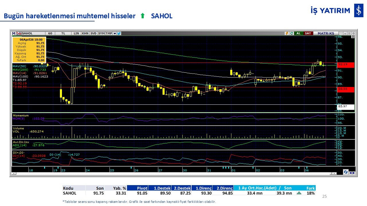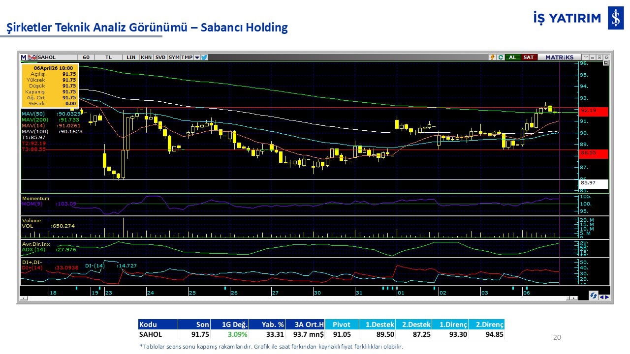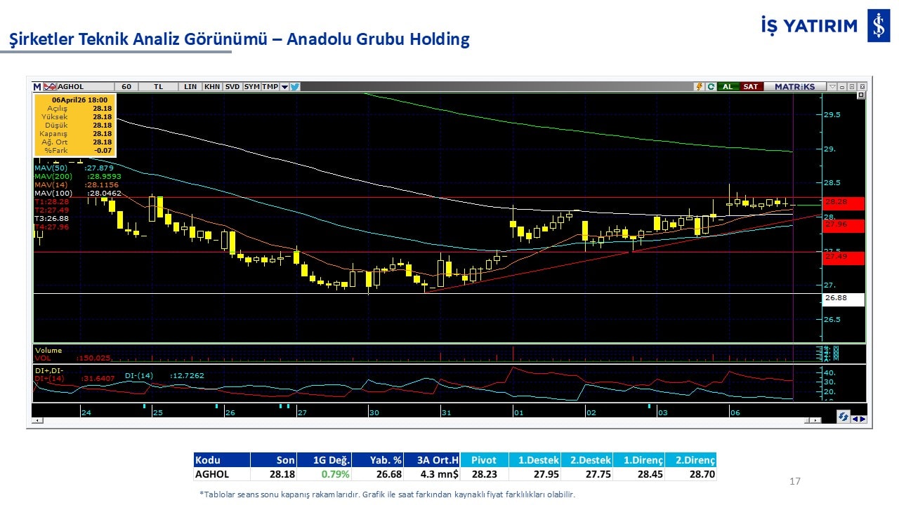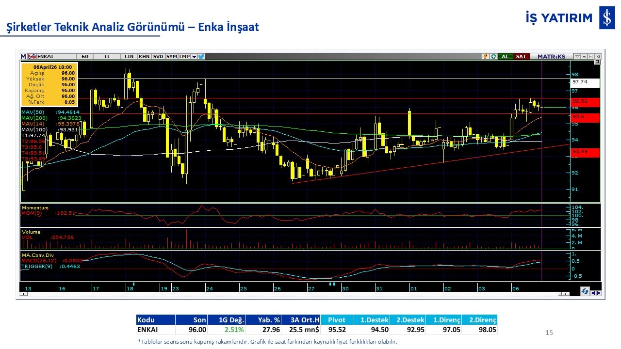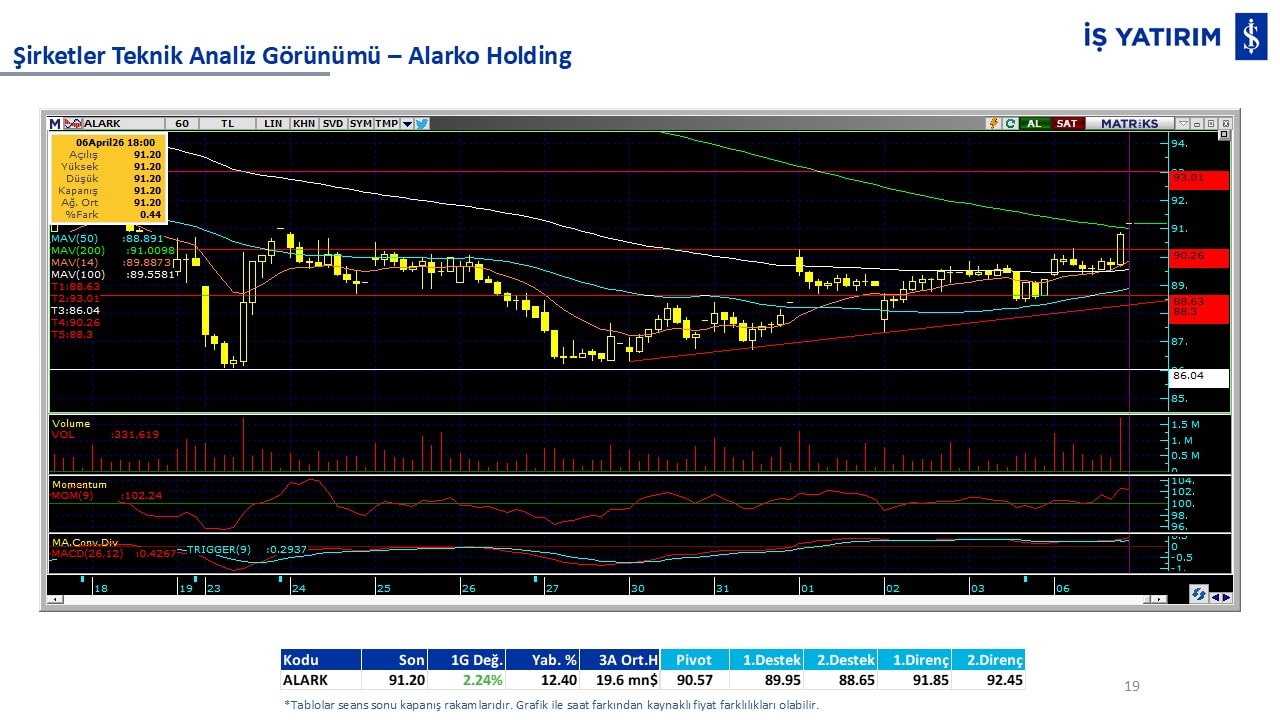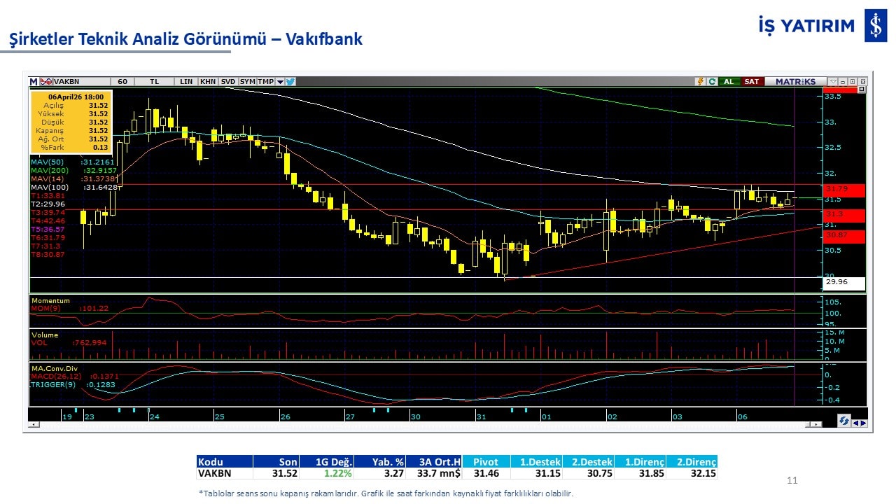 “Teknik Bülten” raporumuzun içeriğinde; Vadeli endeks, kur, BIST100 endeksi, temel analiz tarafında da öneri verdiğimiz 18 adet hissenin teknik destek/direnç seviyeleri ve buna baz teşkil eden teknik grafikleri, bugün piyasadan pozitif ayrışma ihtimali olan hisseler ve bunların teknik destek/direnç seviyeleri, piyasa rakamları, dün çok açığa satış yapılan hisse senetleri ve kısa vadeli işlem önerilerimizden son 10 tanesi yer almaktadır.
