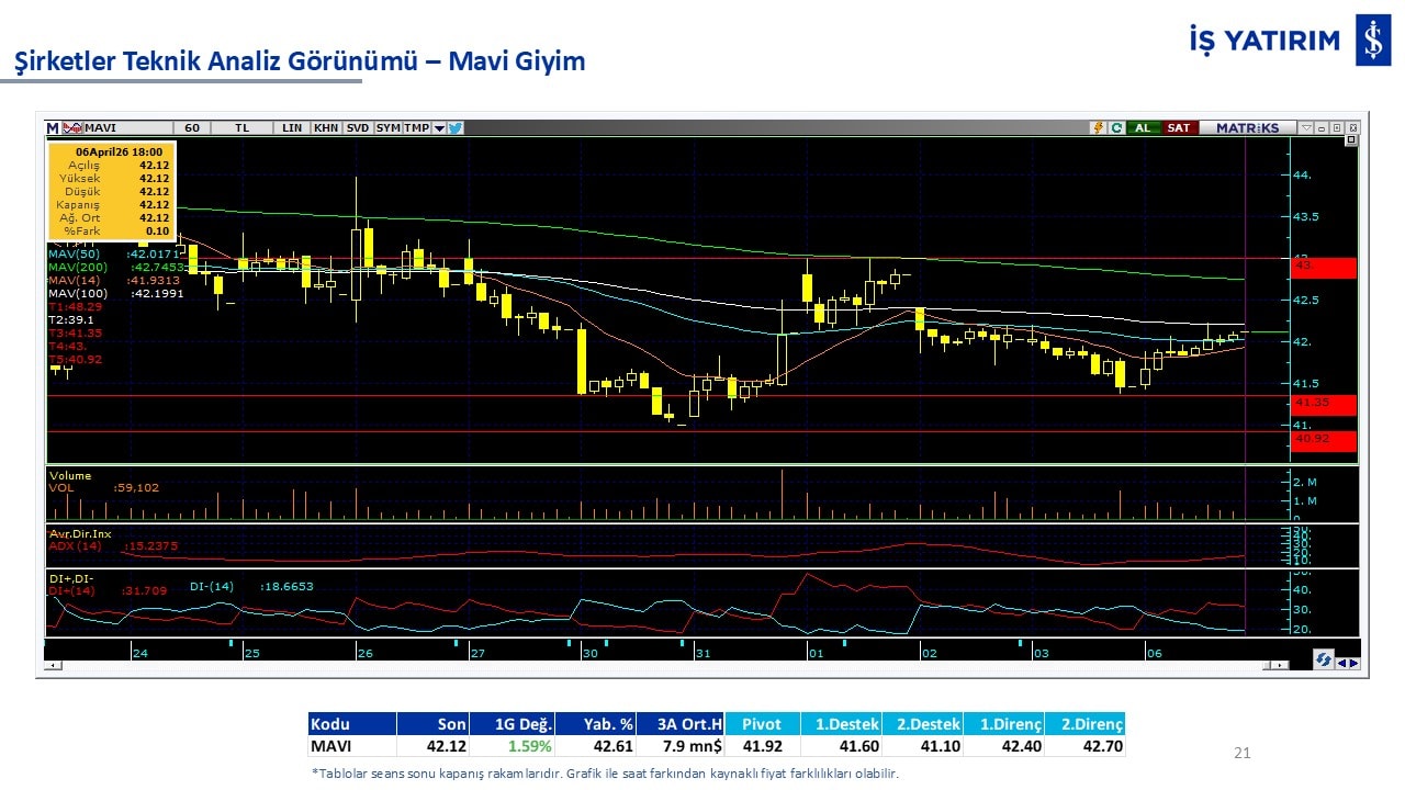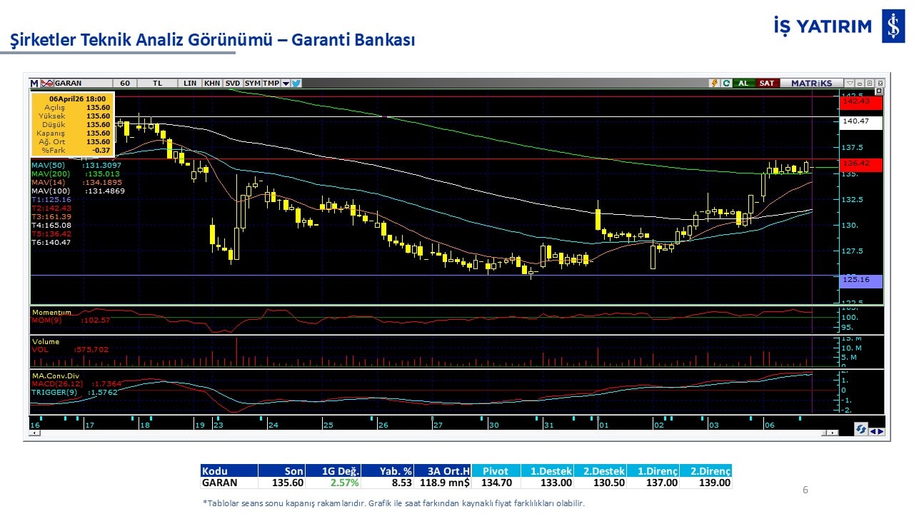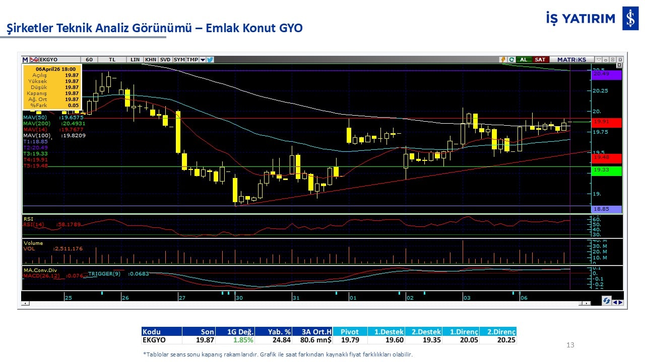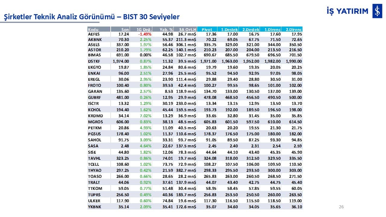 Teknik analiz görünümü olan şirketler: GARAN, THYAO, ISCTR, AKBNK, YKBNK, VAKBN, HALKB, EKGYO, TCELL, ENKAI, KCHOL, MAVI, ARCLK, ALARK, SAHOL, AGHOL, SOKM, MPARK.