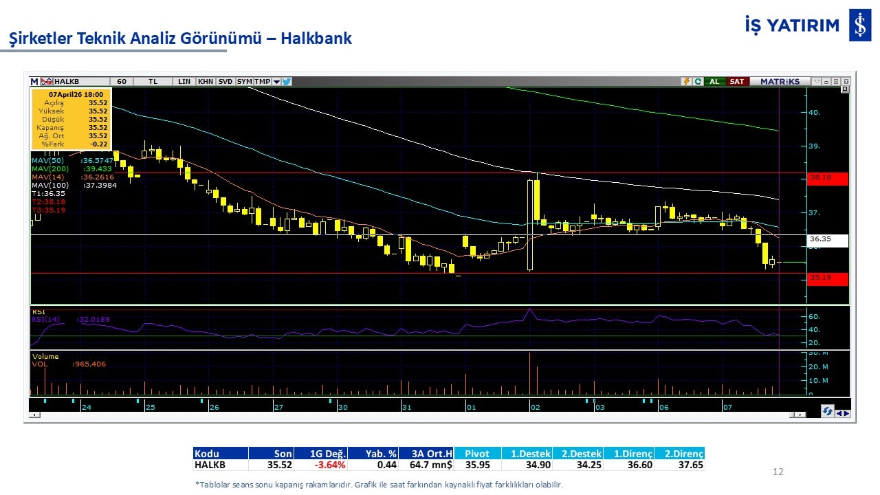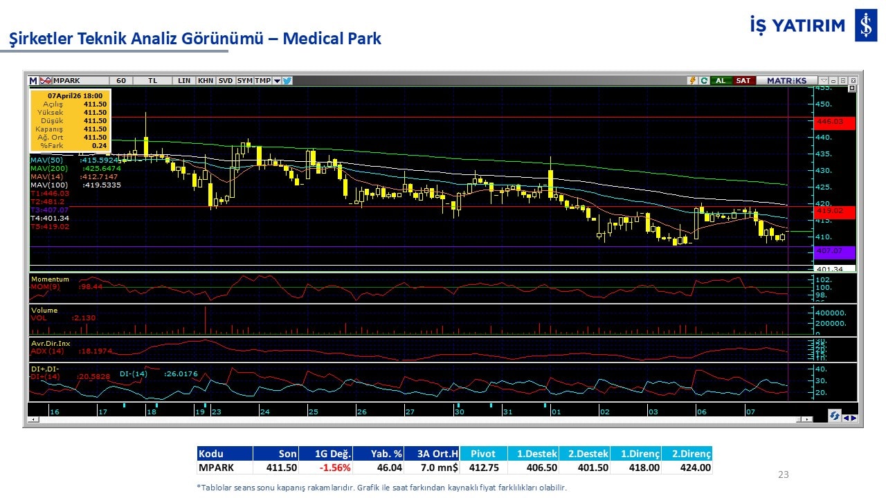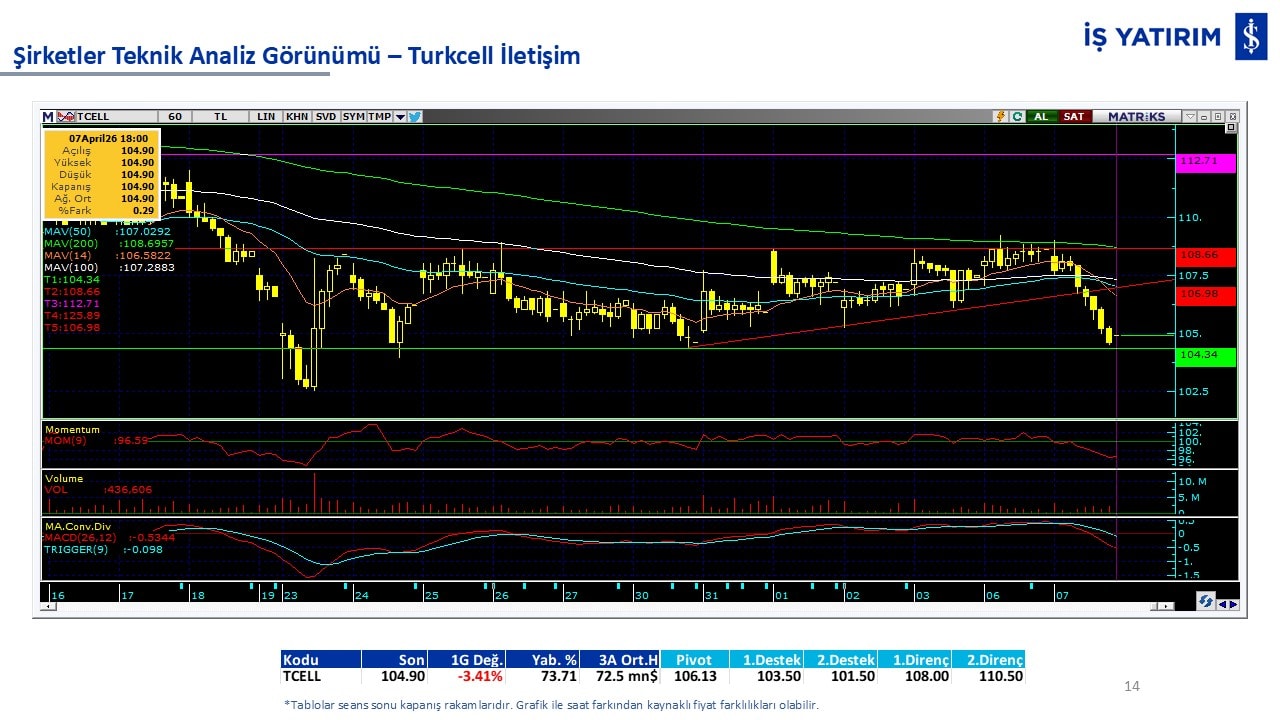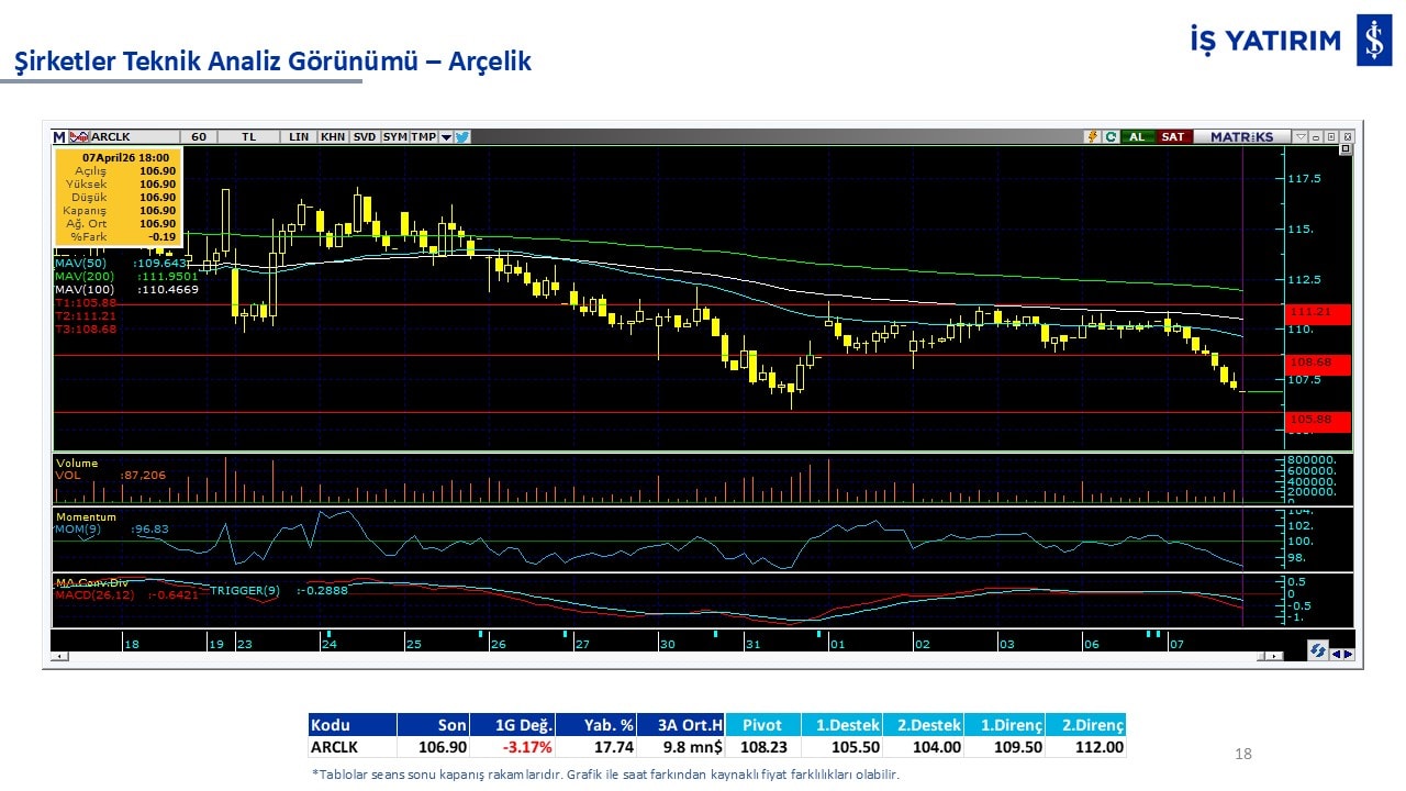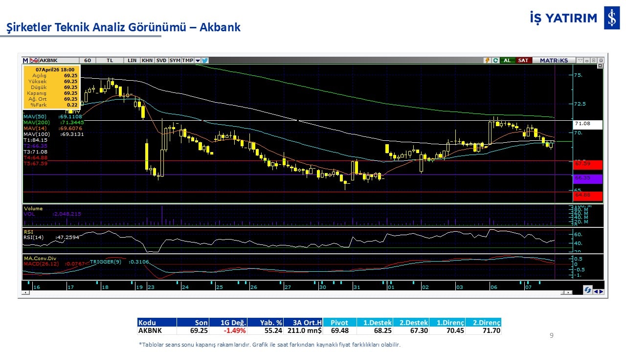 “Teknik Bülten” raporumuzun içeriğinde; Vadeli endeks, kur, BIST100 endeksi, temel analiz tarafında da öneri verdiğimiz 18 adet hissenin teknik destek/direnç seviyeleri ve buna baz teşkil eden teknik grafikleri, bugün piyasadan pozitif ayrışma ihtimali olan hisseler ve bunların teknik destek/direnç seviyeleri, piyasa rakamları, dün çok açığa satış yapılan hisse senetleri ve kısa vadeli işlem önerilerimizden son 10 tanesi yer almaktadır.