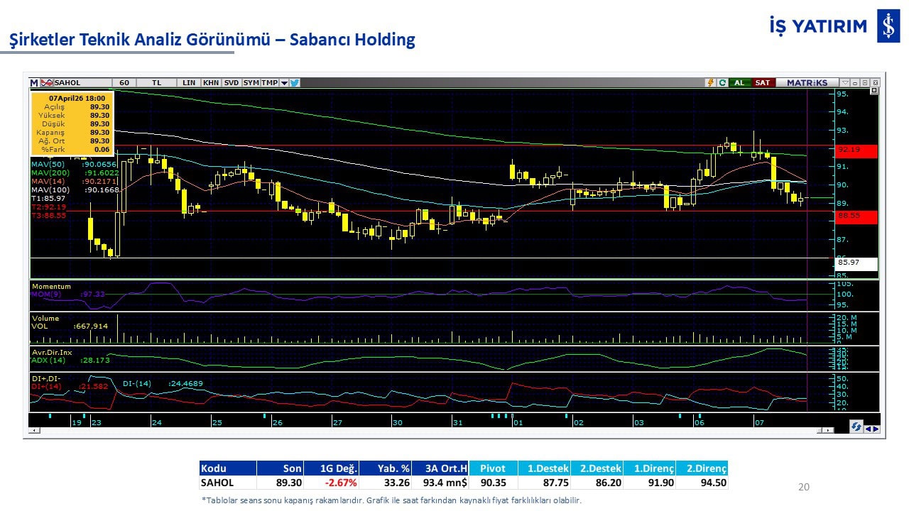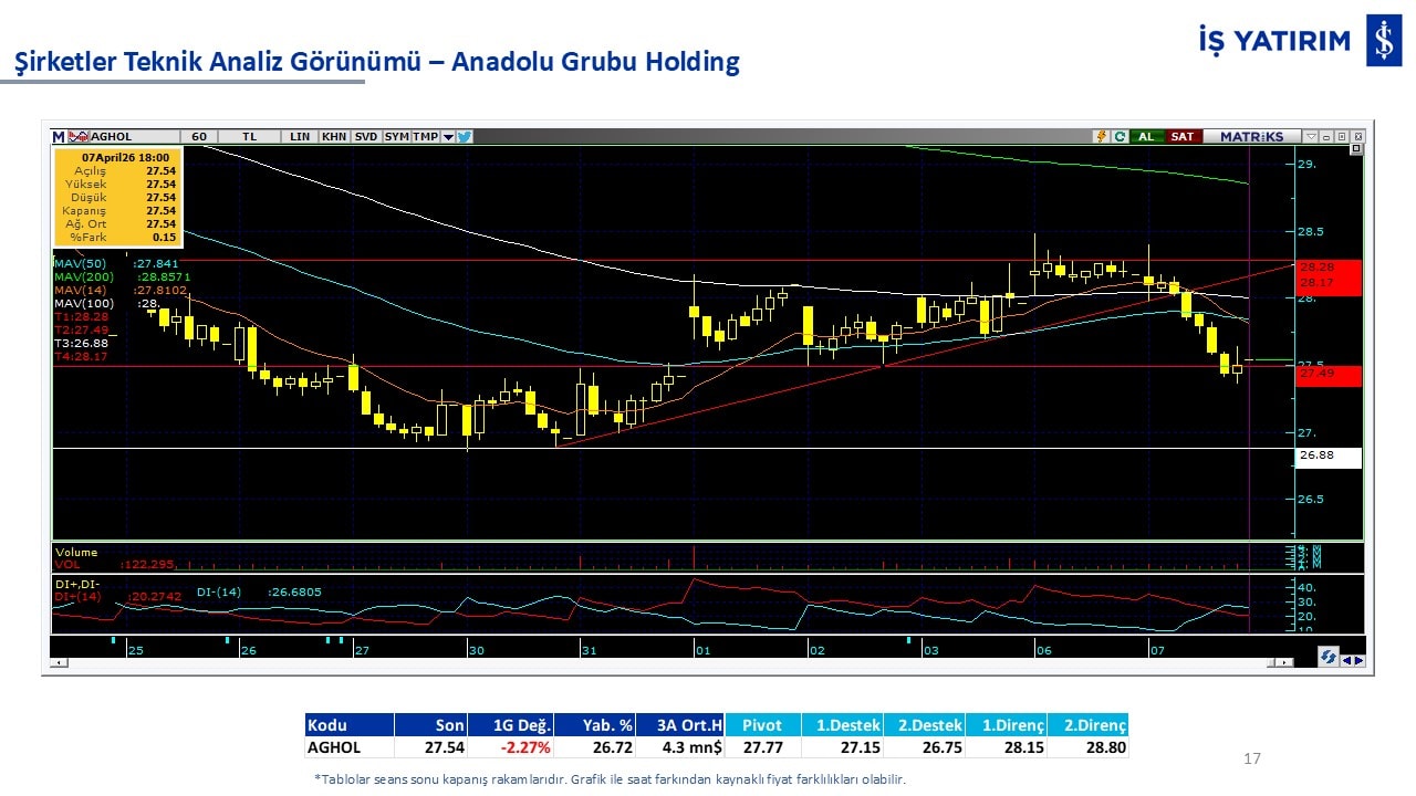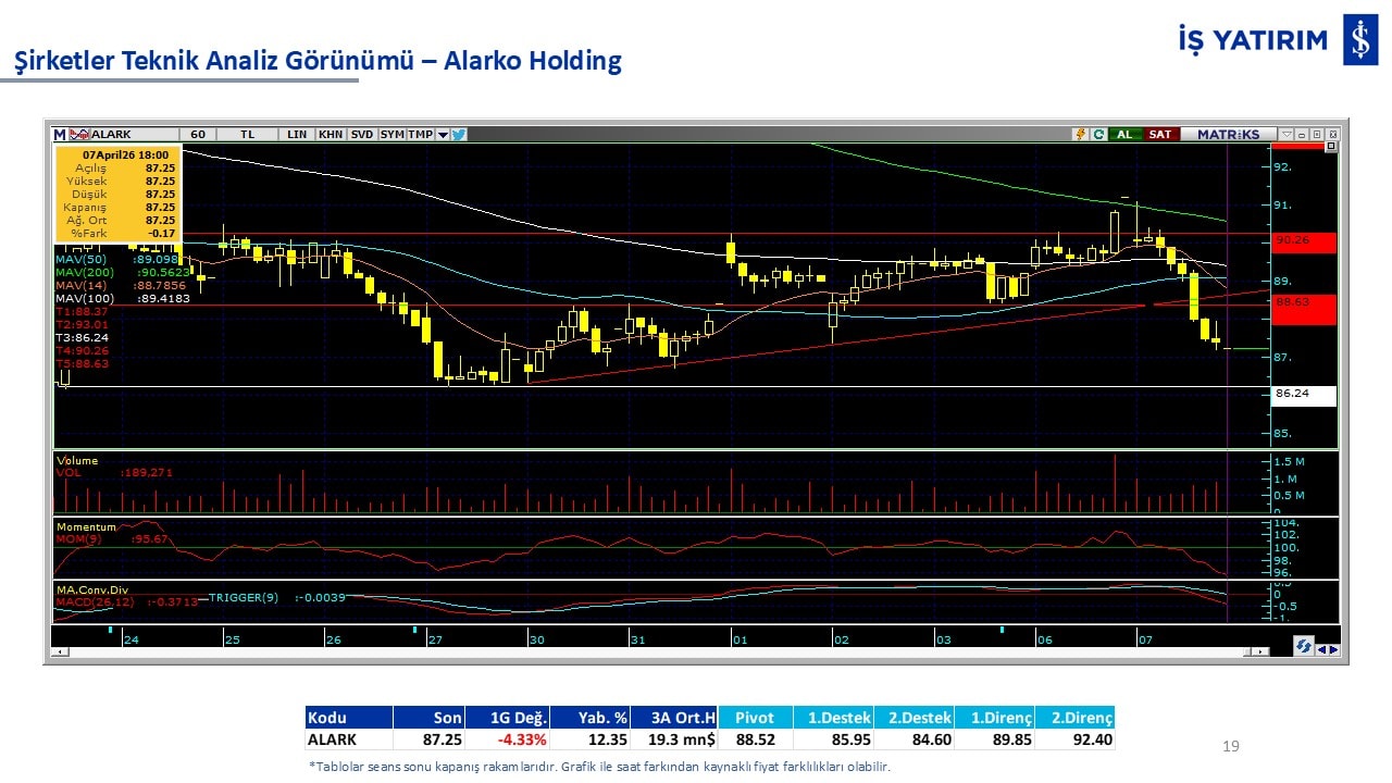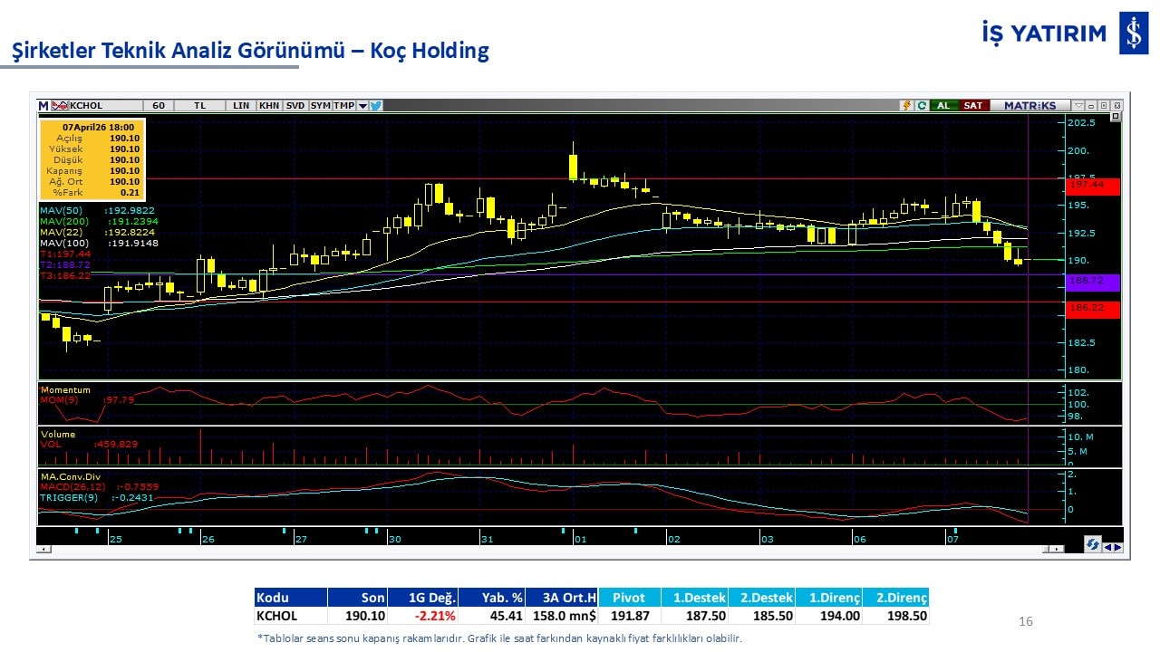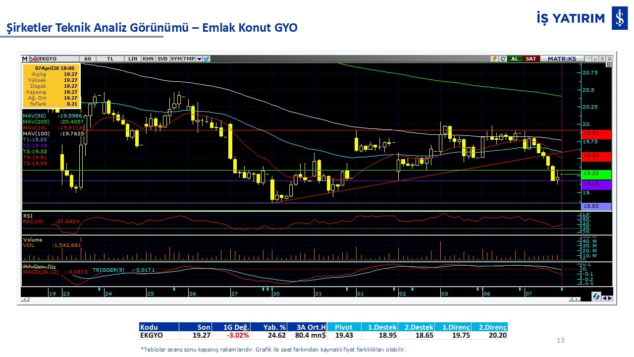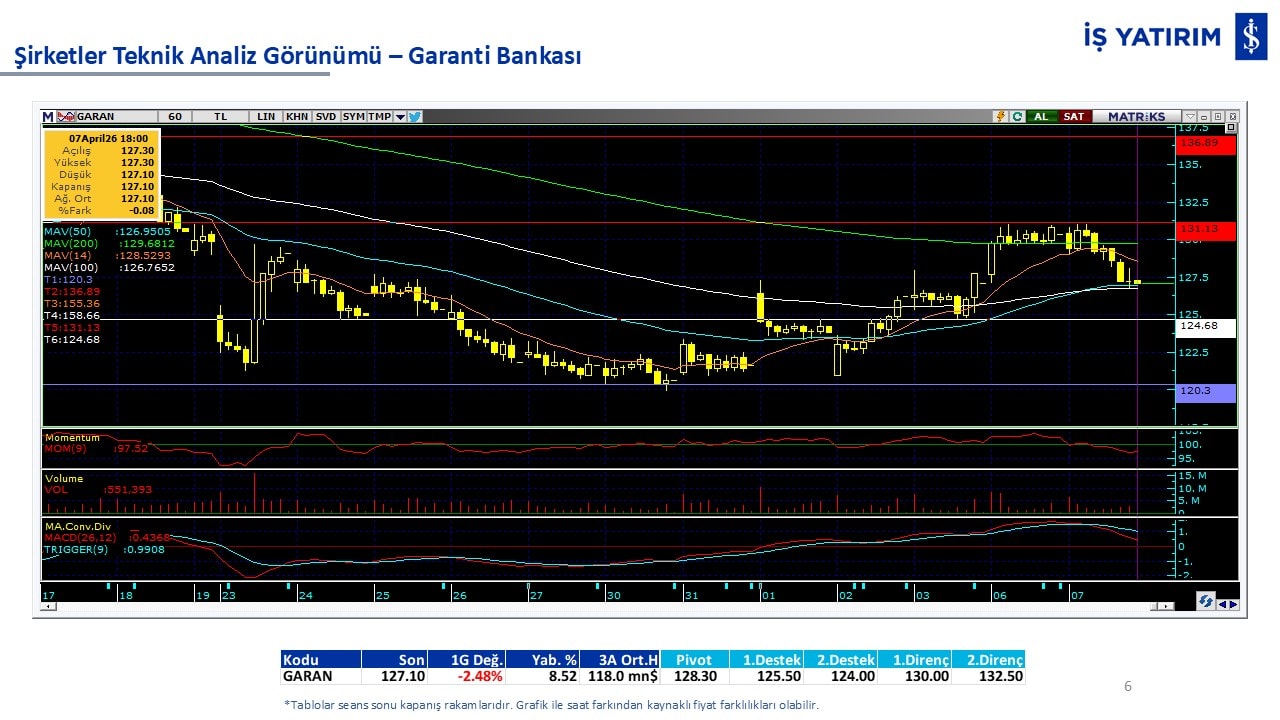 Teknik analiz görünümü olan şirketler: GARAN, THYAO, ISCTR, AKBNK, YKBNK, VAKBN, HALKB, EKGYO, TCELL, ENKAI, KCHOL, MAVI, ARCLK, ALARK, SAHOL, AGHOL, SOKM, MPARK.