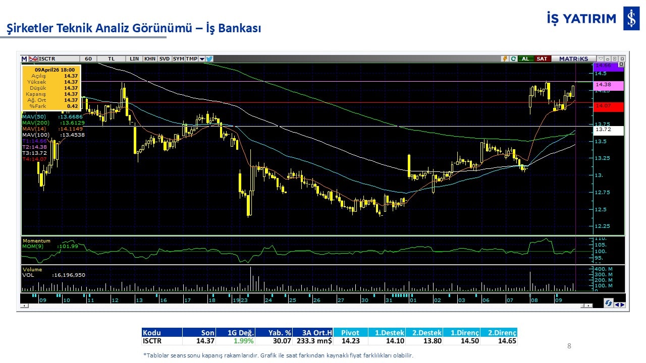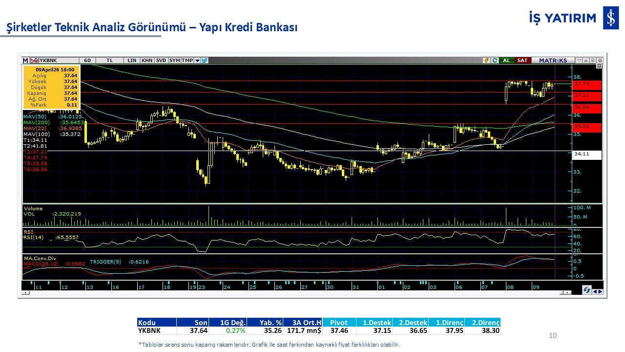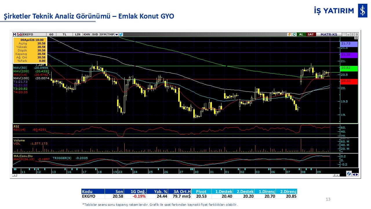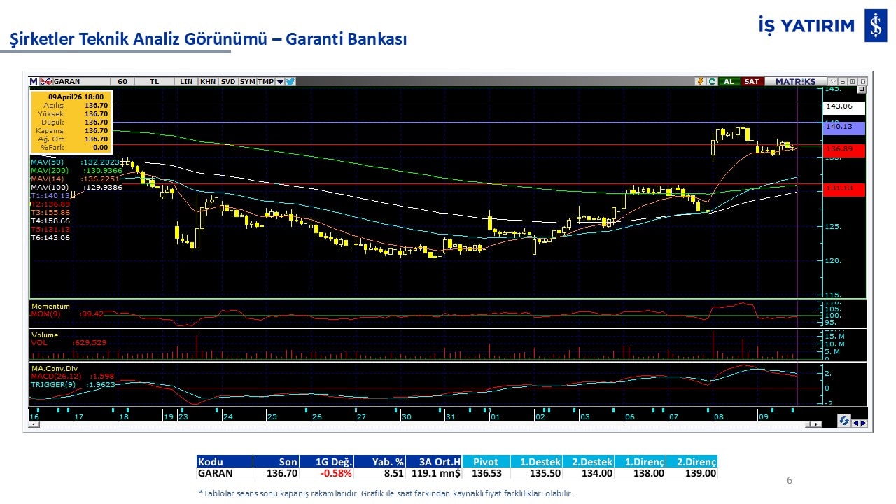Teknik analiz görünümü olan şirketler: GARAN, THYAO, ISCTR, AKBNK, YKBNK, VAKBN, HALKB, EKGYO, TCELL, ENKAI, KCHOL, MAVI, ARCLK, ALARK, SAHOL, AGHOL, SOKM, MPARK.