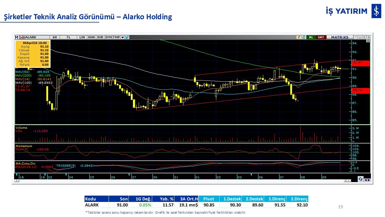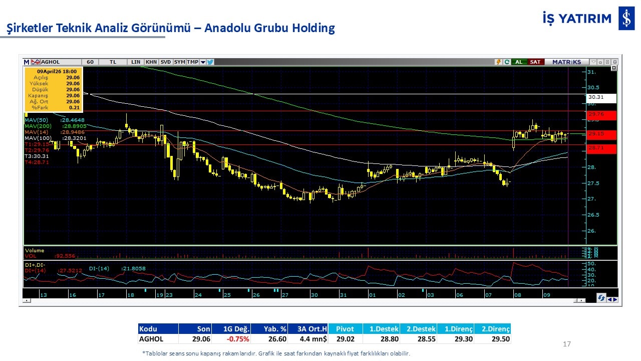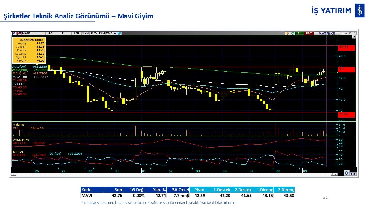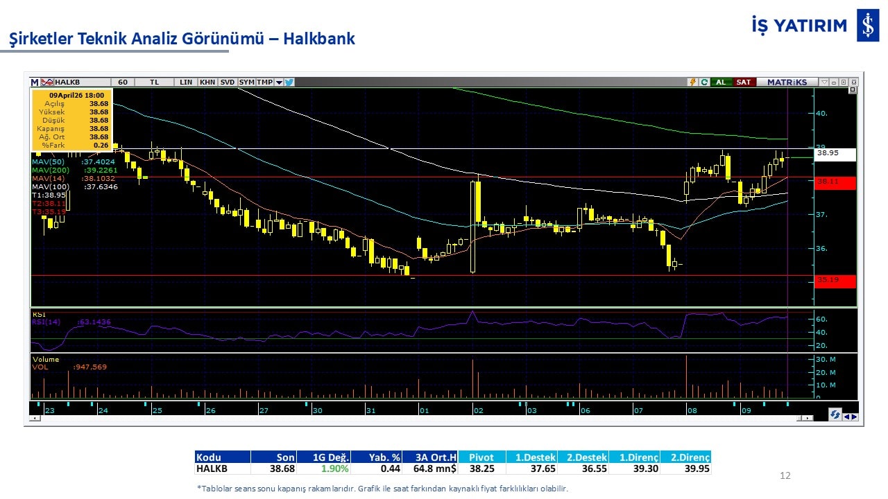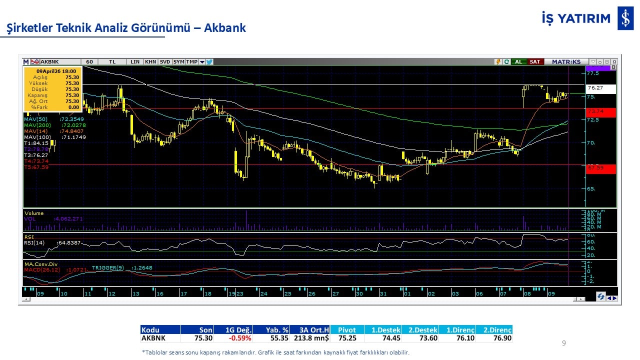 Teknik analiz görünümü olan şirketler: GARAN, THYAO, ISCTR, AKBNK, YKBNK, VAKBN, HALKB, EKGYO, TCELL, ENKAI, KCHOL, MAVI, ARCLK, ALARK, SAHOL, AGHOL, SOKM, MPARK.