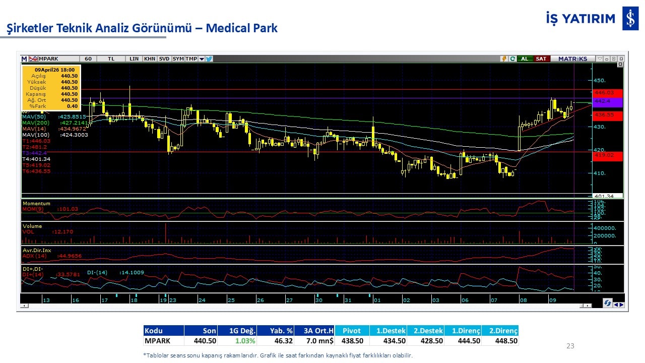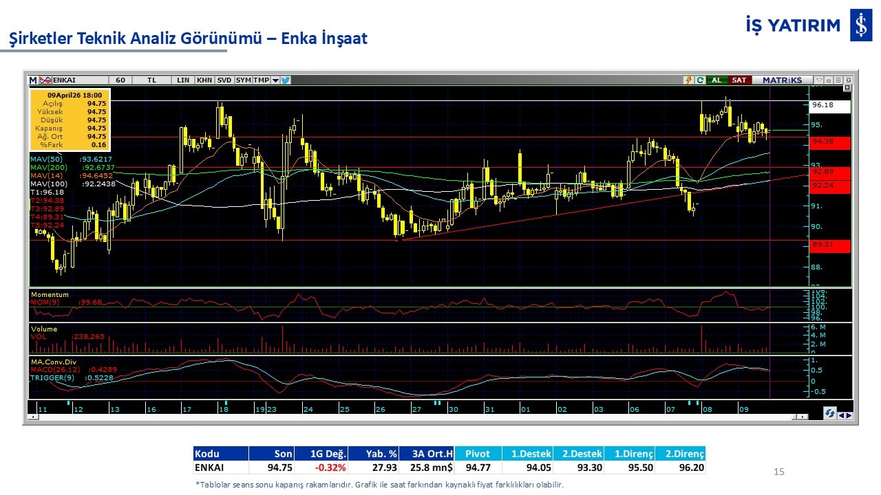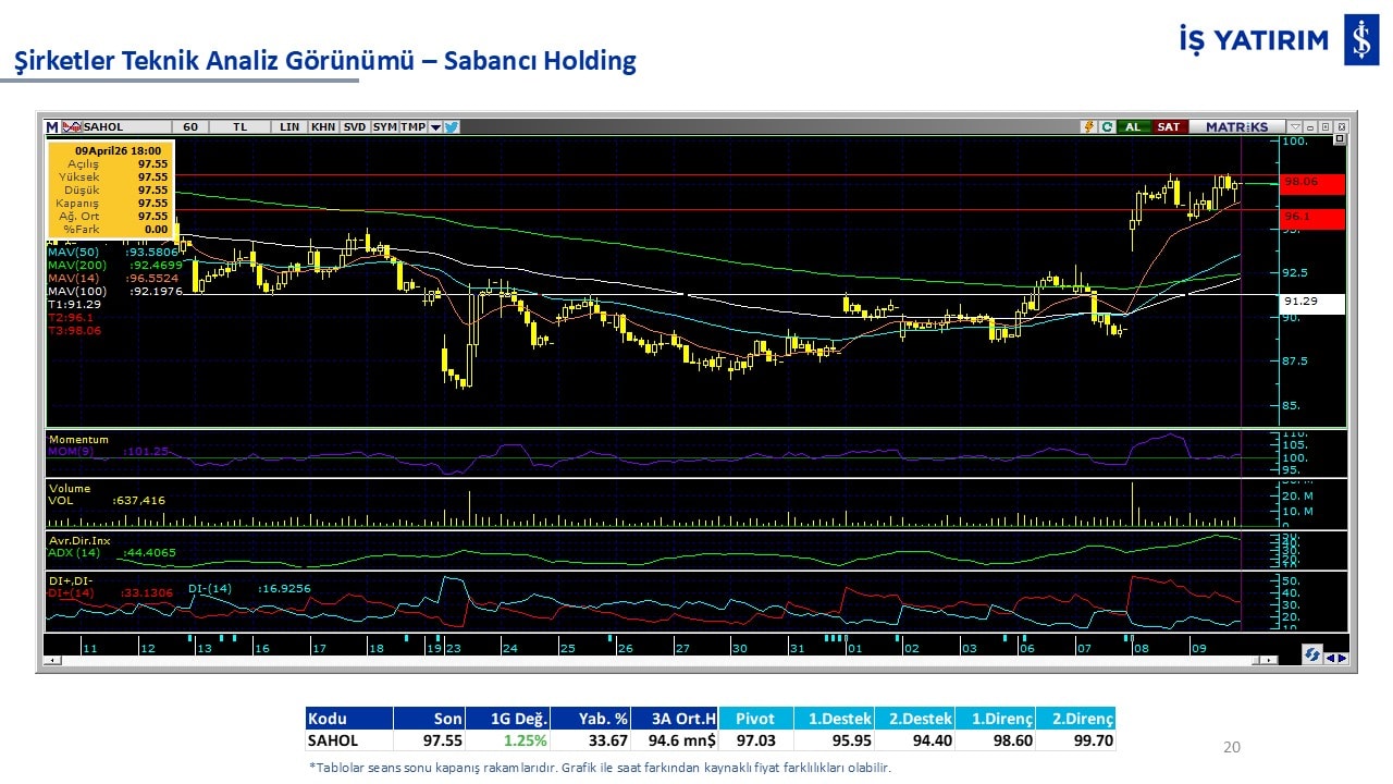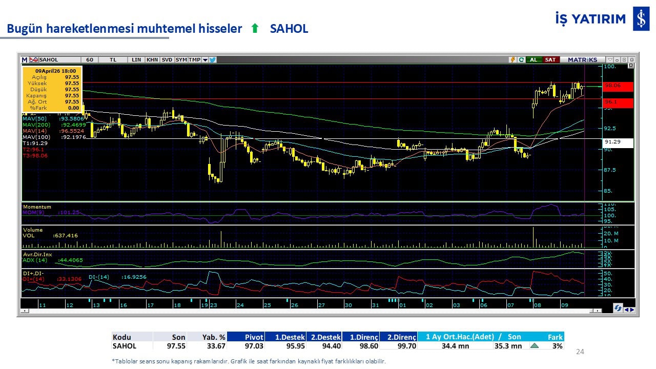 “Teknik Bülten” raporumuzun içeriğinde; Vadeli endeks, kur, BIST100 endeksi, temel analiz tarafında da öneri verdiğimiz 18 adet hissenin teknik destek/direnç seviyeleri ve buna baz teşkil eden teknik grafikleri, bugün piyasadan pozitif ayrışma ihtimali olan hisseler ve bunların teknik destek/direnç seviyeleri, piyasa rakamları, dün çok açığa satış yapılan hisse senetleri ve kısa vadeli işlem önerilerimizden son 10 tanesi yer almaktadır.
