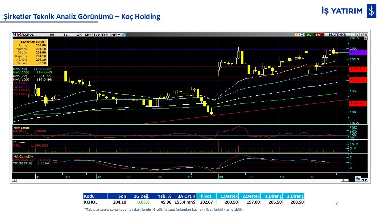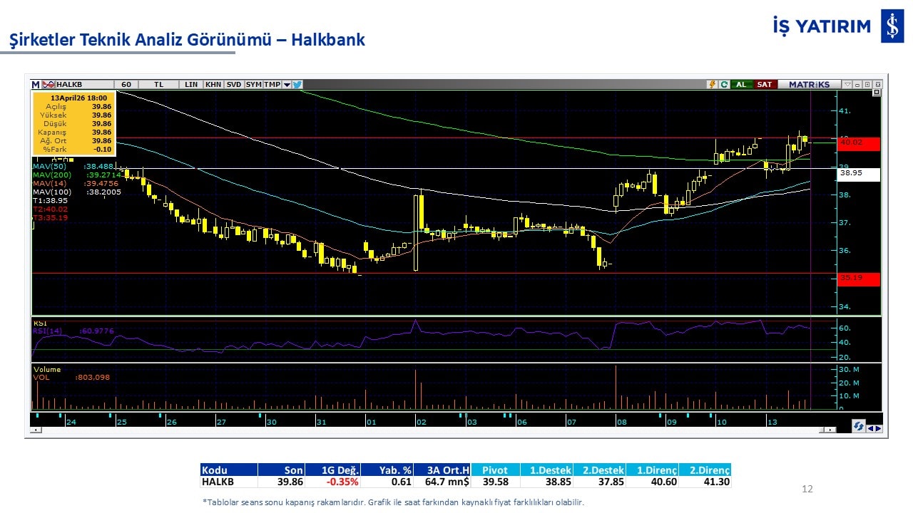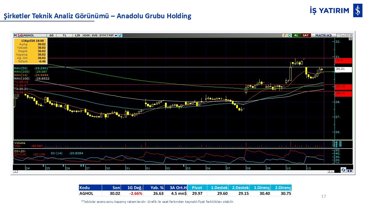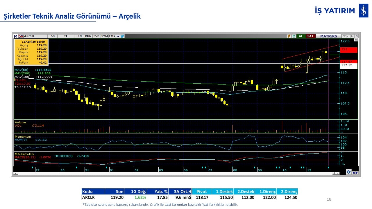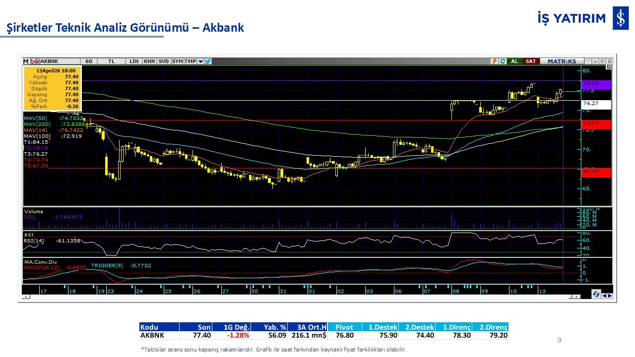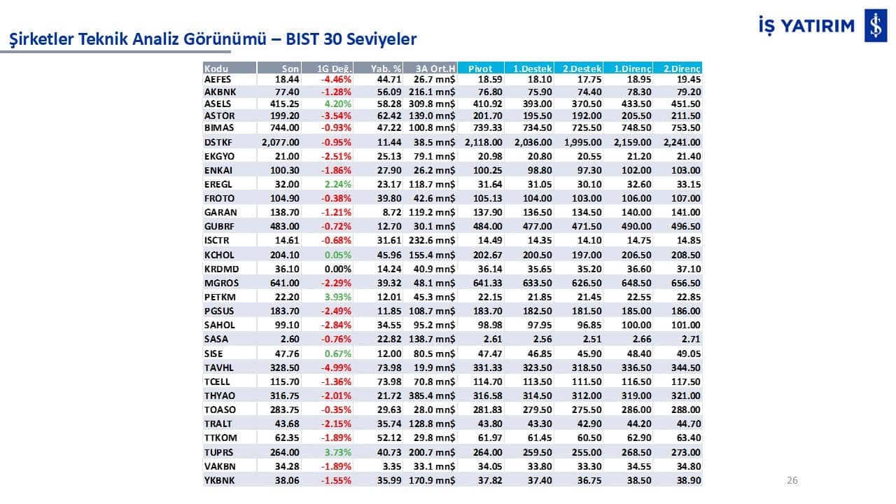 Teknik analiz görünümü olan şirketler: GARAN, THYAO, ISCTR, AKBNK, YKBNK, VAKBN, HALKB, EKGYO, TCELL, ENKAI, KCHOL, MAVI, ARCLK, ALARK, SAHOL, AGHOL, SOKM, MPARK.