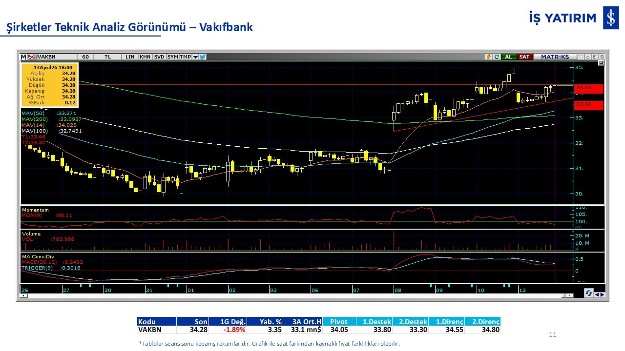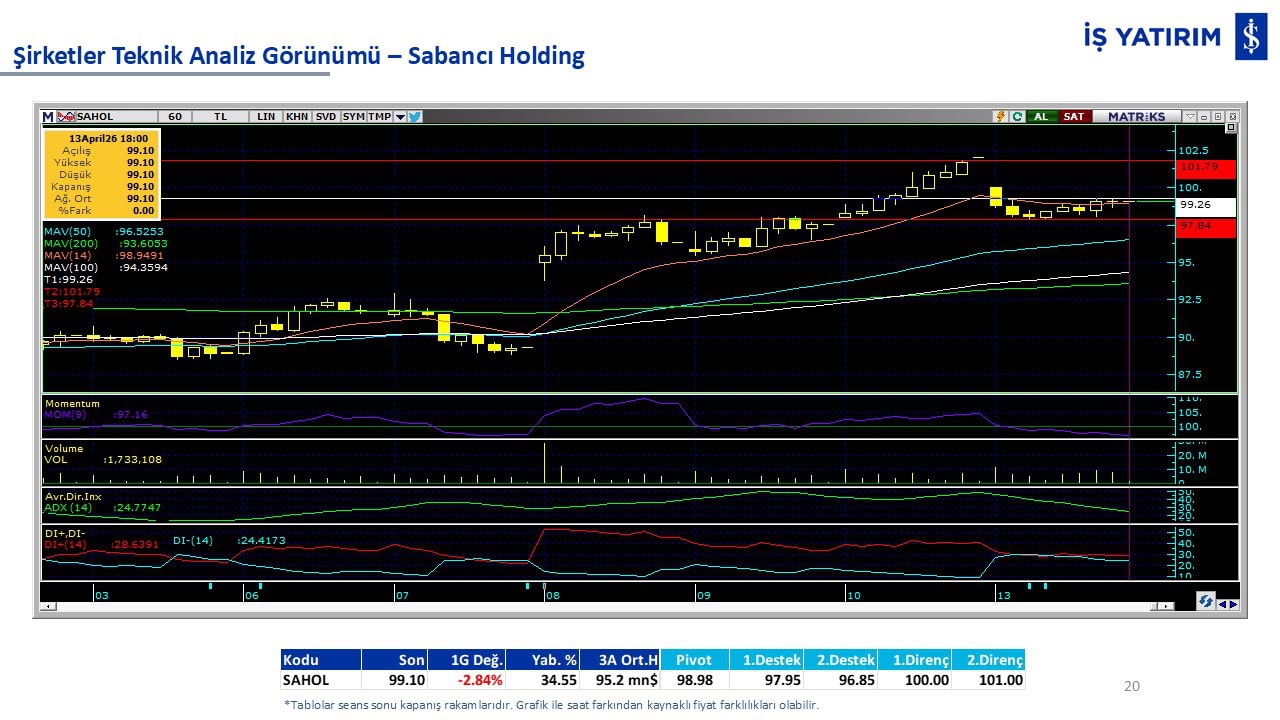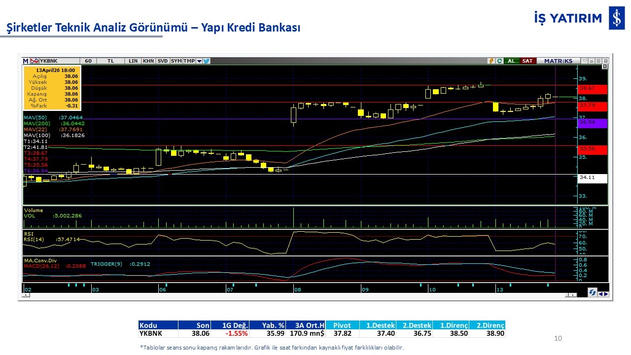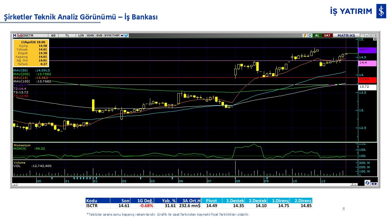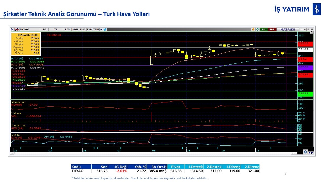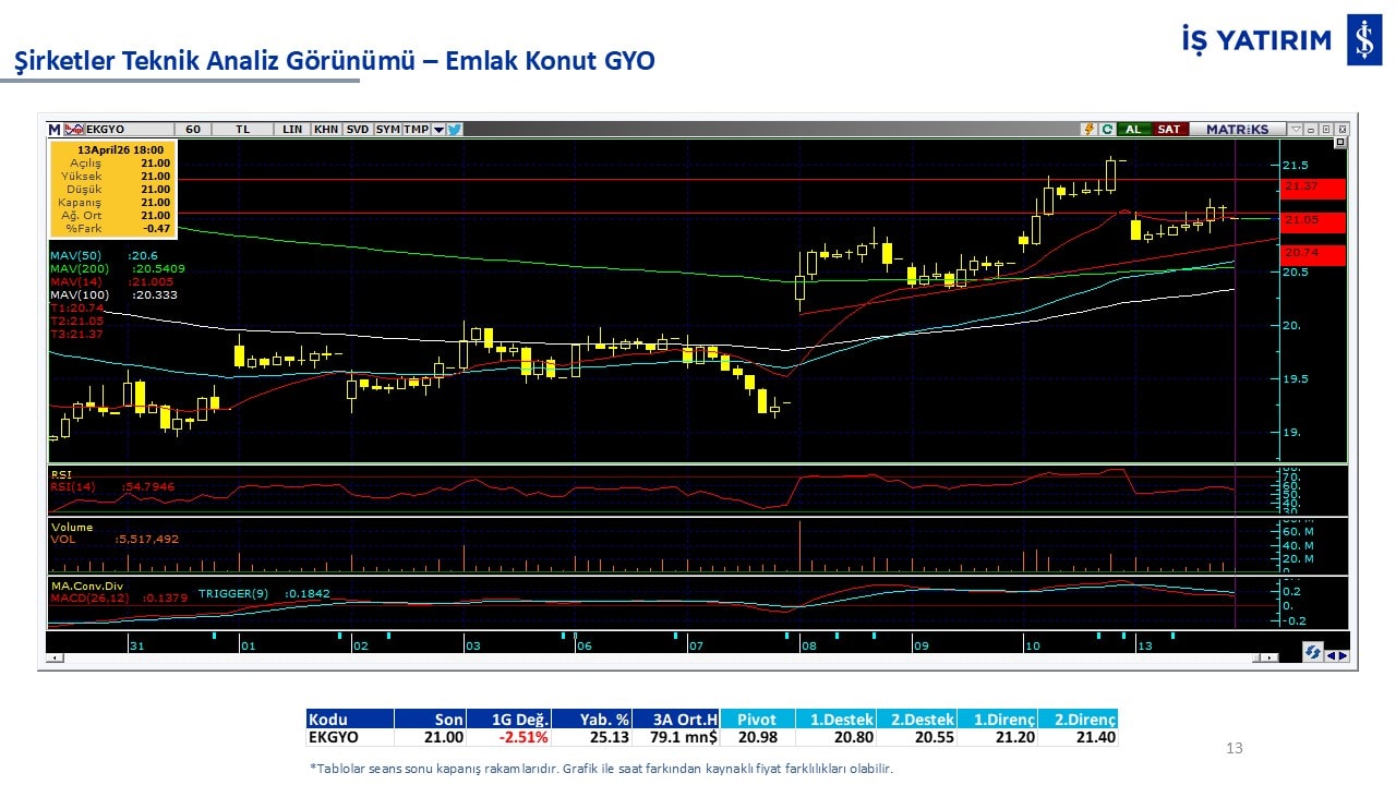 Teknik analiz görünümü olan şirketler: GARAN, THYAO, ISCTR, AKBNK, YKBNK, VAKBN, HALKB, EKGYO, TCELL, ENKAI, KCHOL, MAVI, ARCLK, ALARK, SAHOL, AGHOL, SOKM, MPARK.