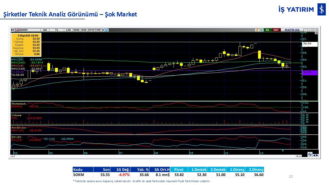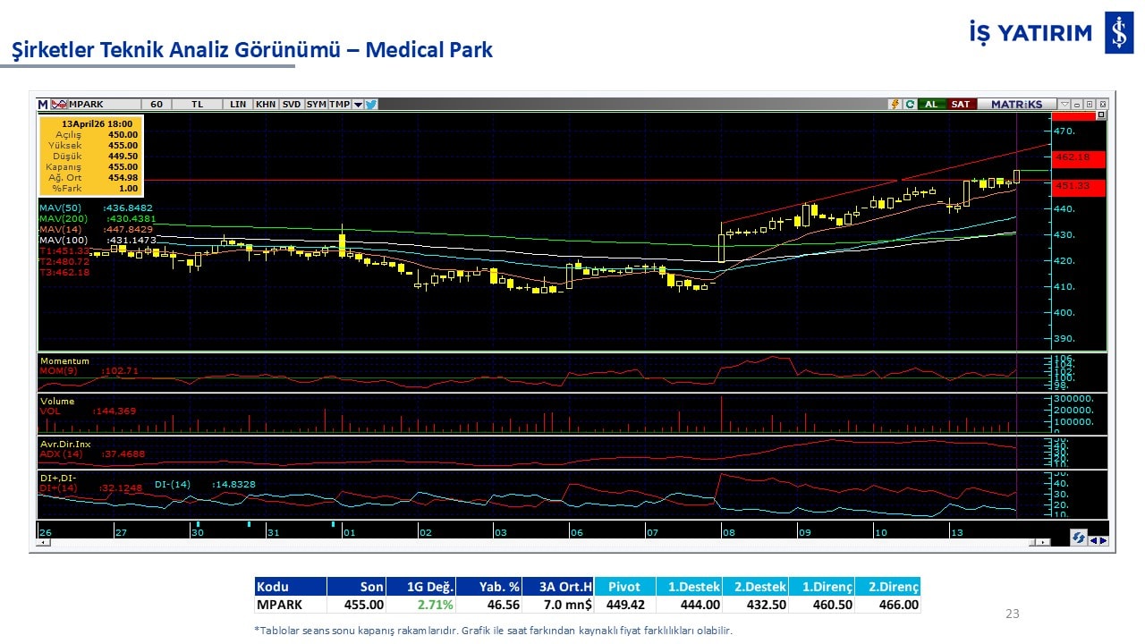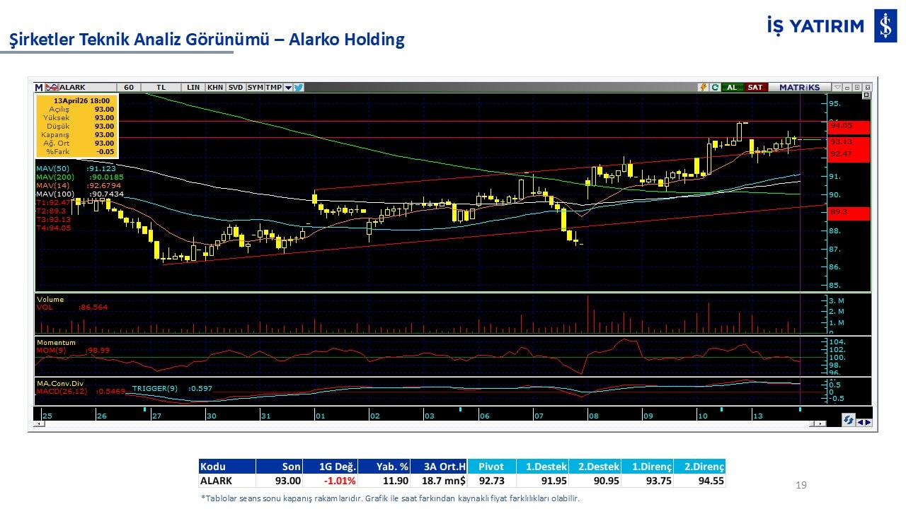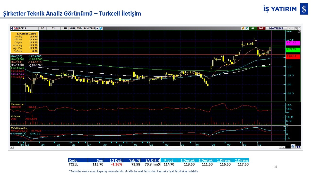 “Teknik Bülten” raporumuzun içeriğinde; Vadeli endeks, kur, BIST100 endeksi, temel analiz tarafında da öneri verdiğimiz 18 adet hissenin teknik destek/direnç seviyeleri ve buna baz teşkil eden teknik grafikleri, bugün piyasadan pozitif ayrışma ihtimali olan hisseler ve bunların teknik destek/direnç seviyeleri, piyasa rakamları, dün çok açığa satış yapılan hisse senetleri ve kısa vadeli işlem önerilerimizden son 10 tanesi yer almaktadır.